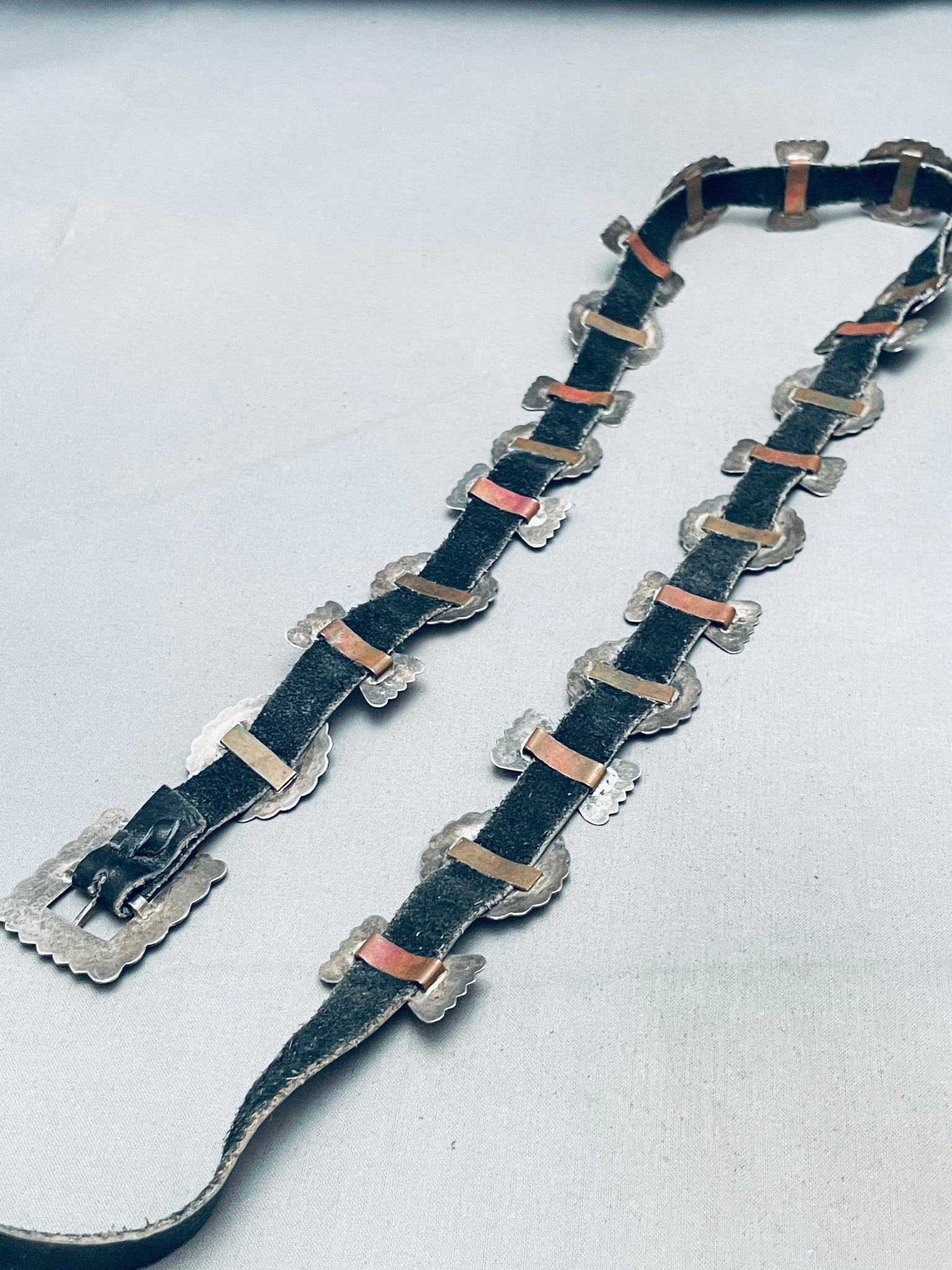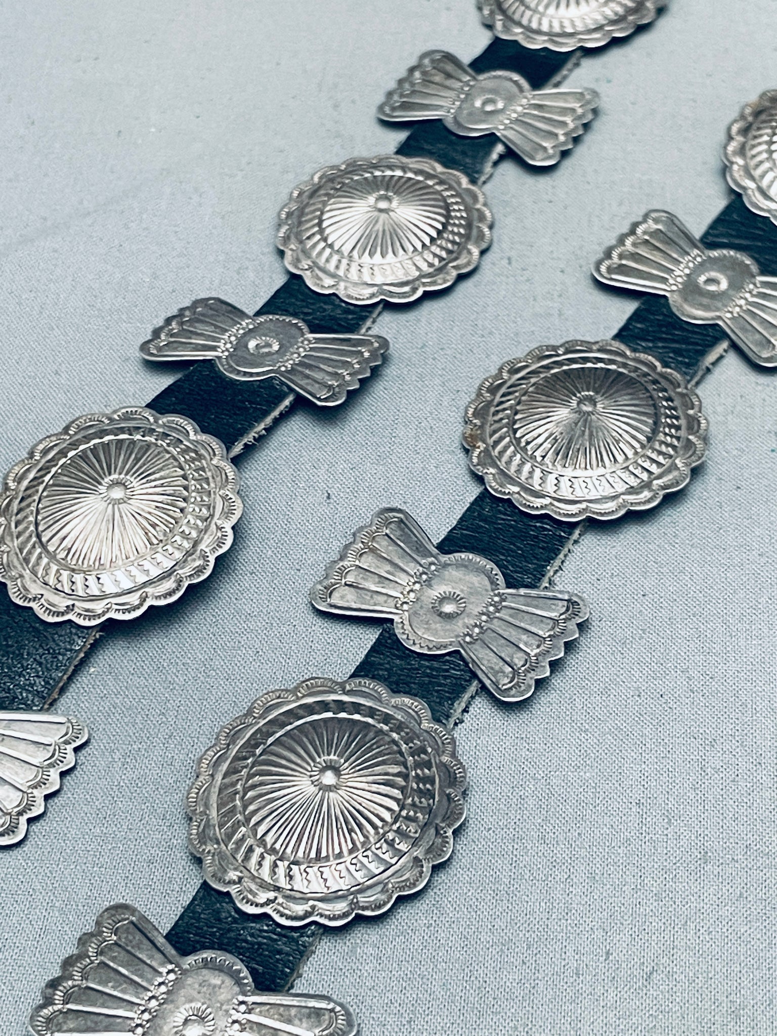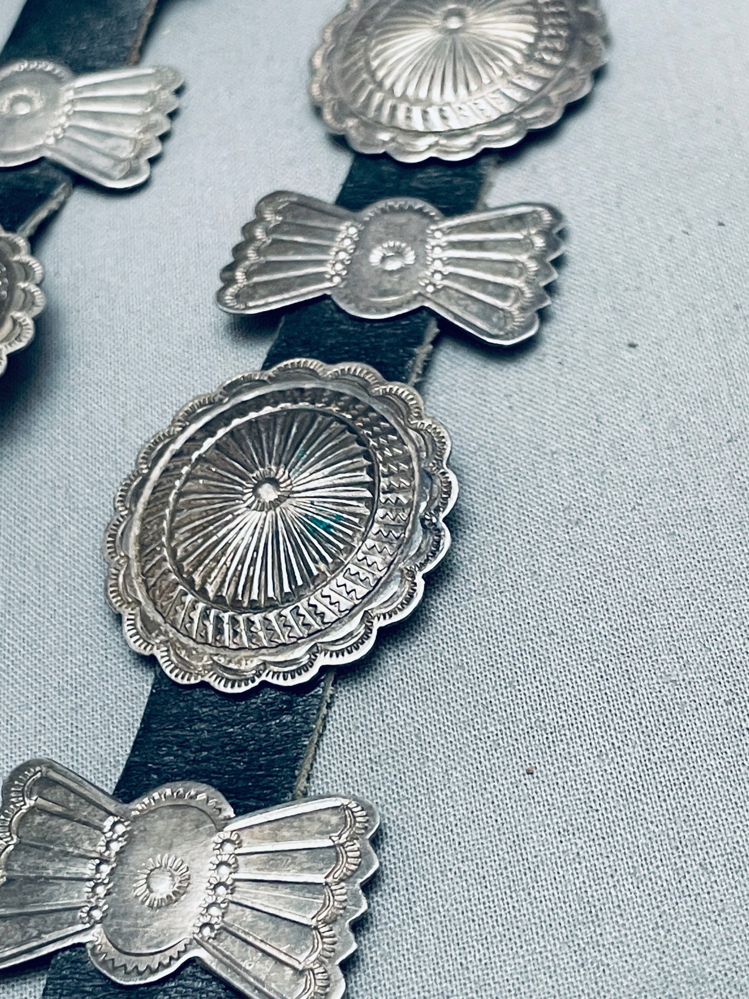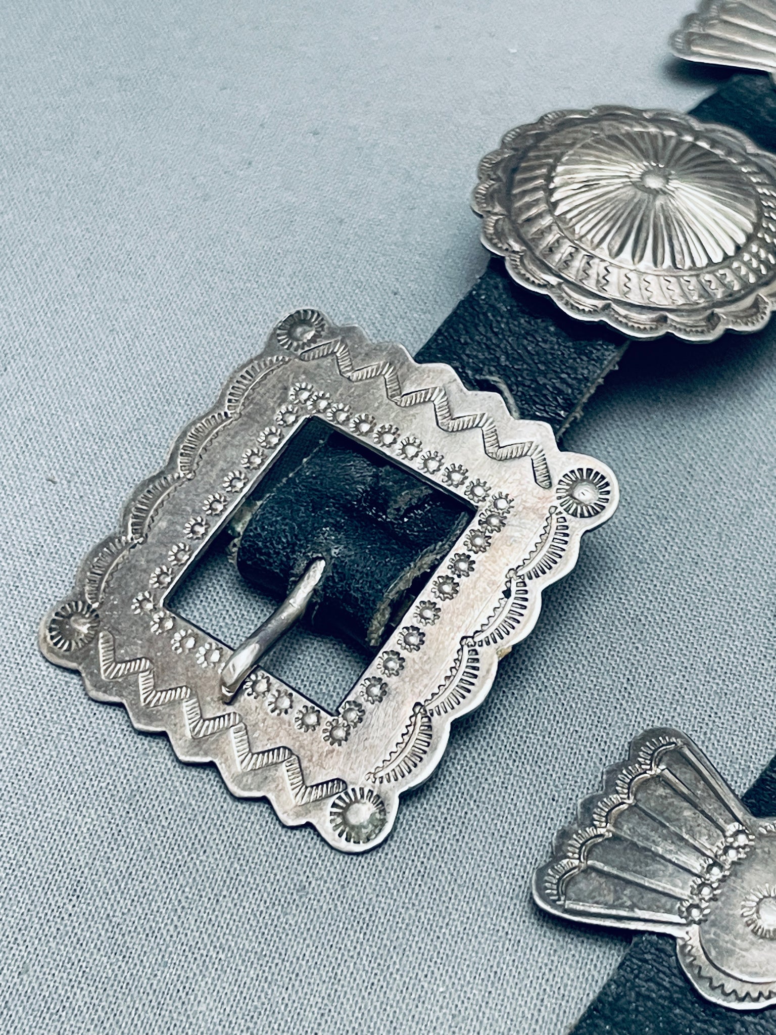 Hand Wrought Vintage Native American Navajo Sterling Silver Stamped Concho Belt
