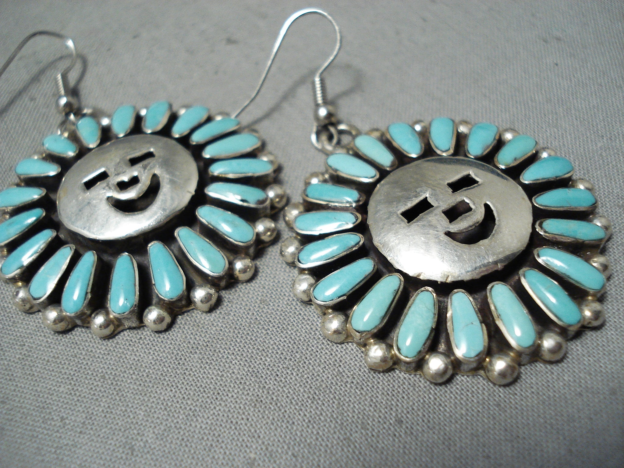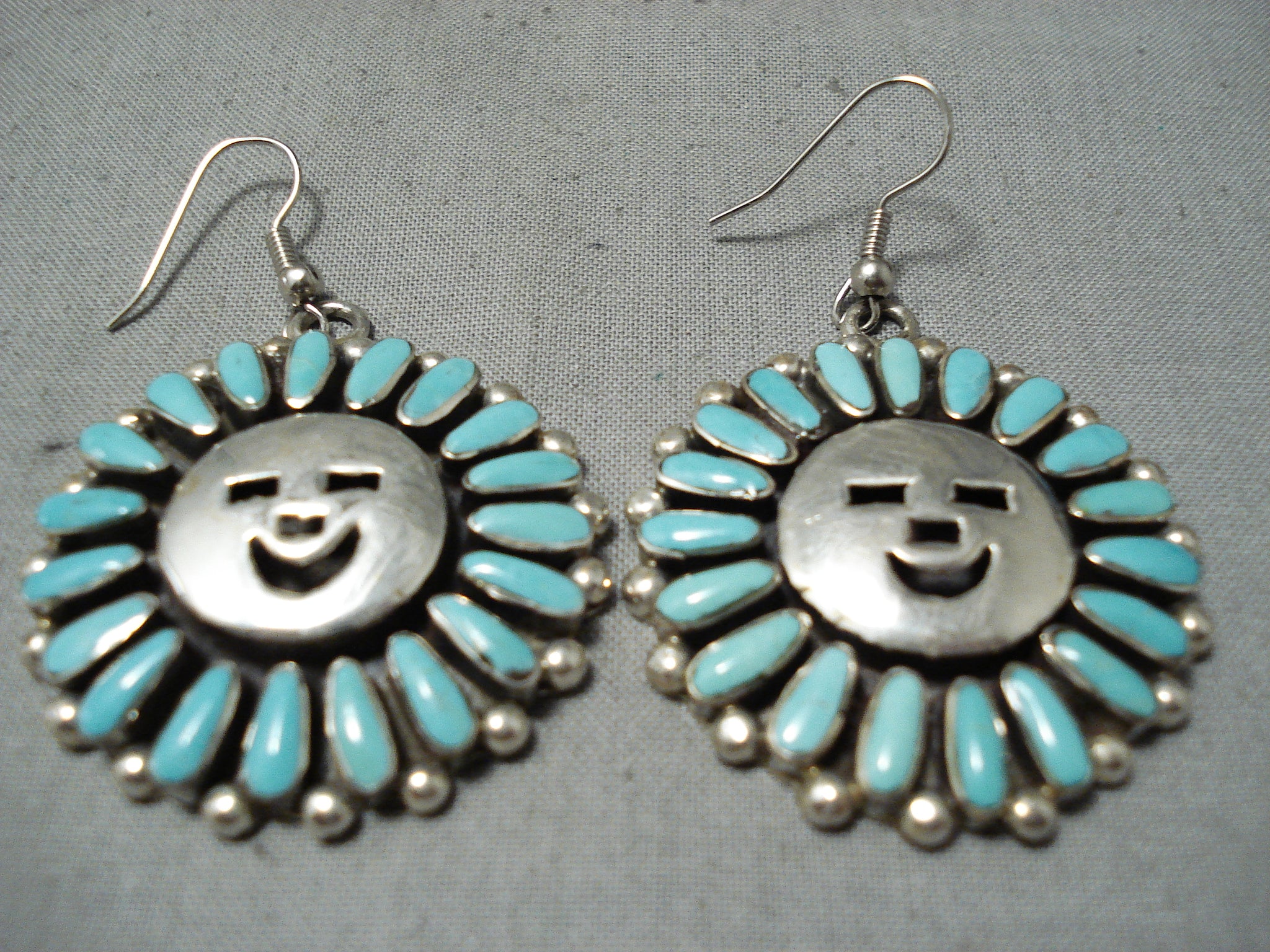Happy Face Vintage Native American Navajo Turquoise Sterling Silver Earrings