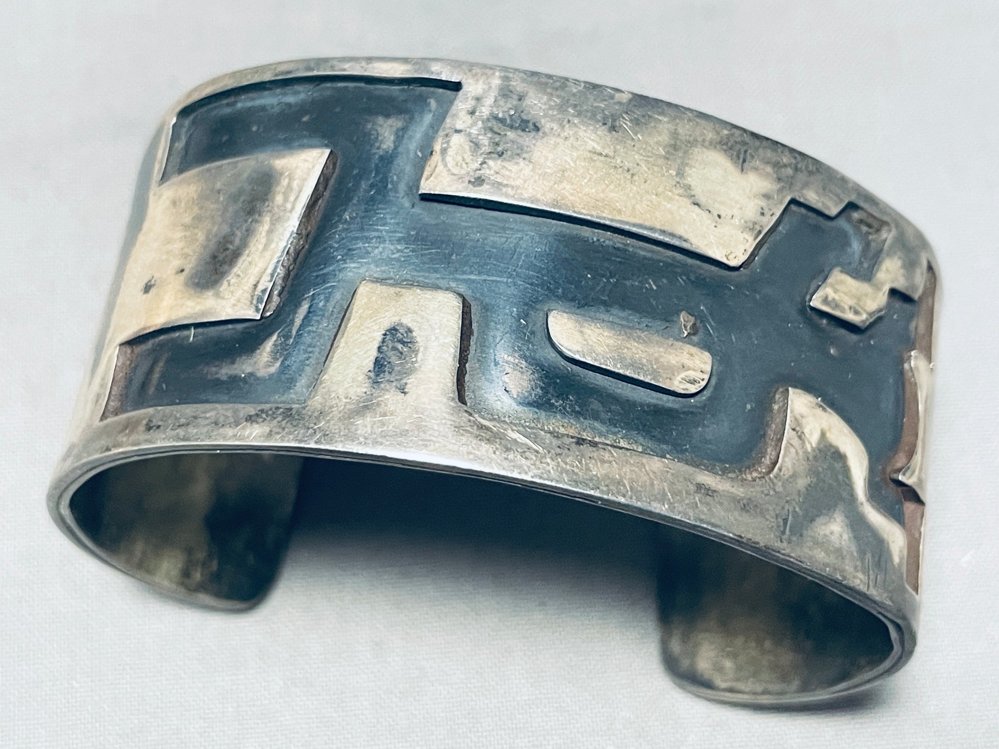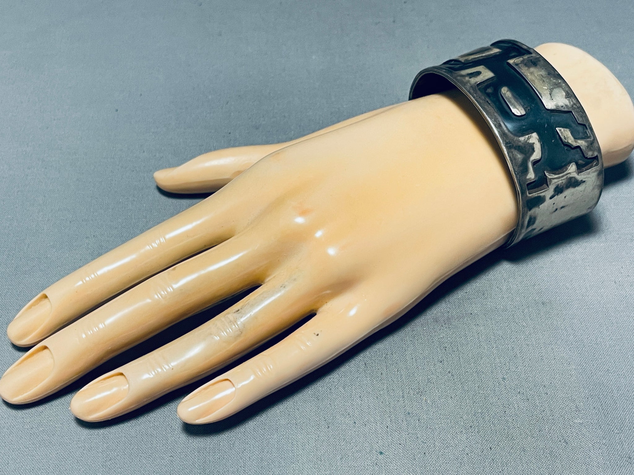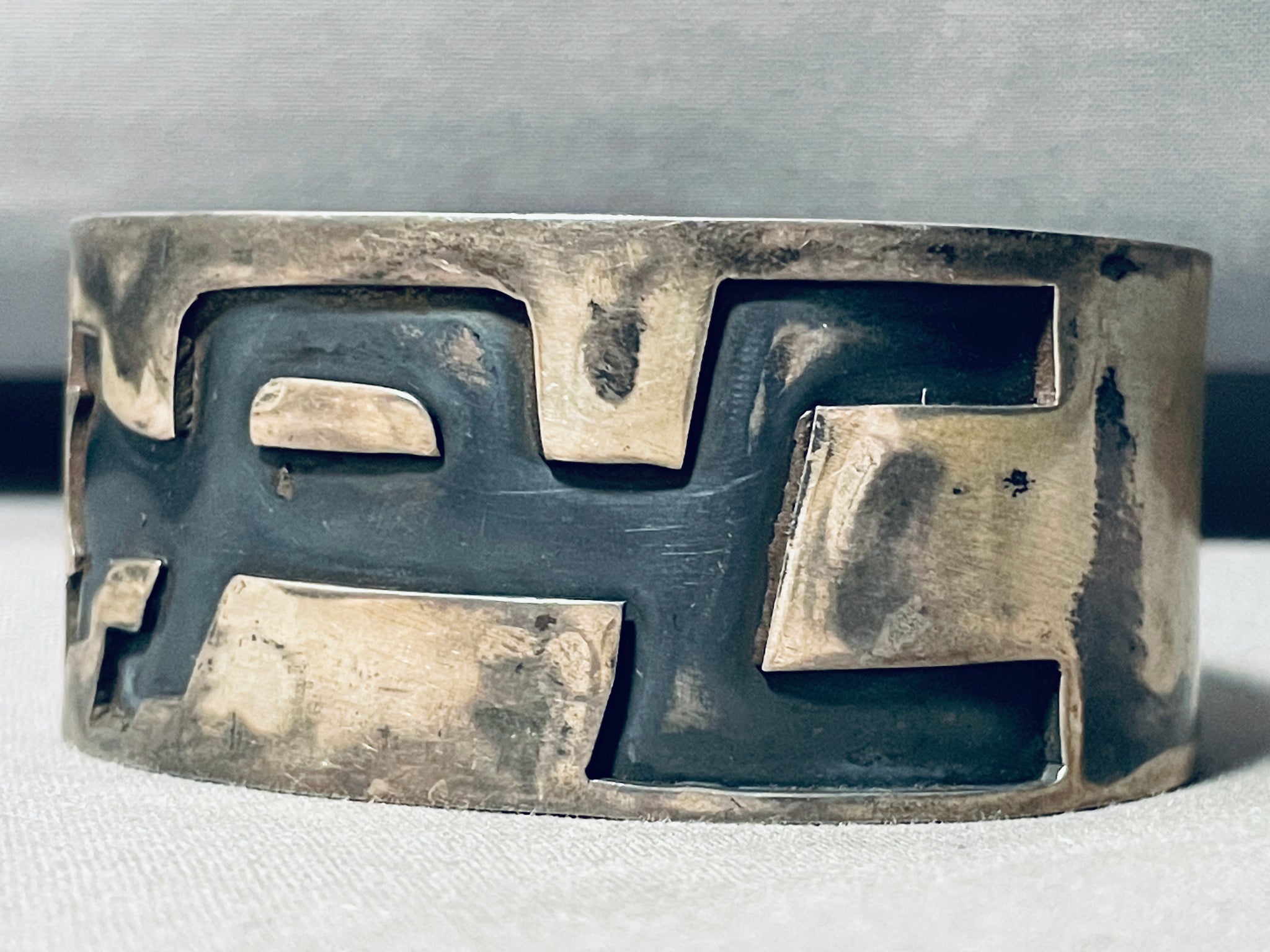 Happy Life Dance Vintage Native American Navajo Sterling Silver Bracelet Old