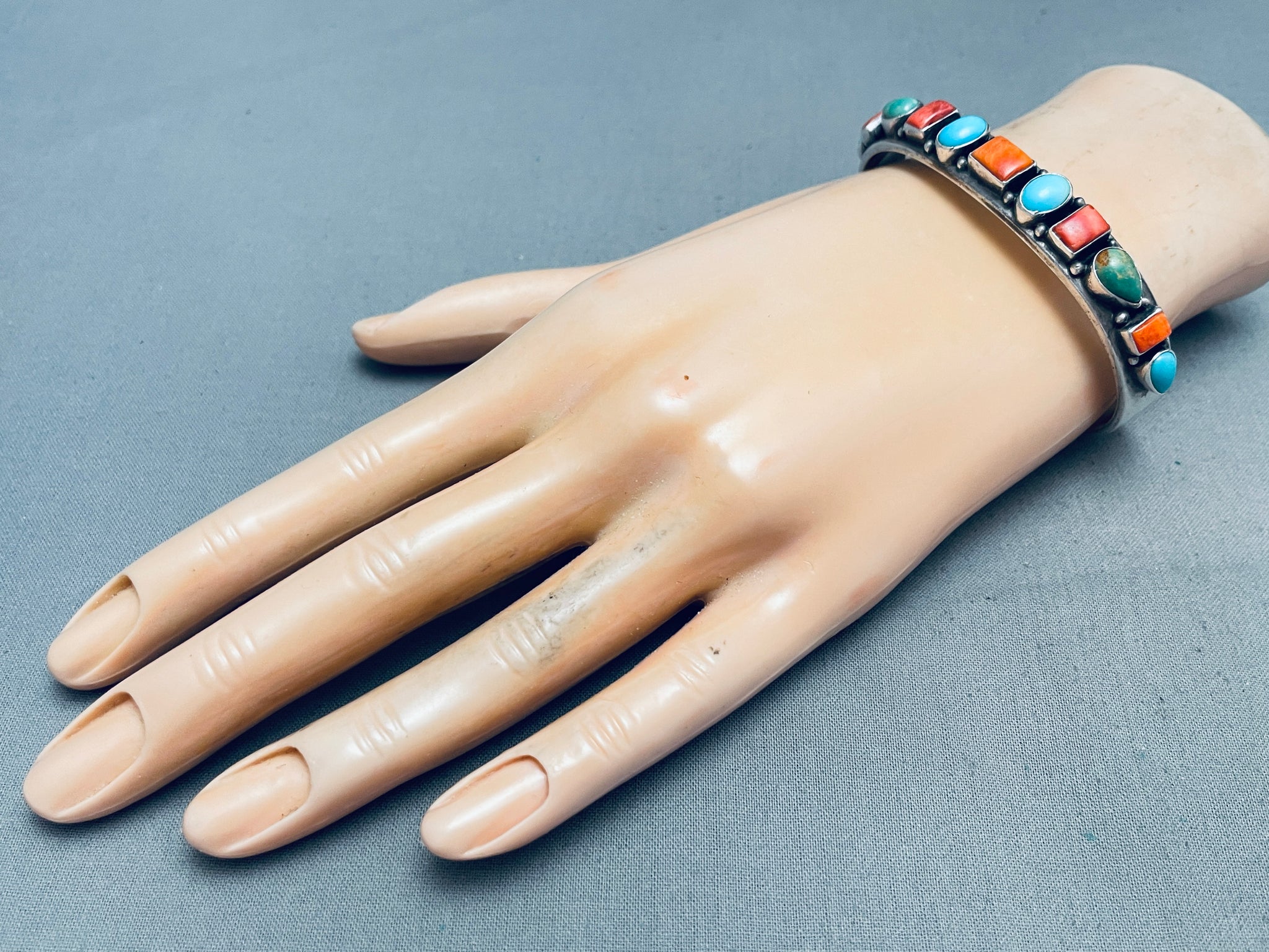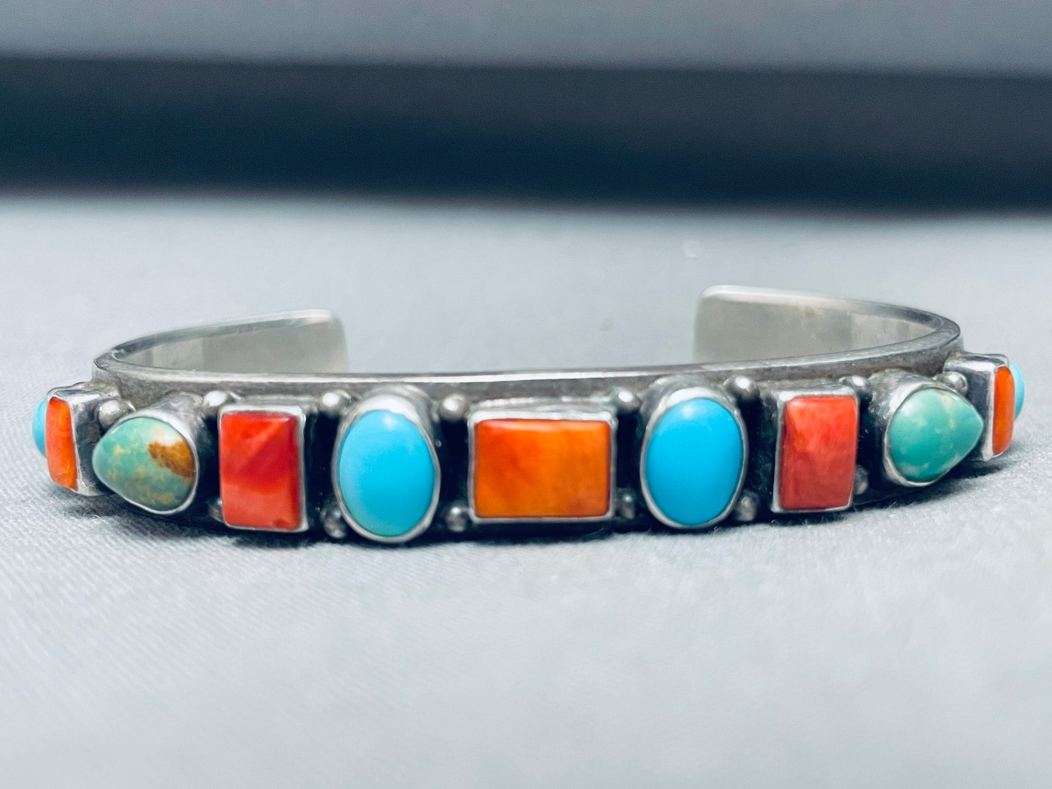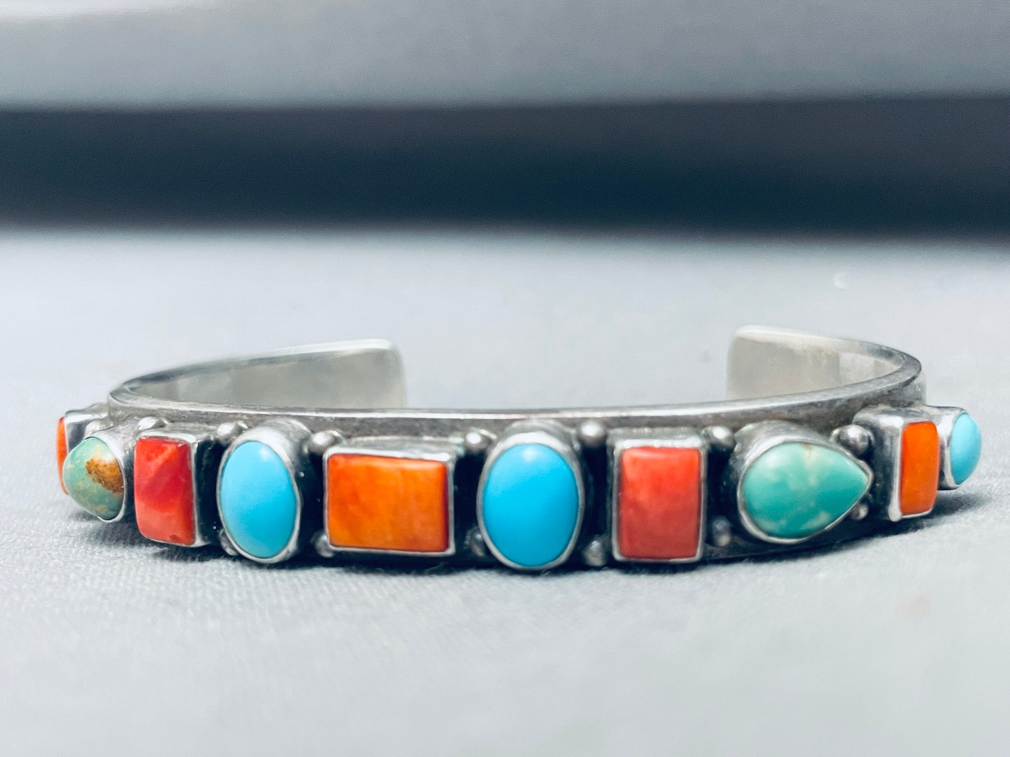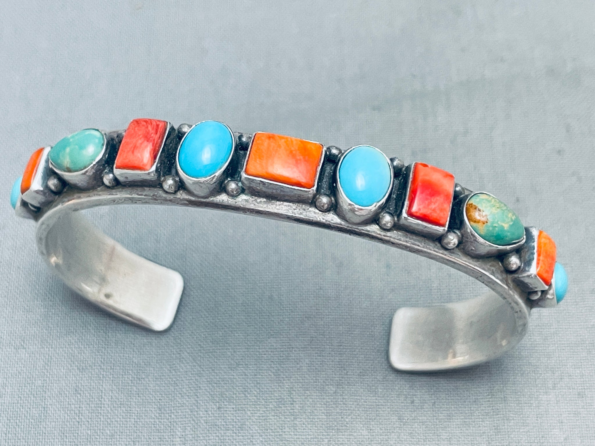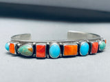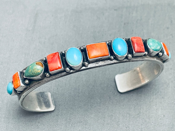 Happy Life!! Vintage Native American Navajo Turquoise Shell Sterling Silver Bracelet