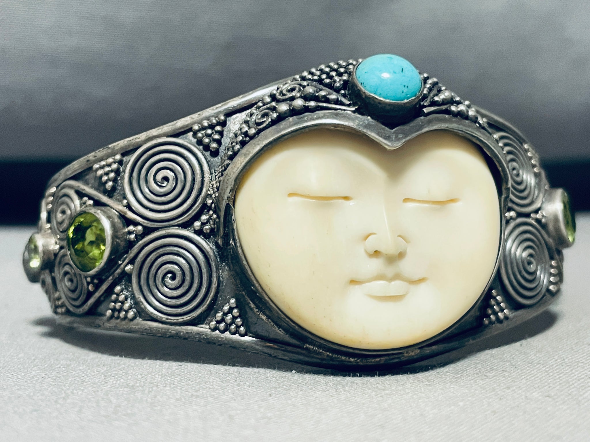 Happy Moon Face Vintage Turquoise Sterling Silver Bracelet Cuff