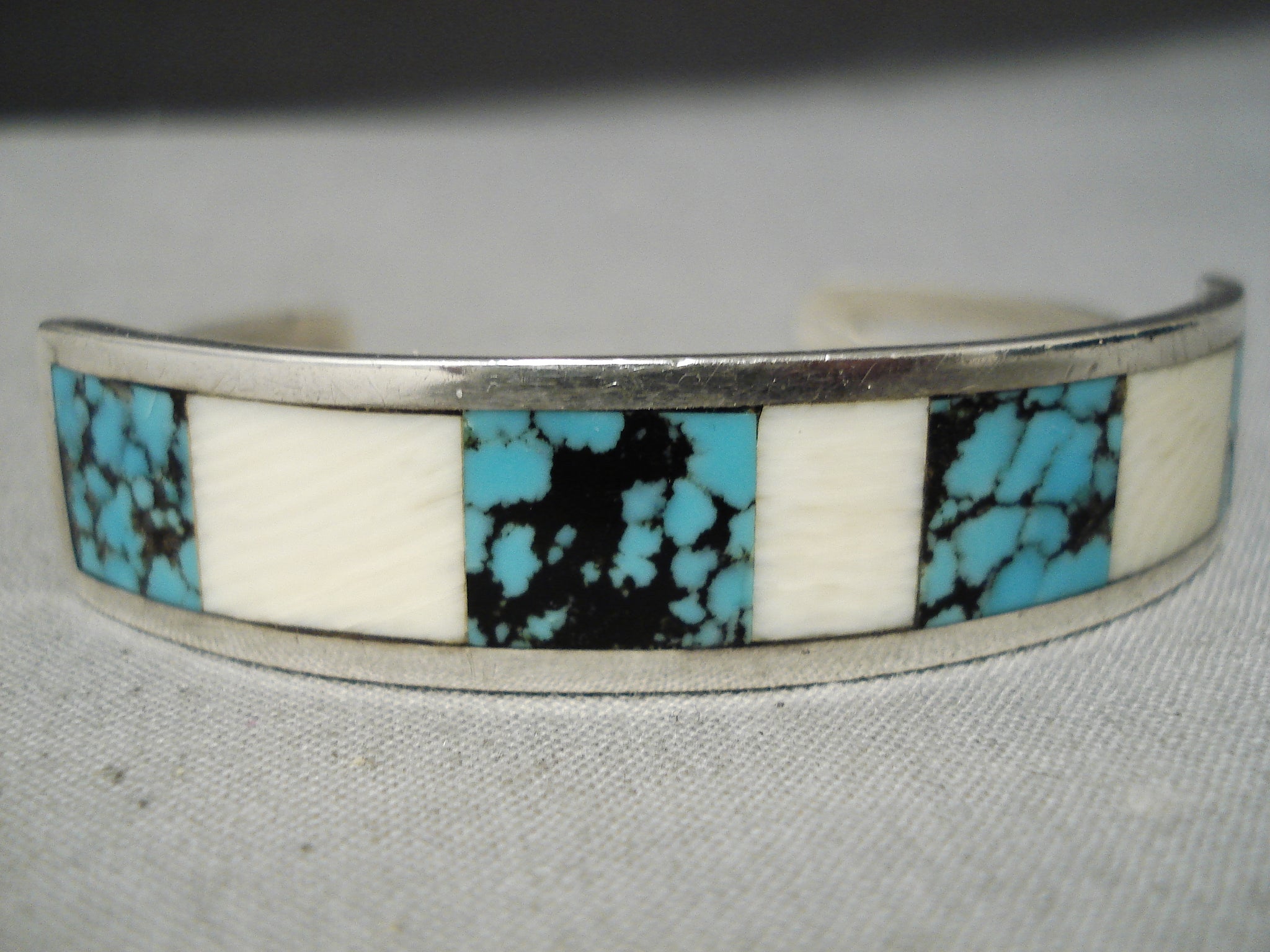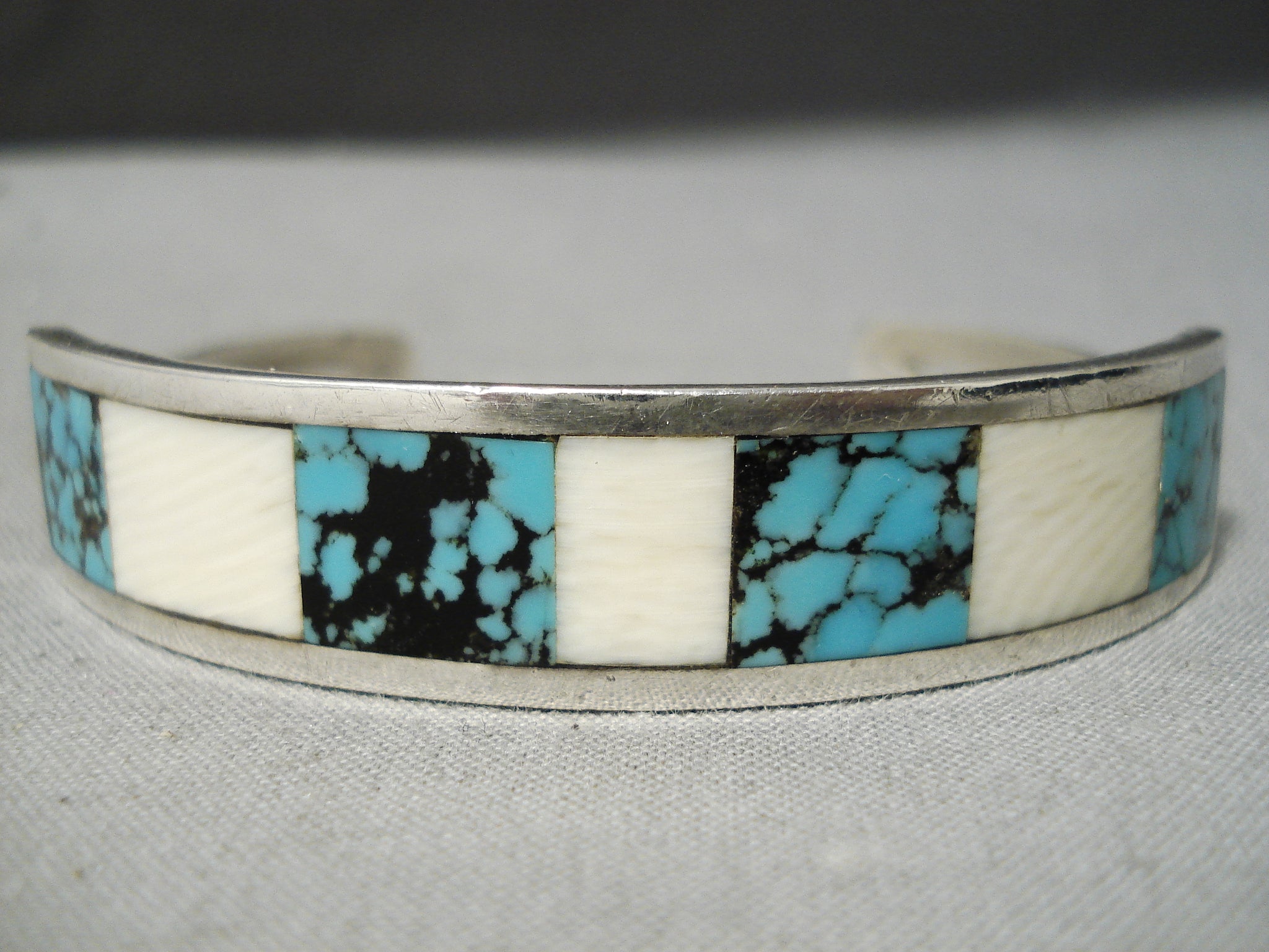 Hard To Find Vintage Native American Navajo Blue Wind Turquoise Sterling Silver Bracelet