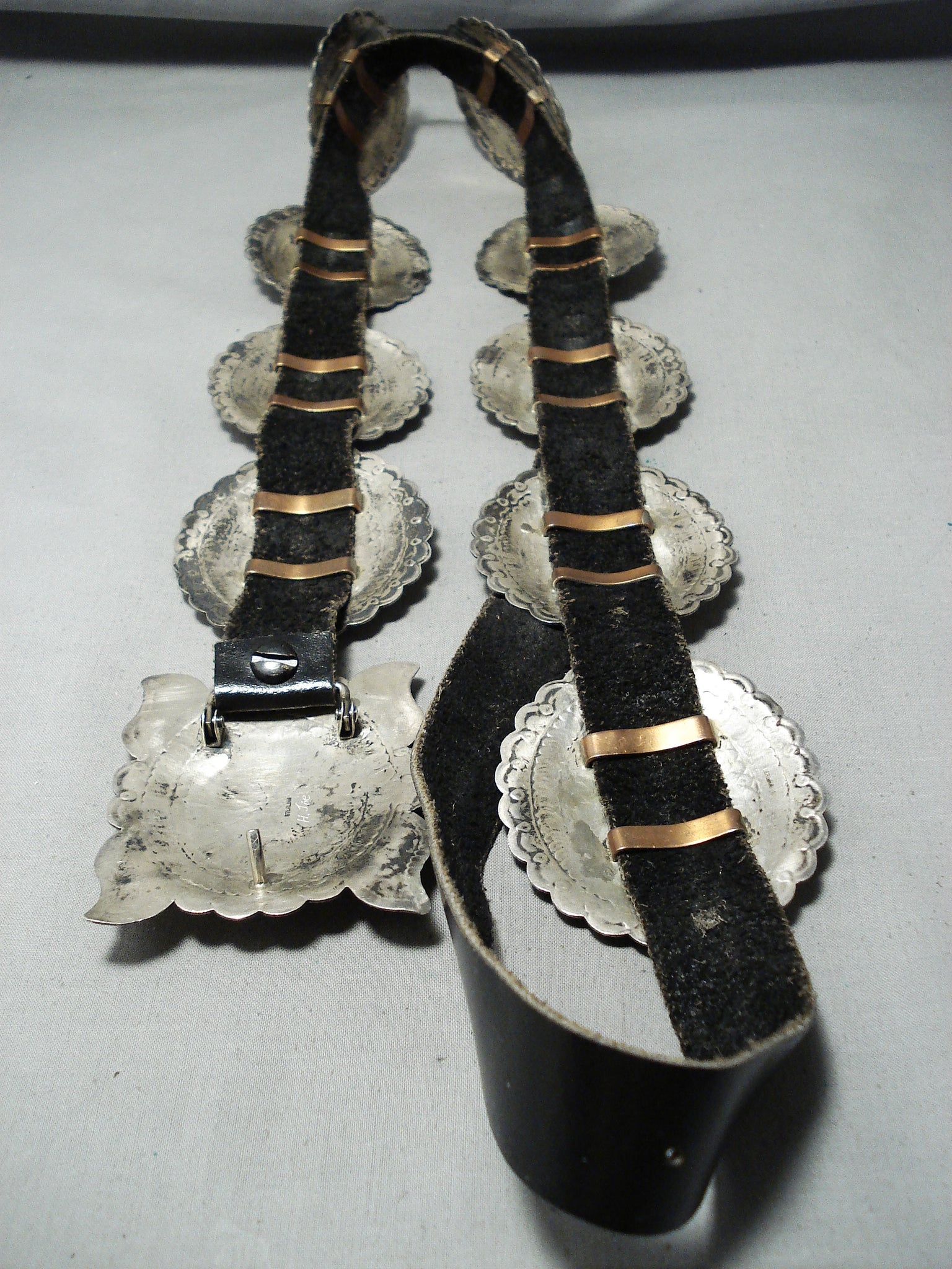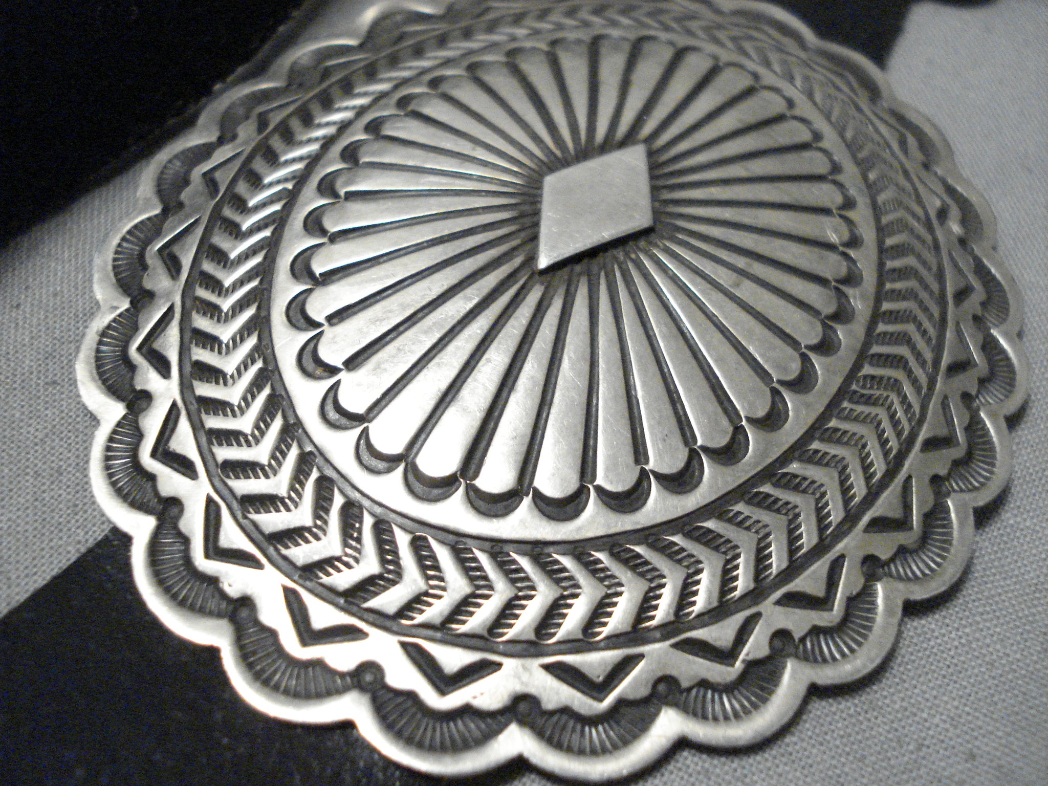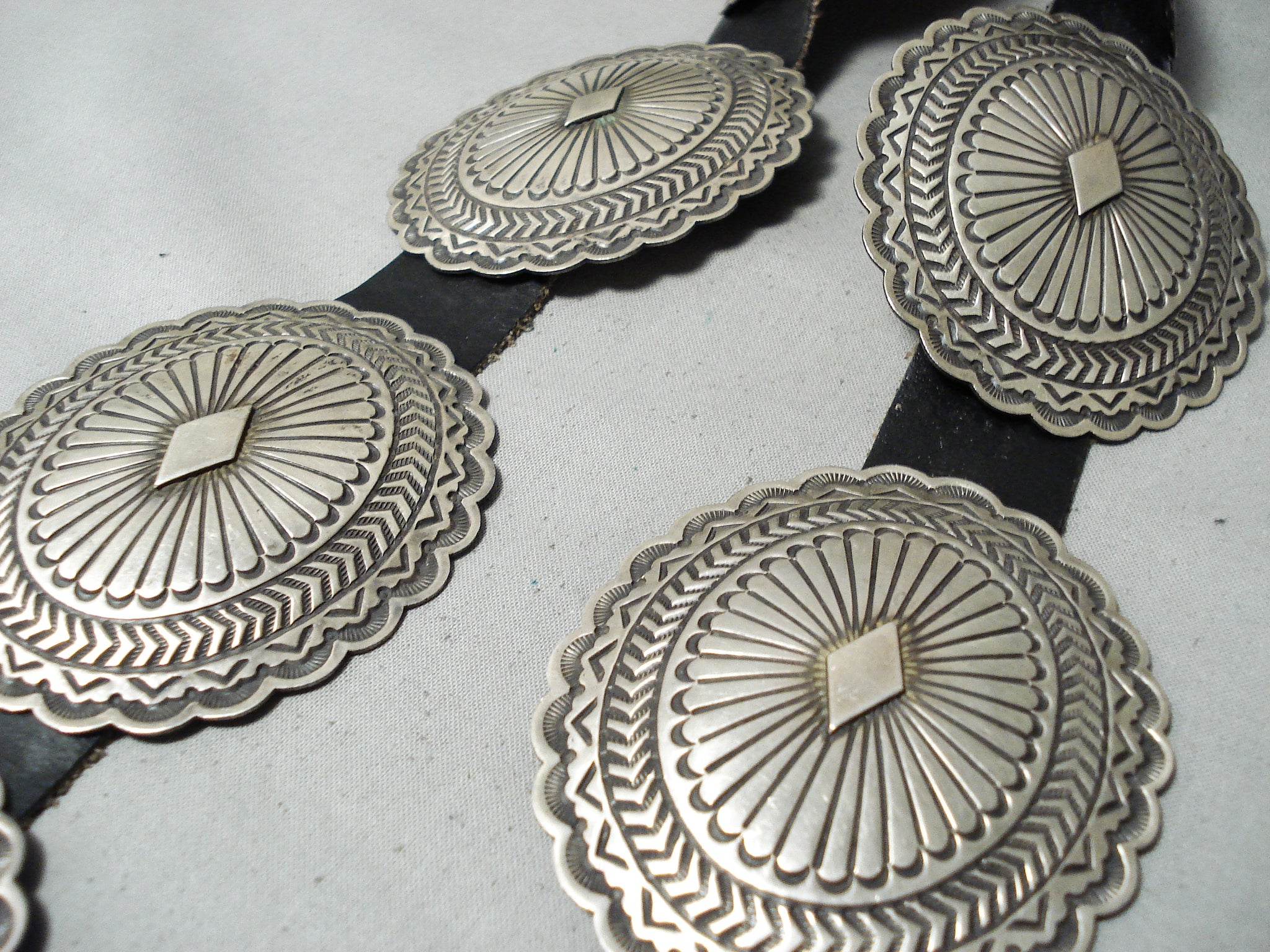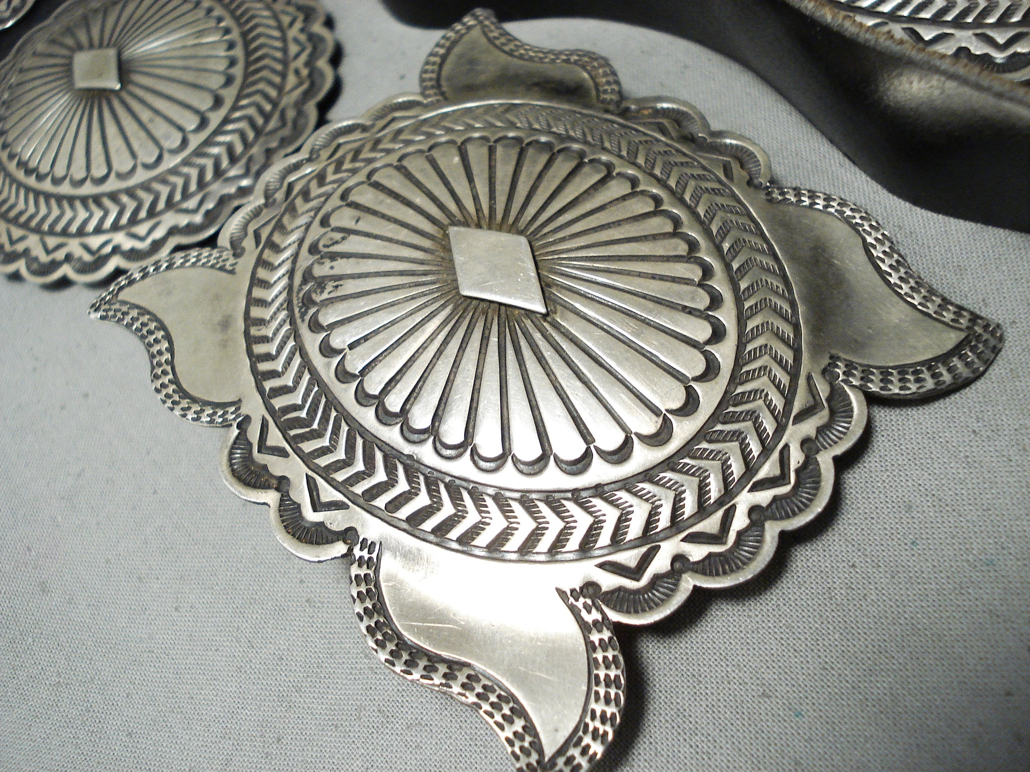 Harry Joe Hand Tooled Vintage Native American Navajo Sterling Silver Concho Belt Old