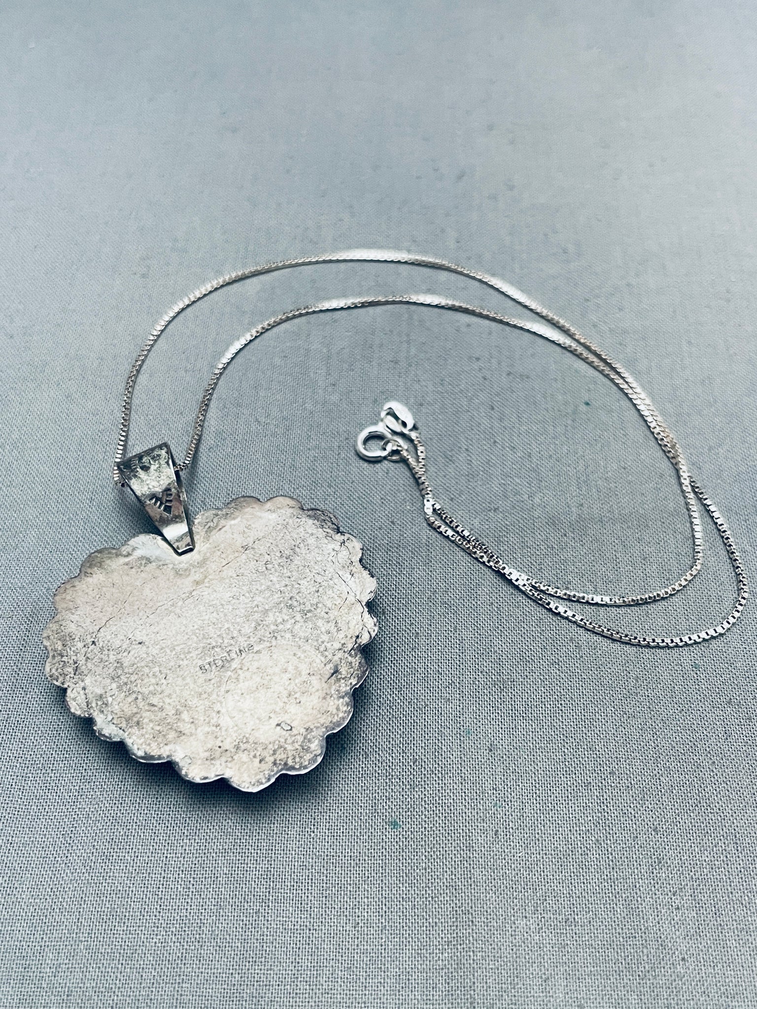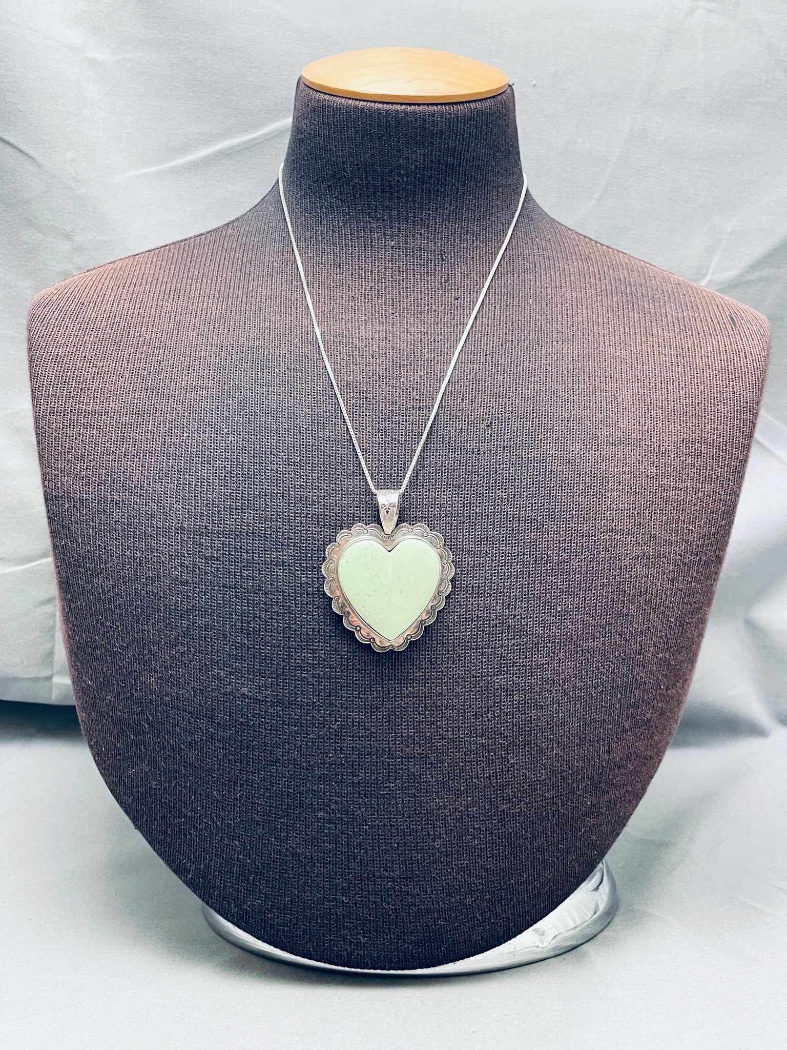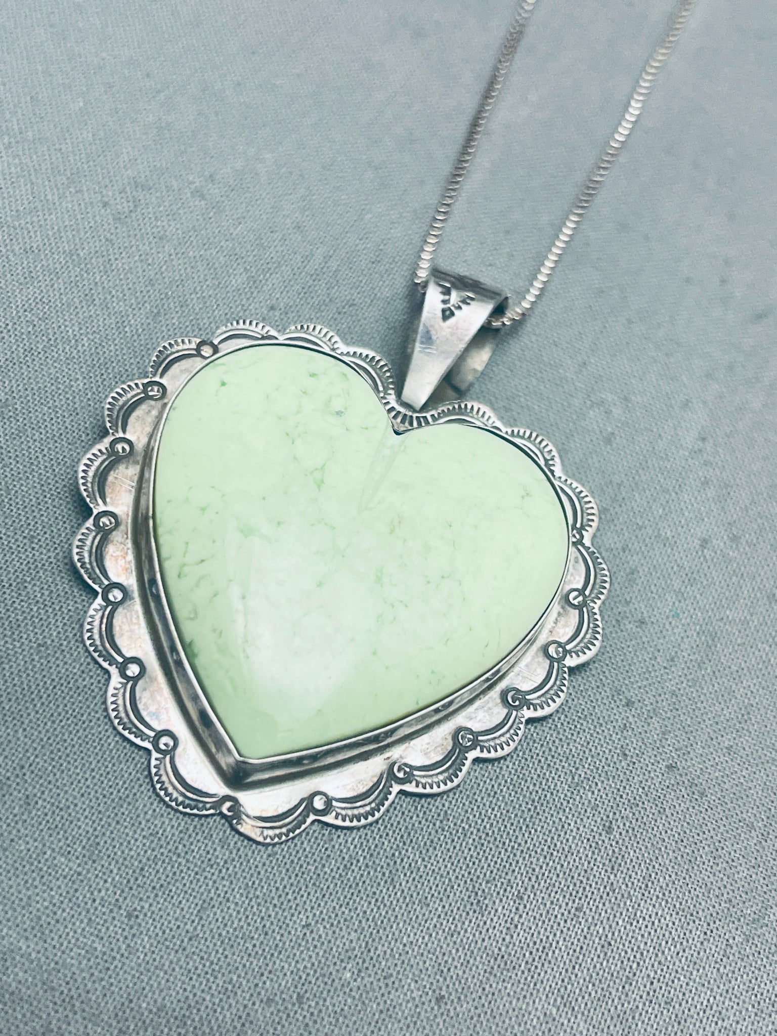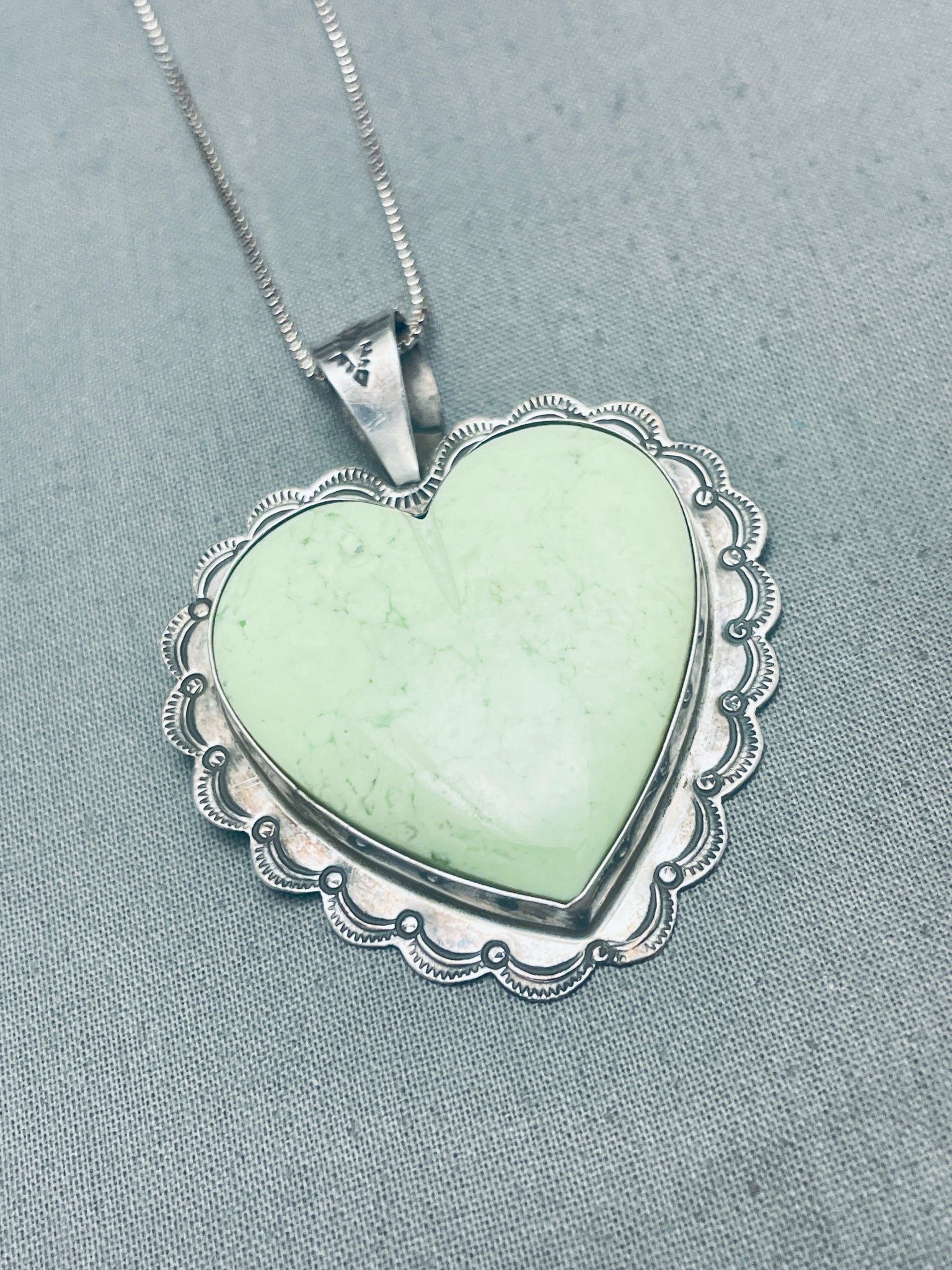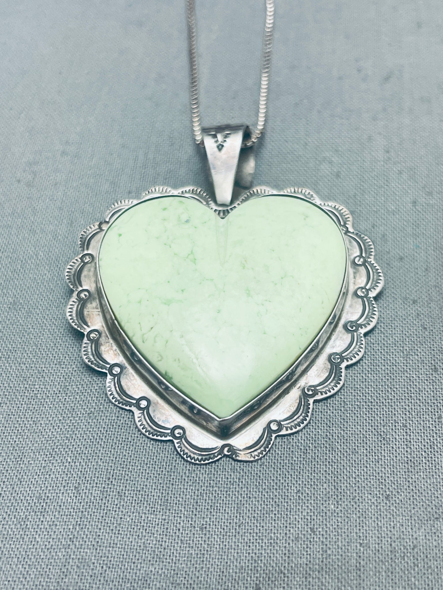 Heart Of Green Turquoise Vintage Native American Navajo Sterlign Silver Necklace
