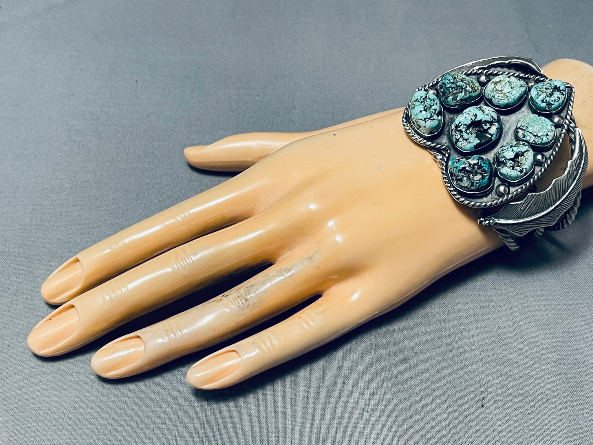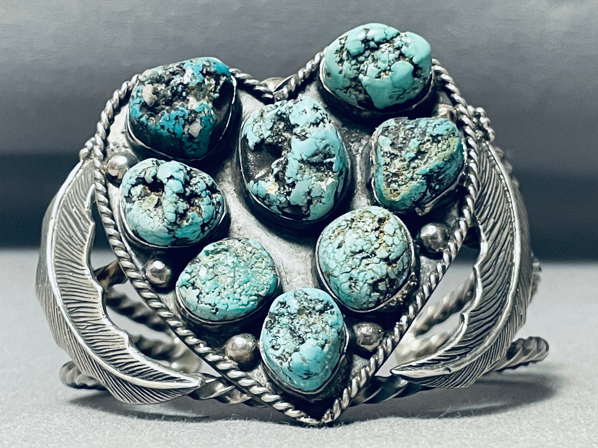 Heart Of Turquoise Vintage Native American Navajo Sterling Silver Bracelet
