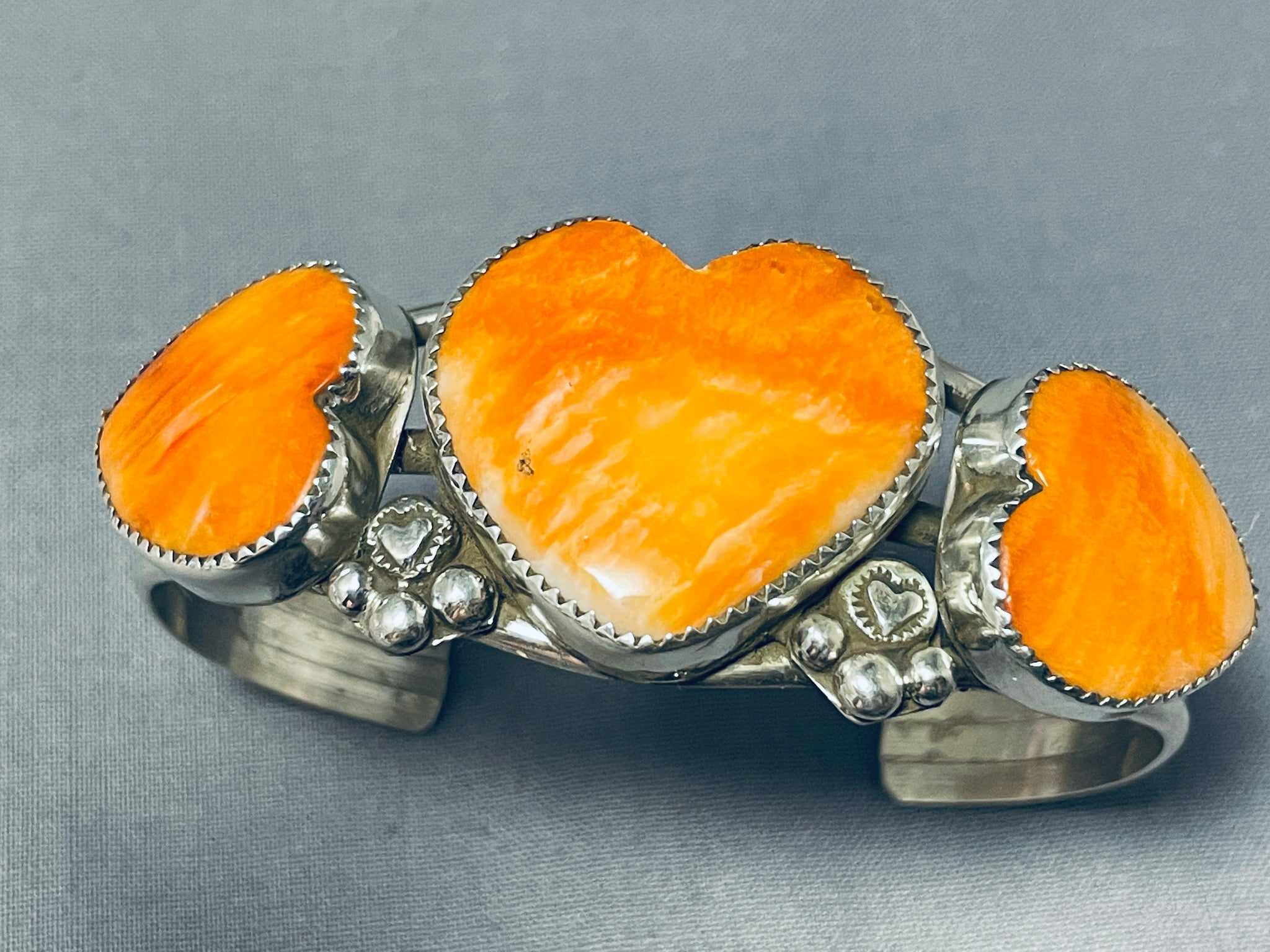 Hearts Of Shell Native American Navajo Sterling Silver Signed Bracelet