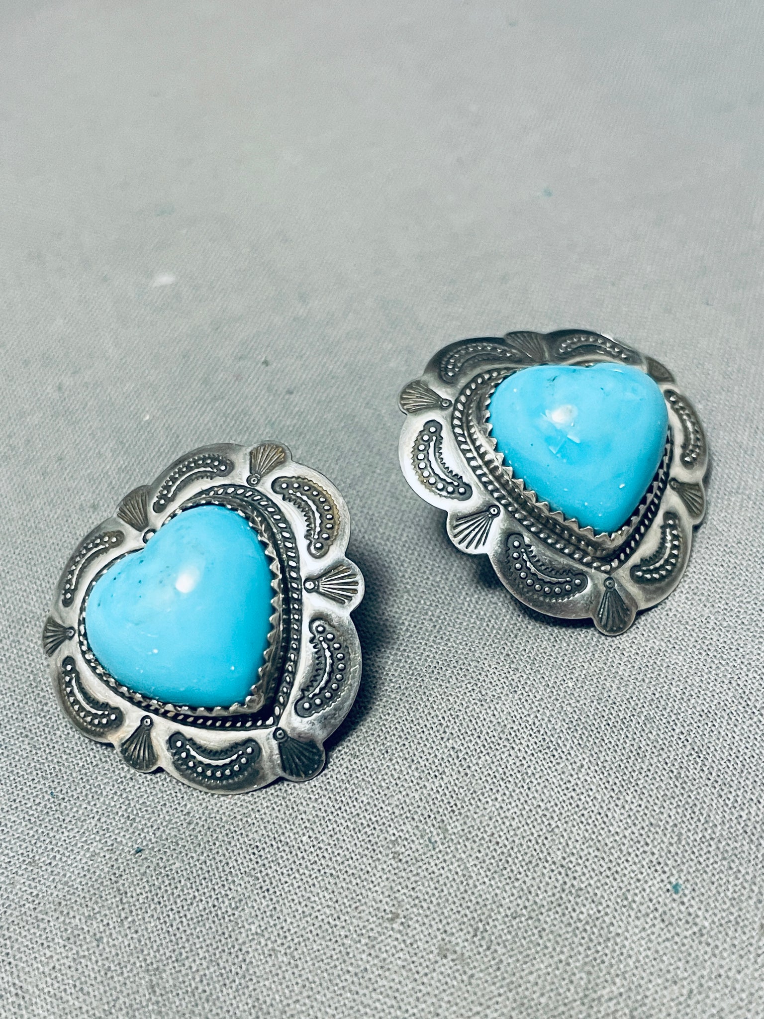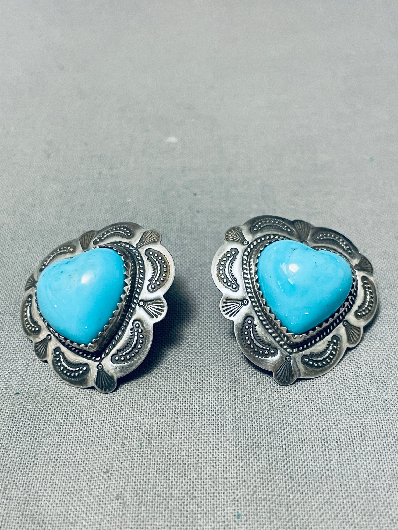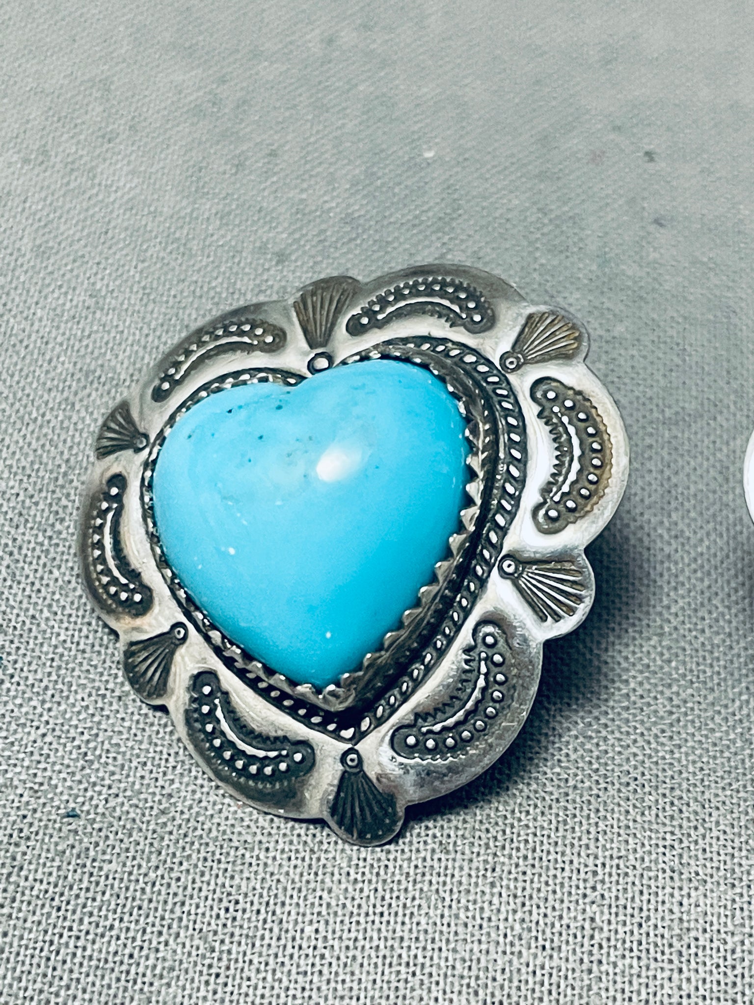 Hearts Of Turquoise Vintage Native American Navajo Sterling Silver Earrings