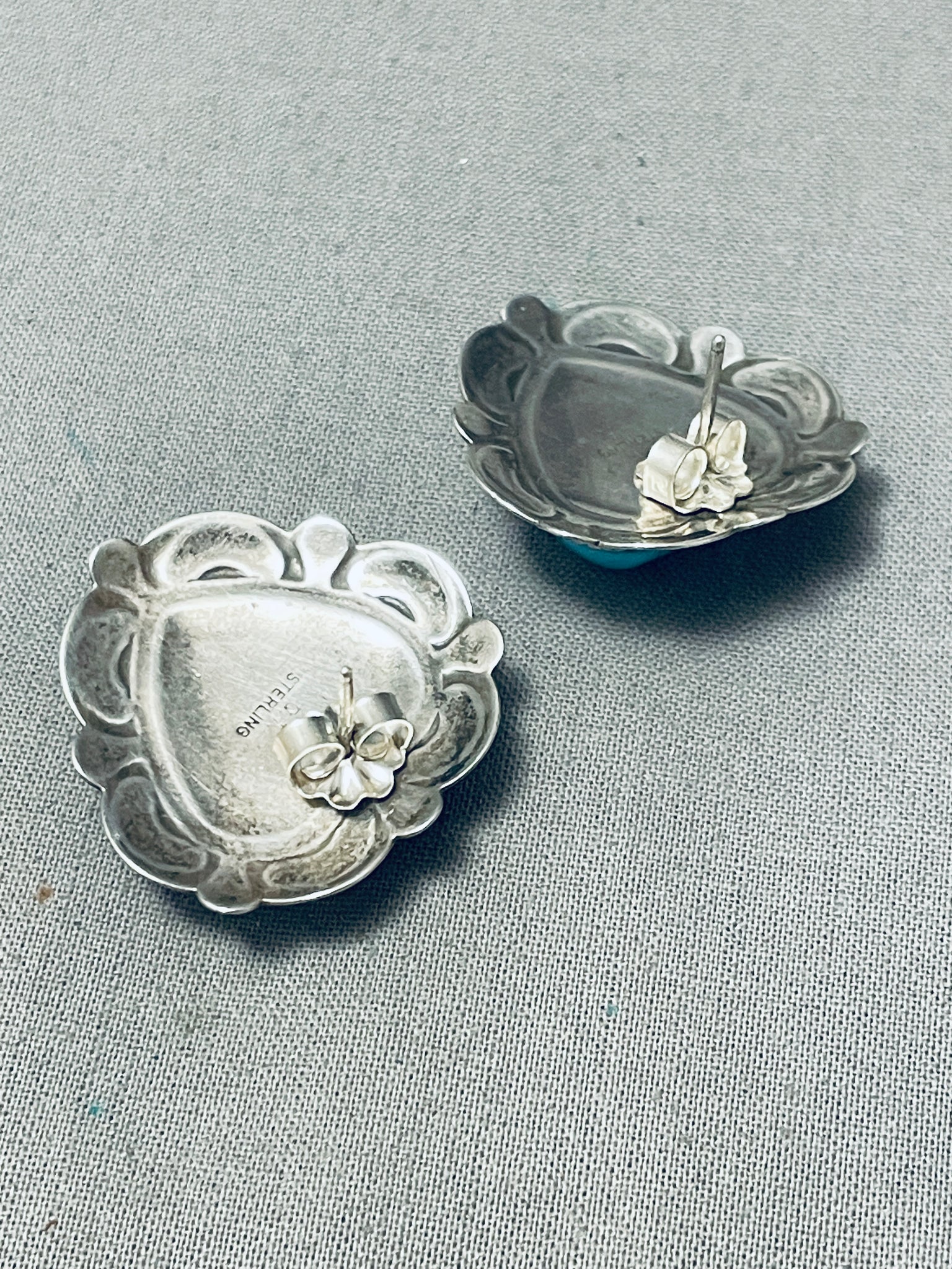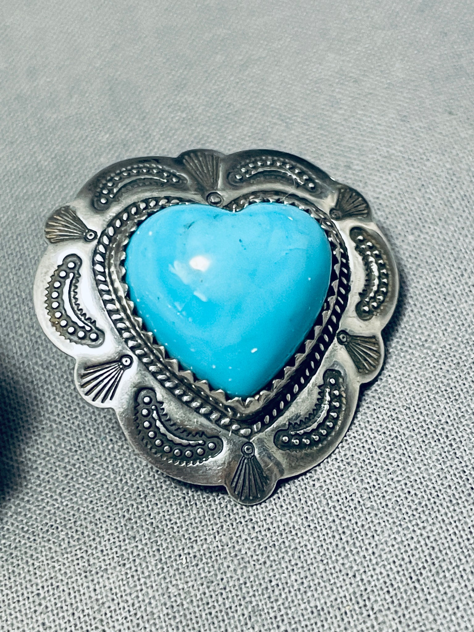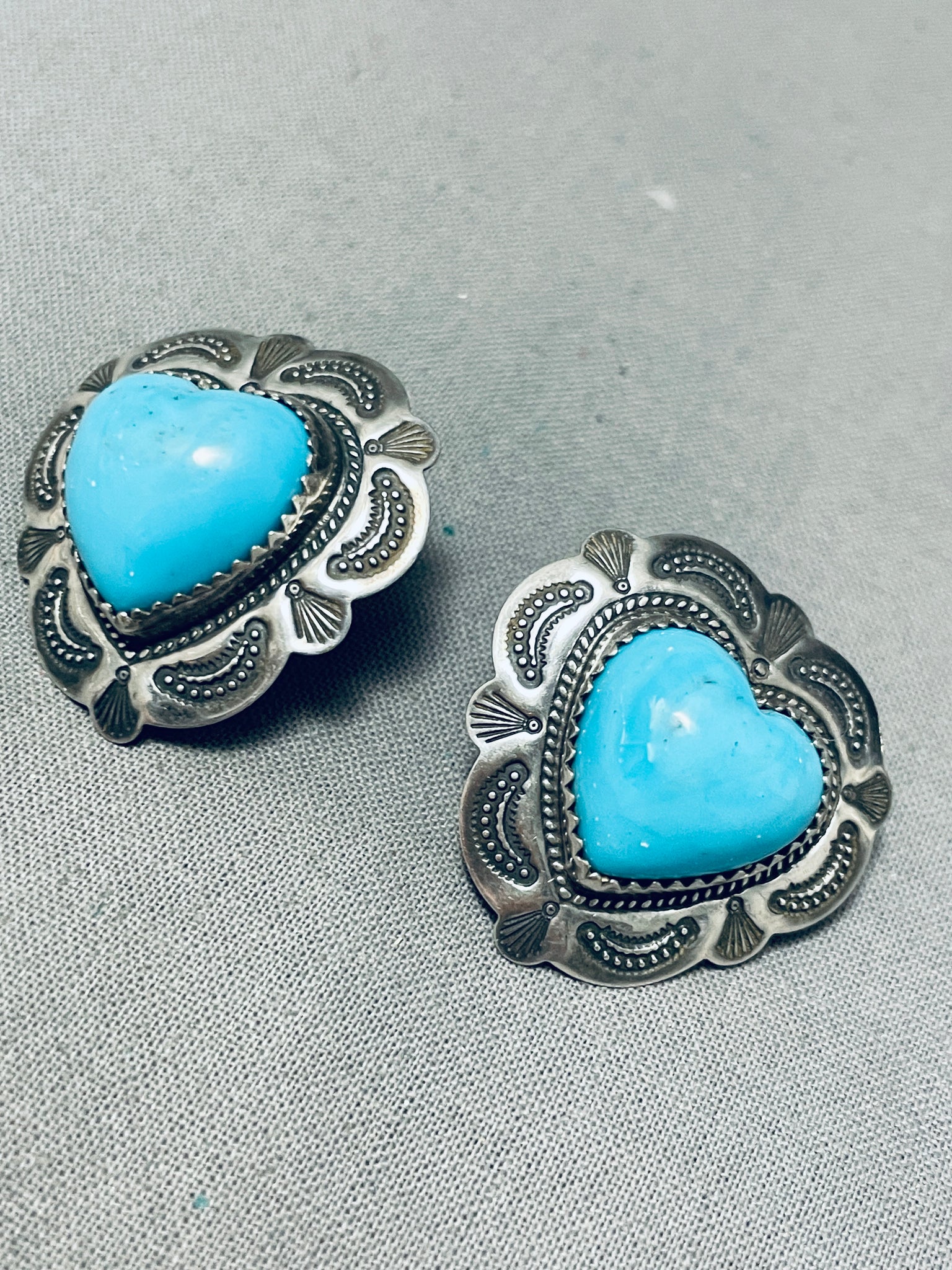 Hearts Of Turquoise Vintage Native American Navajo Sterling Silver Earrings