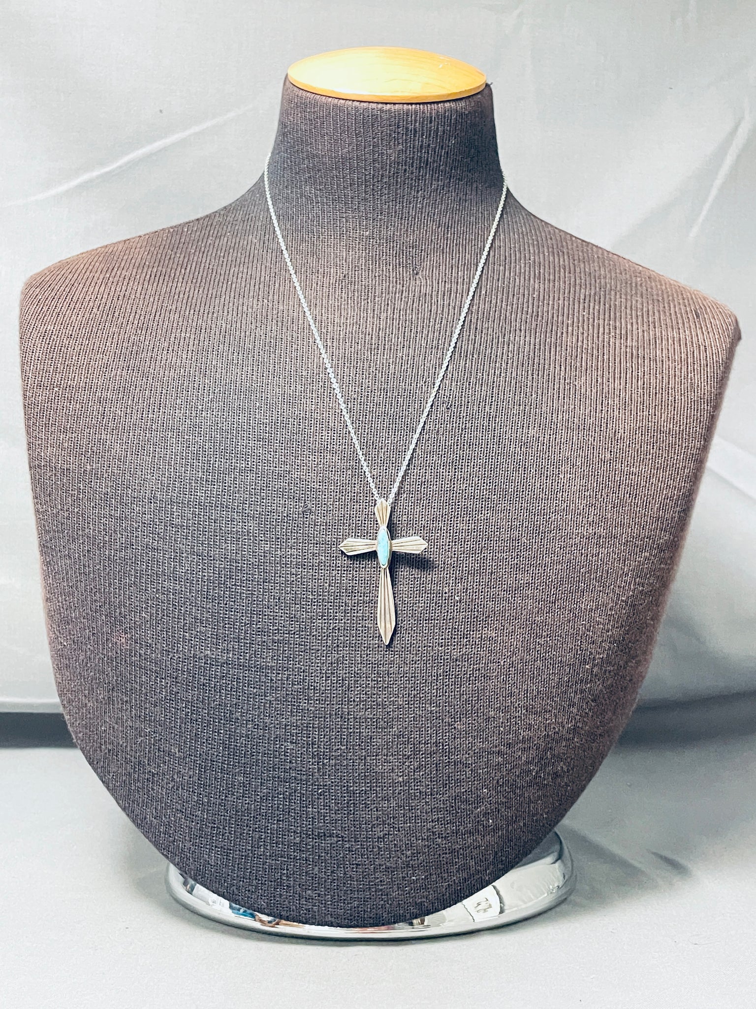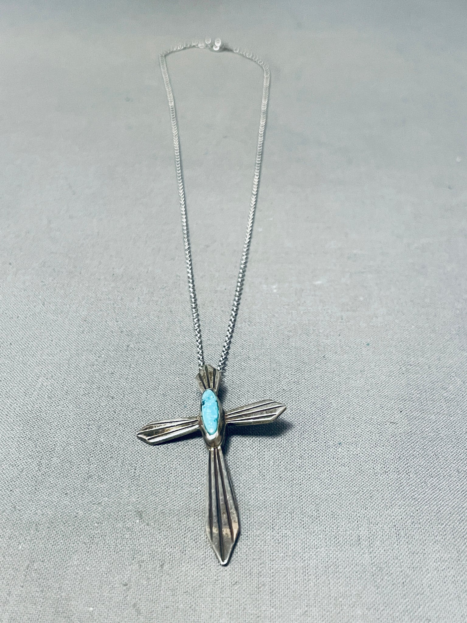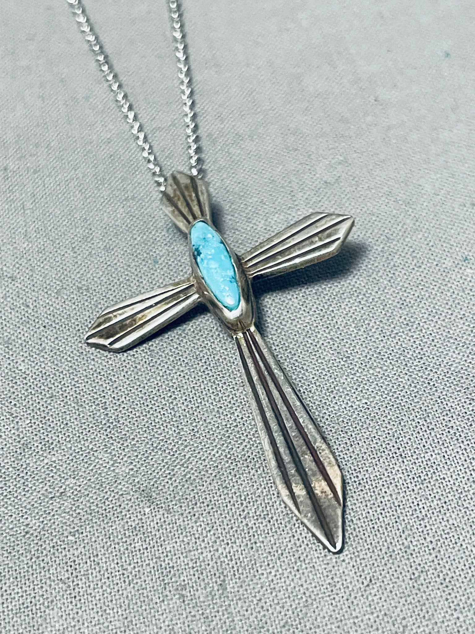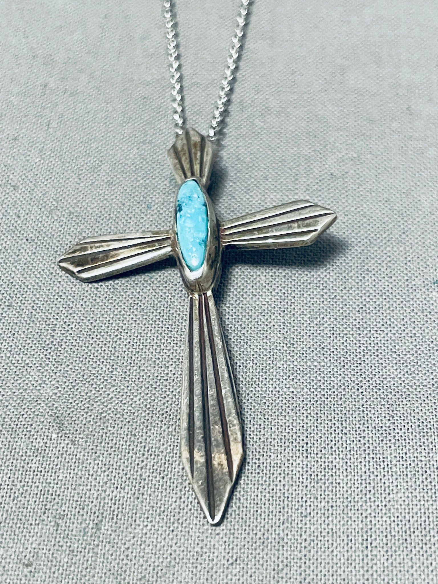 Heavenly Vintage Native American Navajo Kingman Turquoise Sterling Silver Cross Necklace
