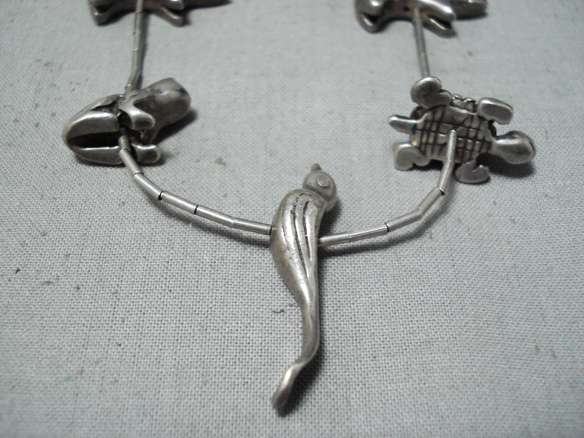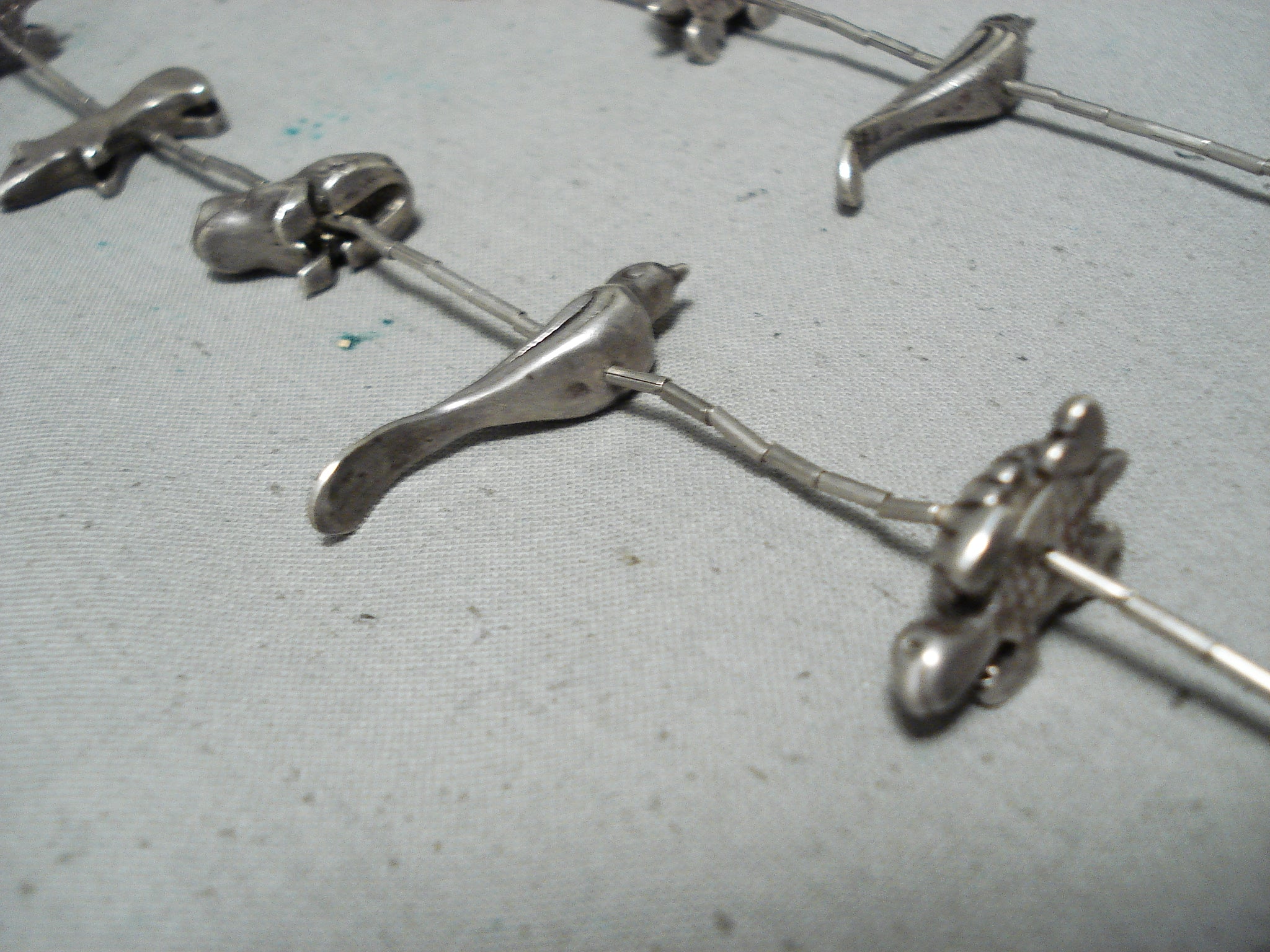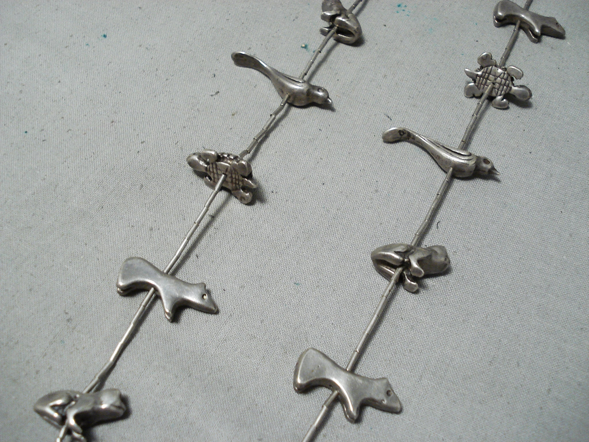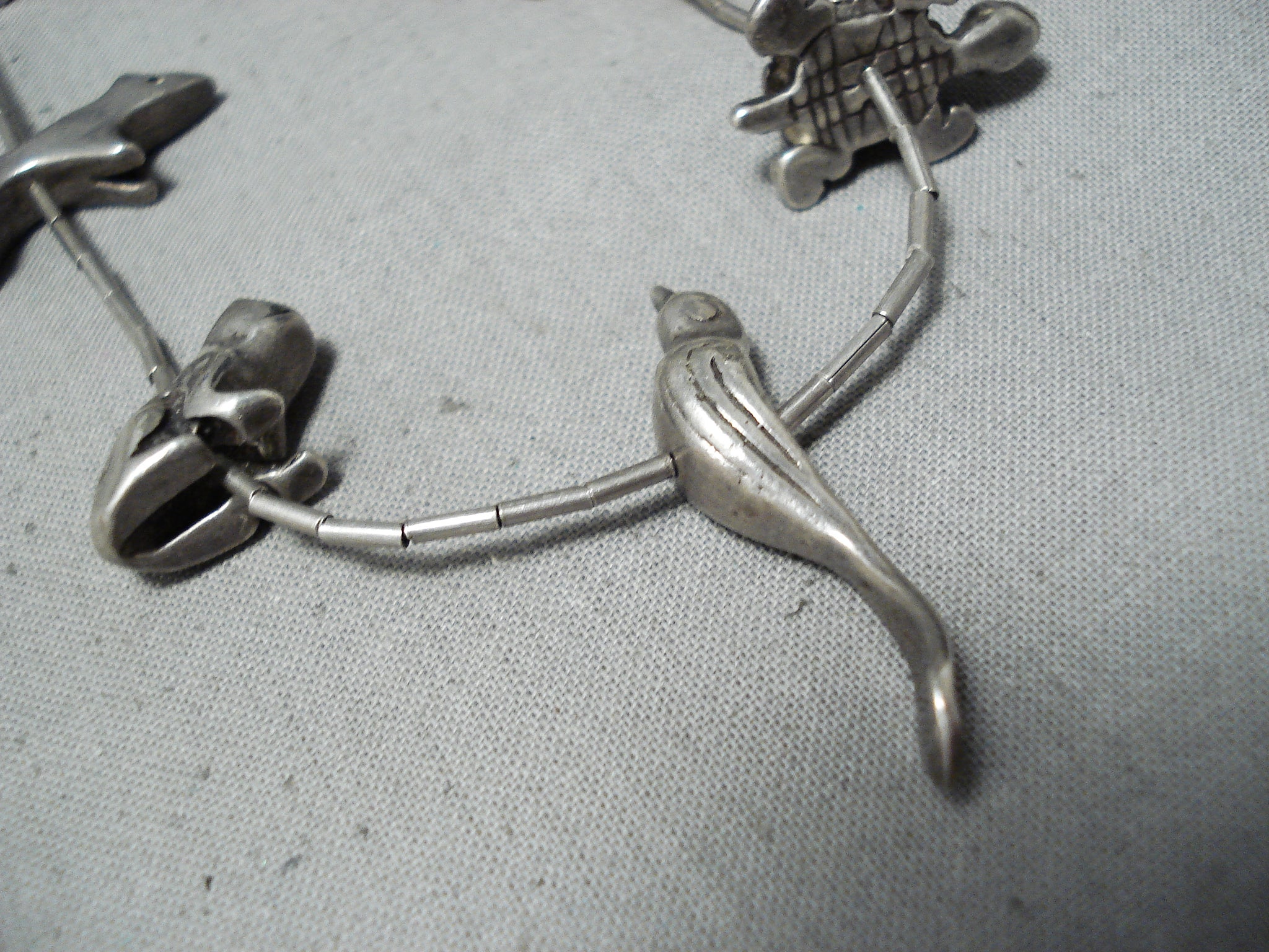 Heavy 100 Gram Vintage Native American Navajo Sterling Silver Animal Fetish Necklace Old