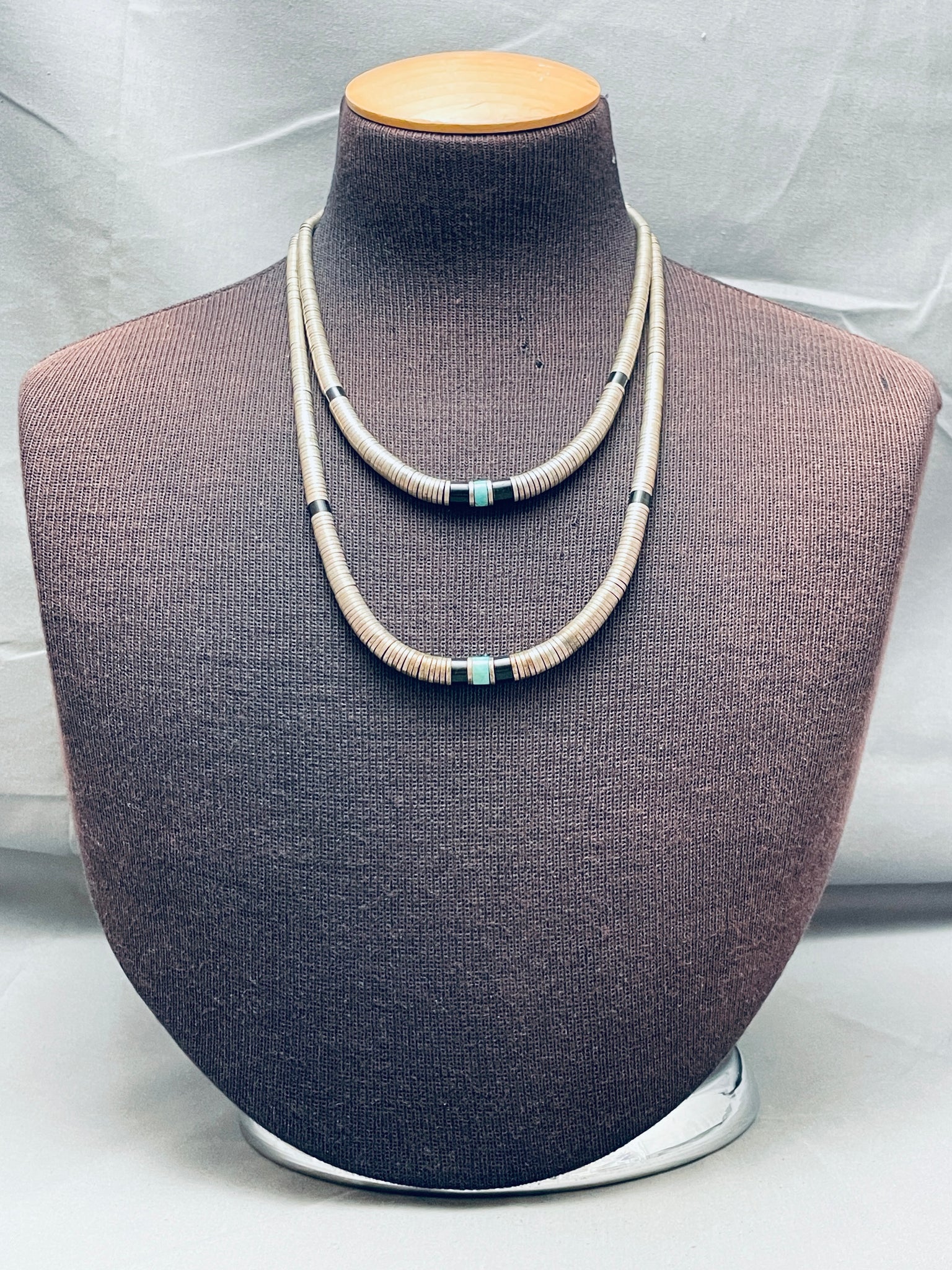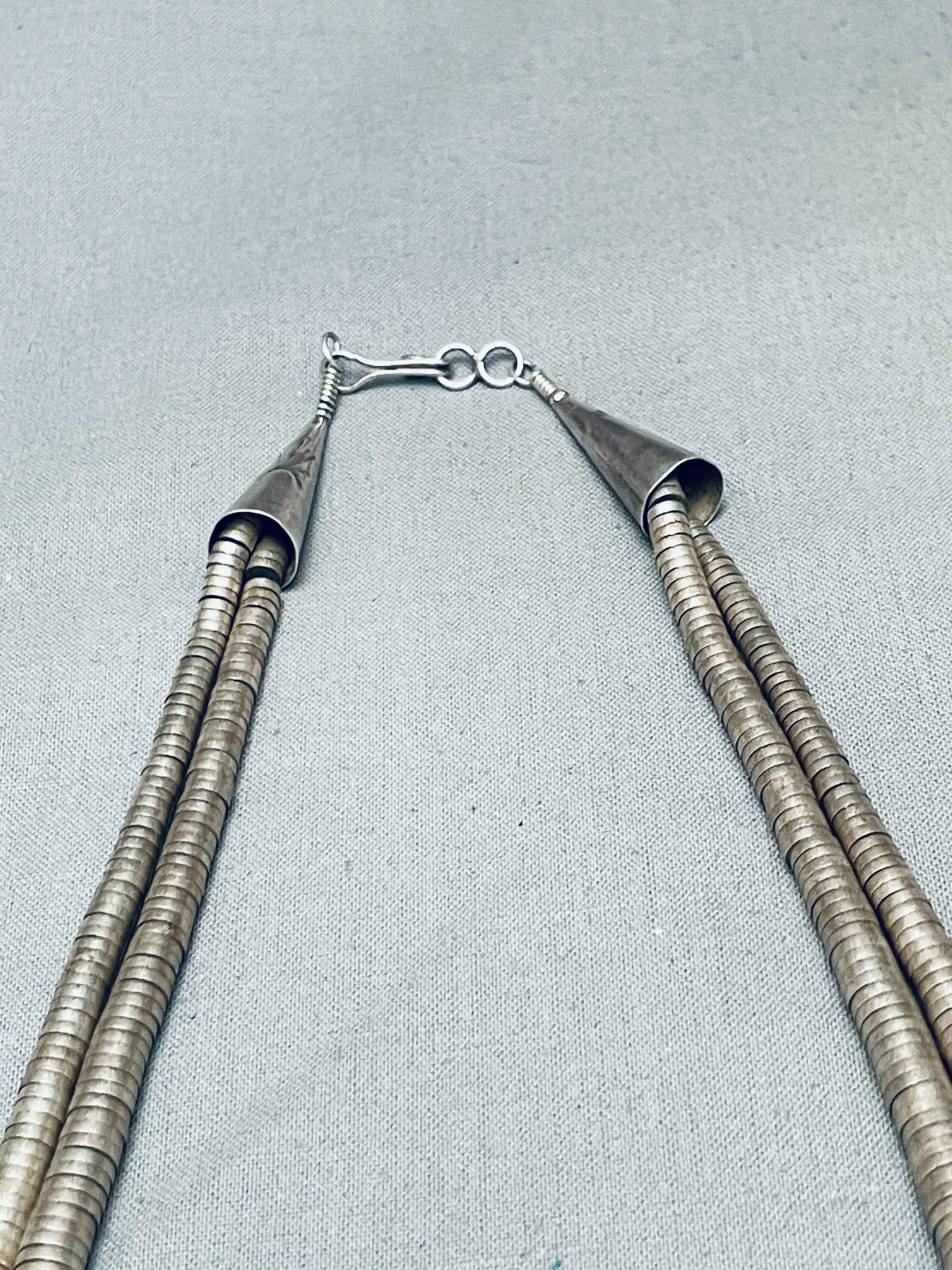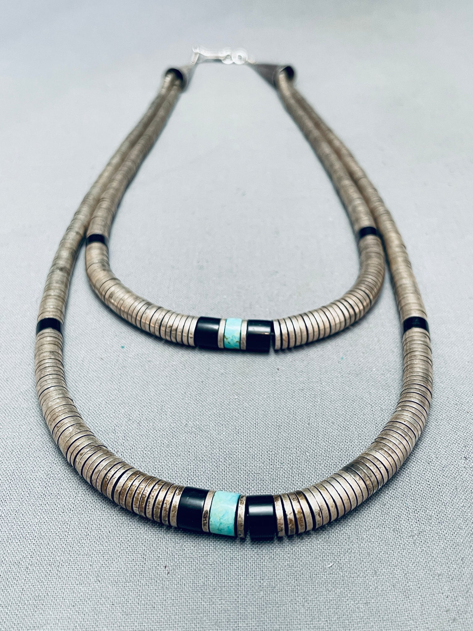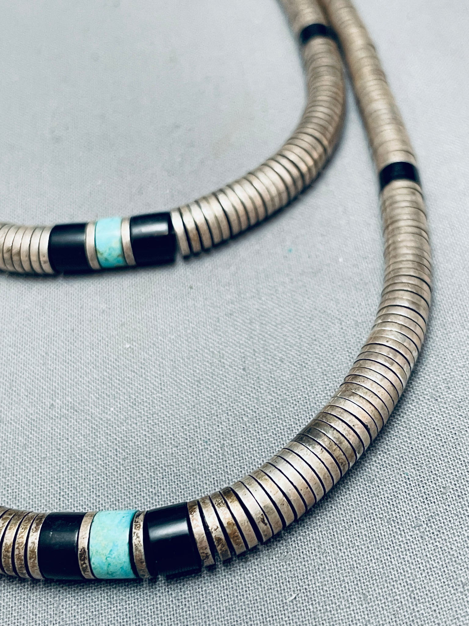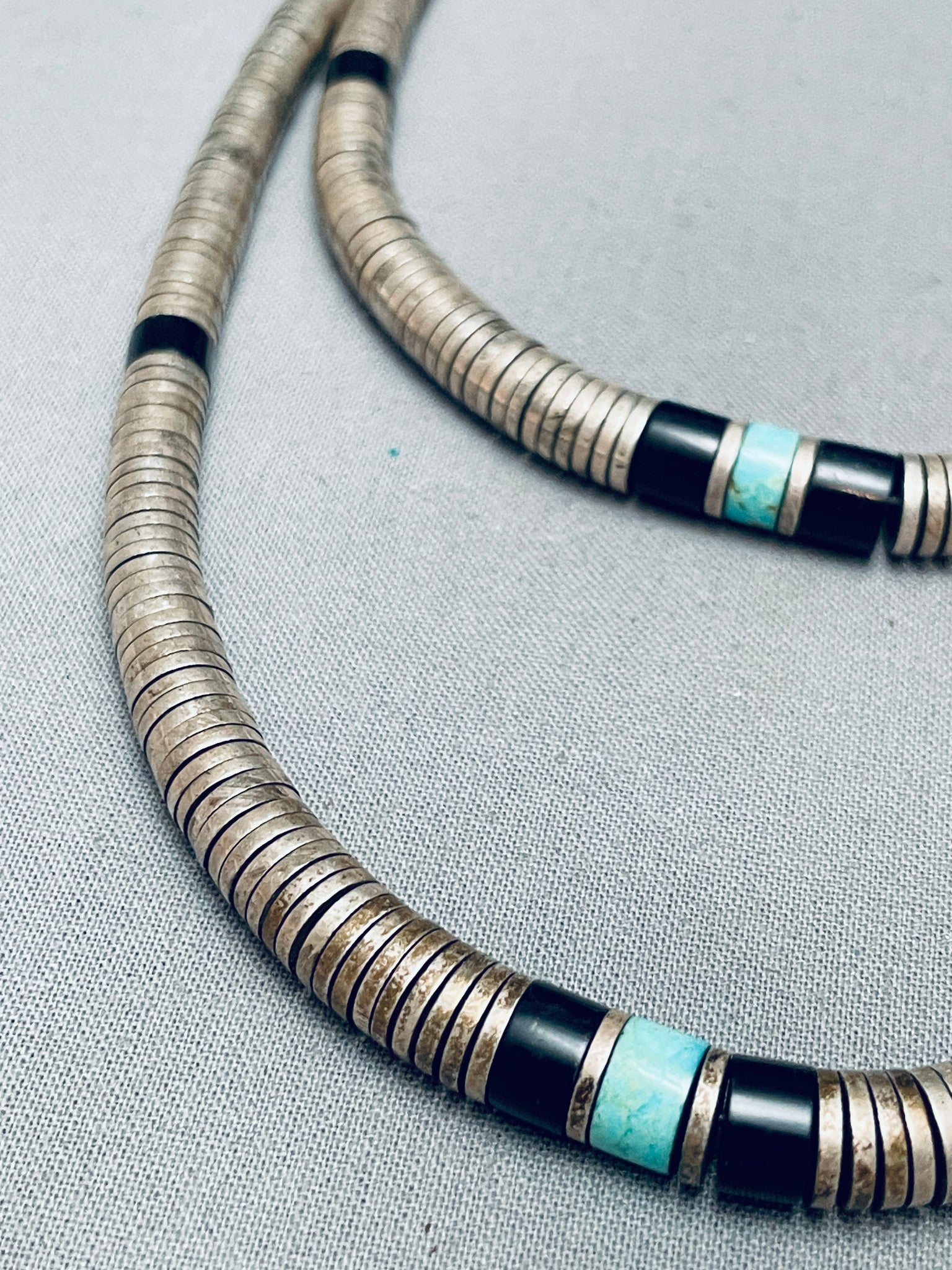 Heavy 175 Grams! Vintage Native American Navajo Sterling Silver Turquoise Disc Necklace Old