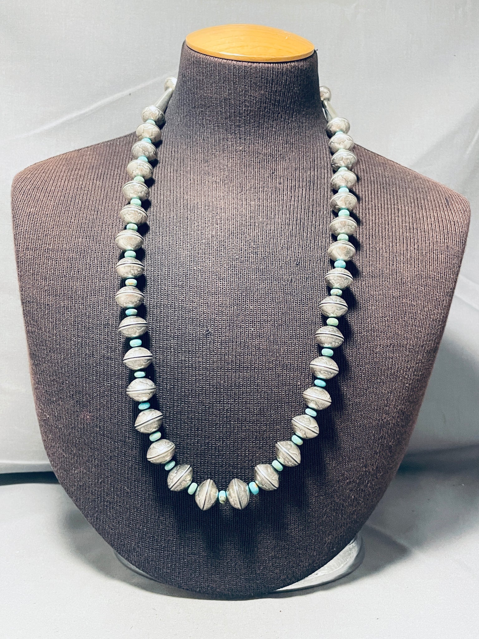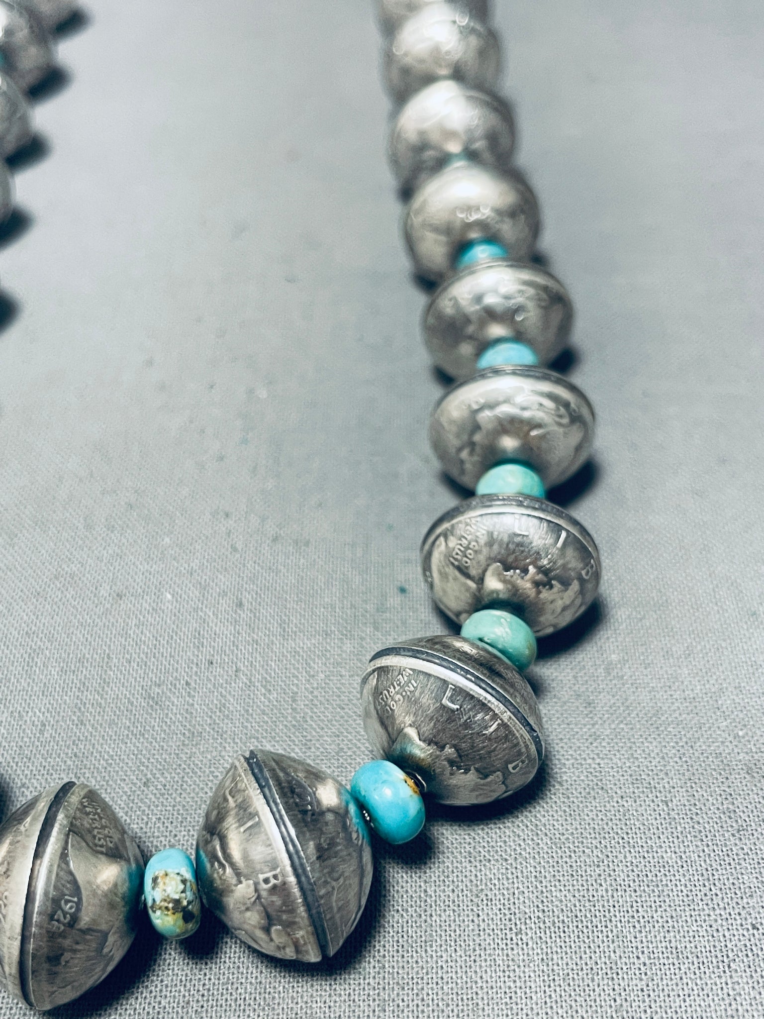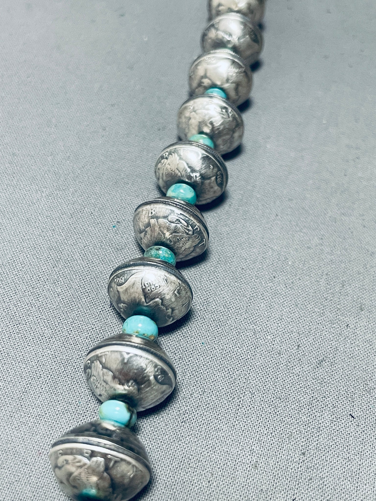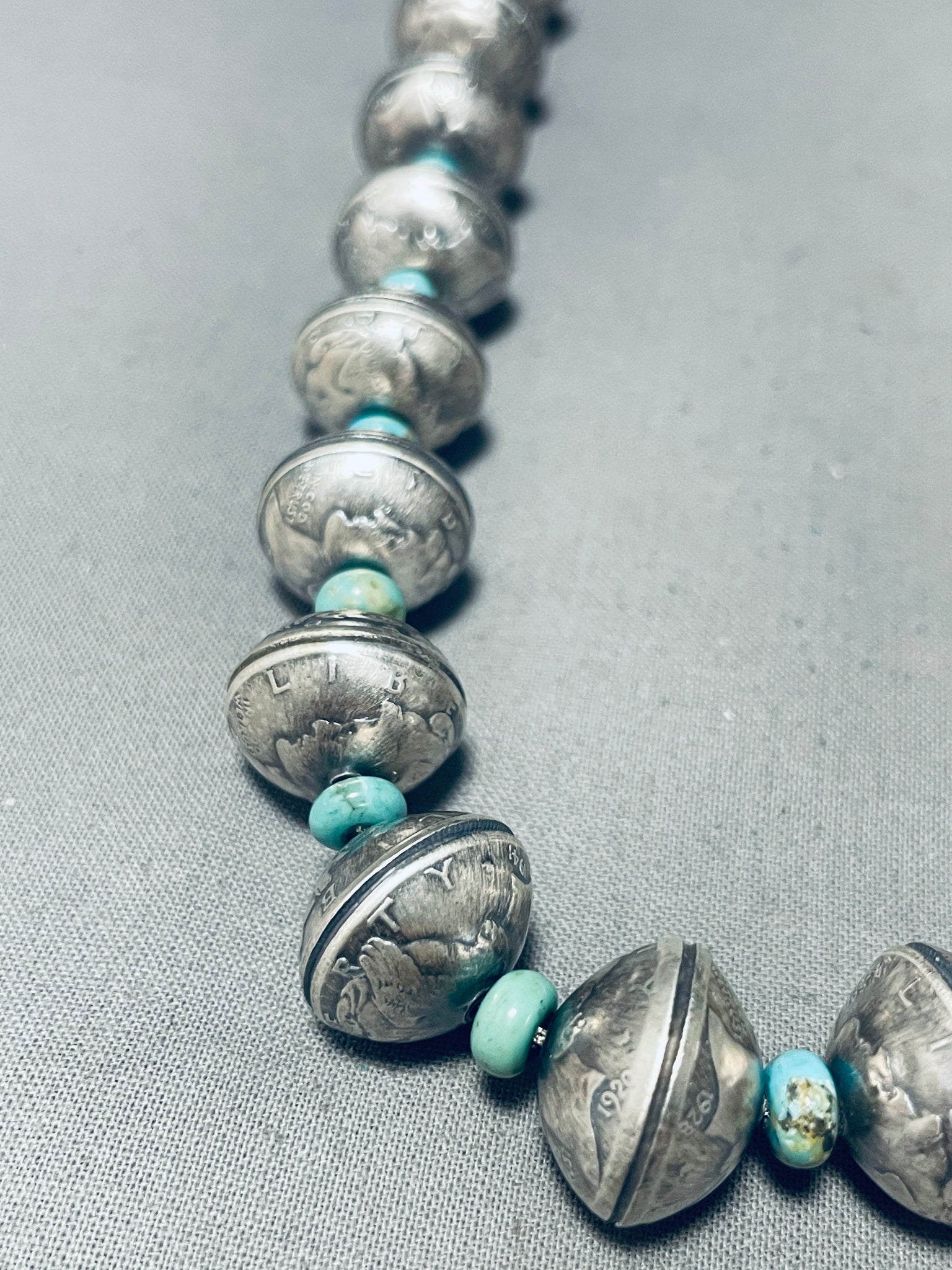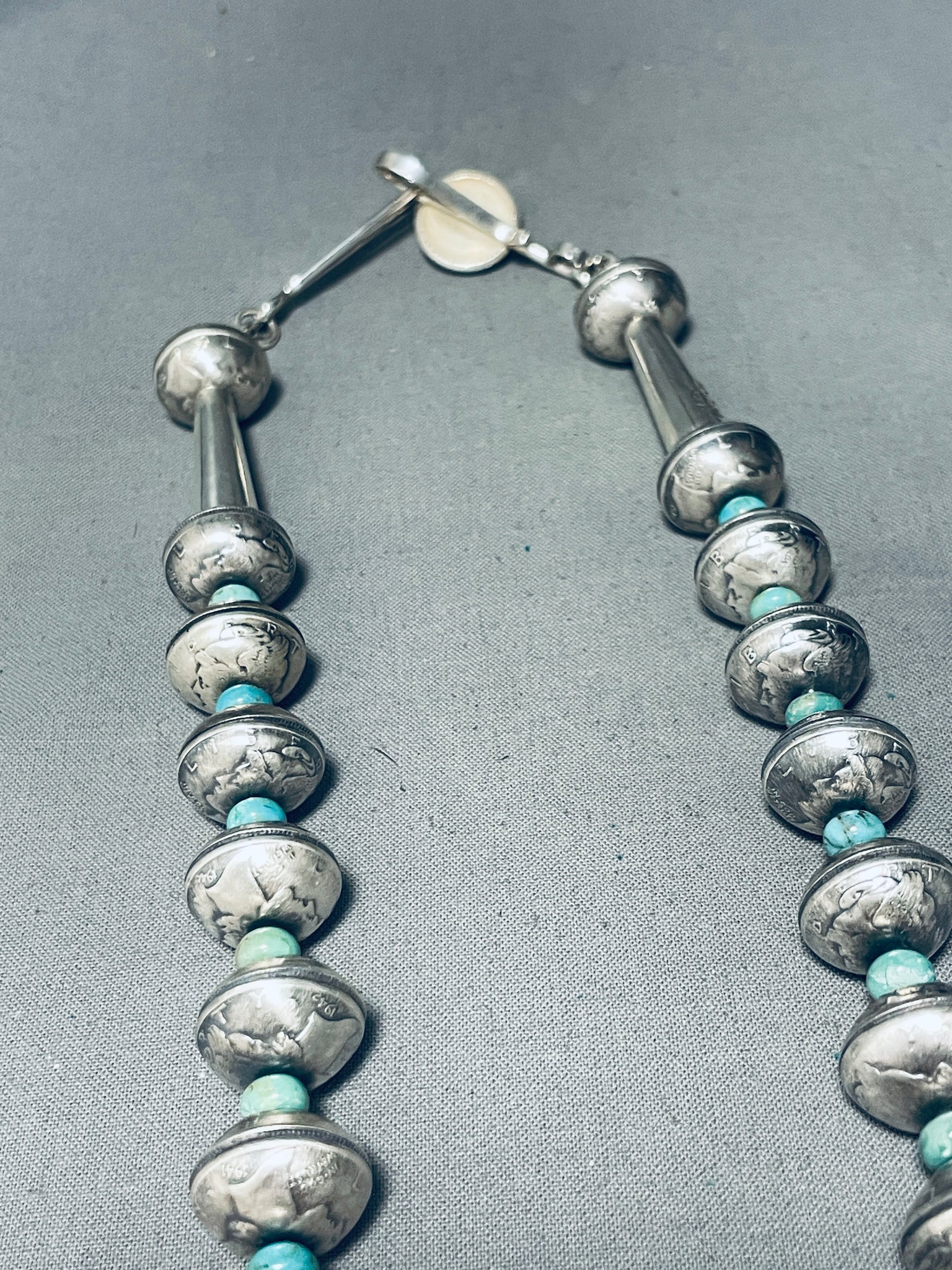 Heavy 182 Grams Native American Navajo Coin Turquoise Sterling Silver Necklace