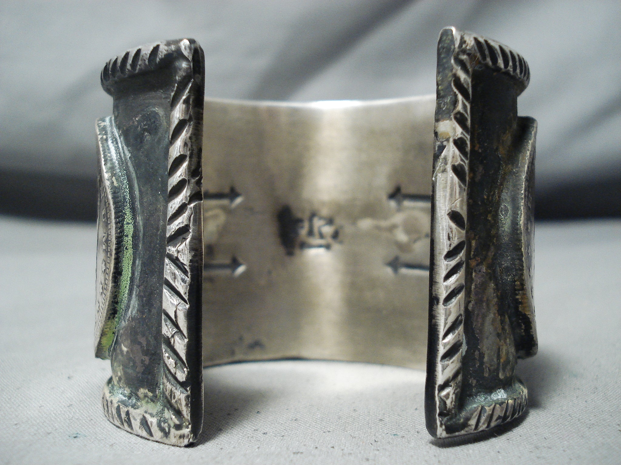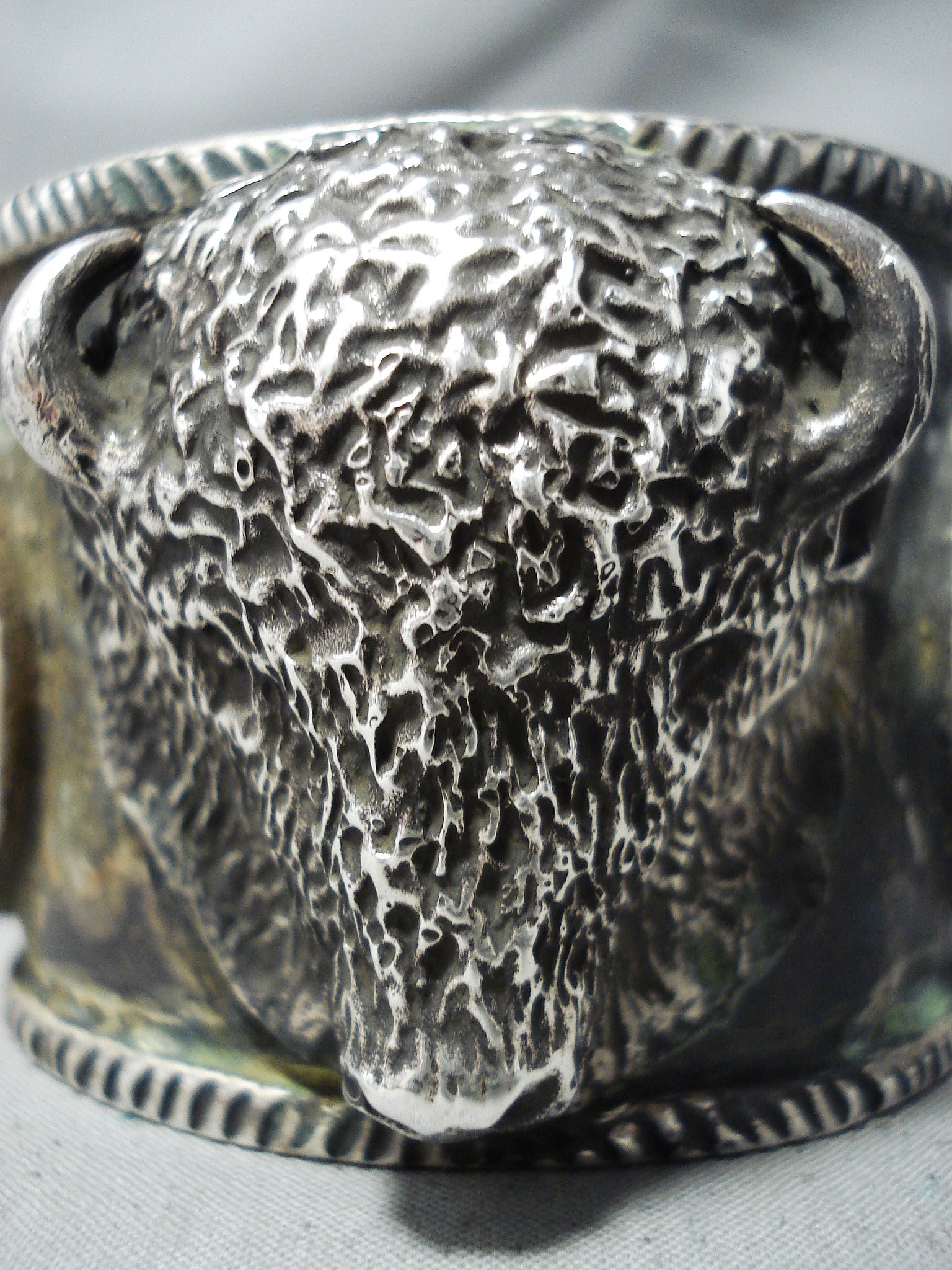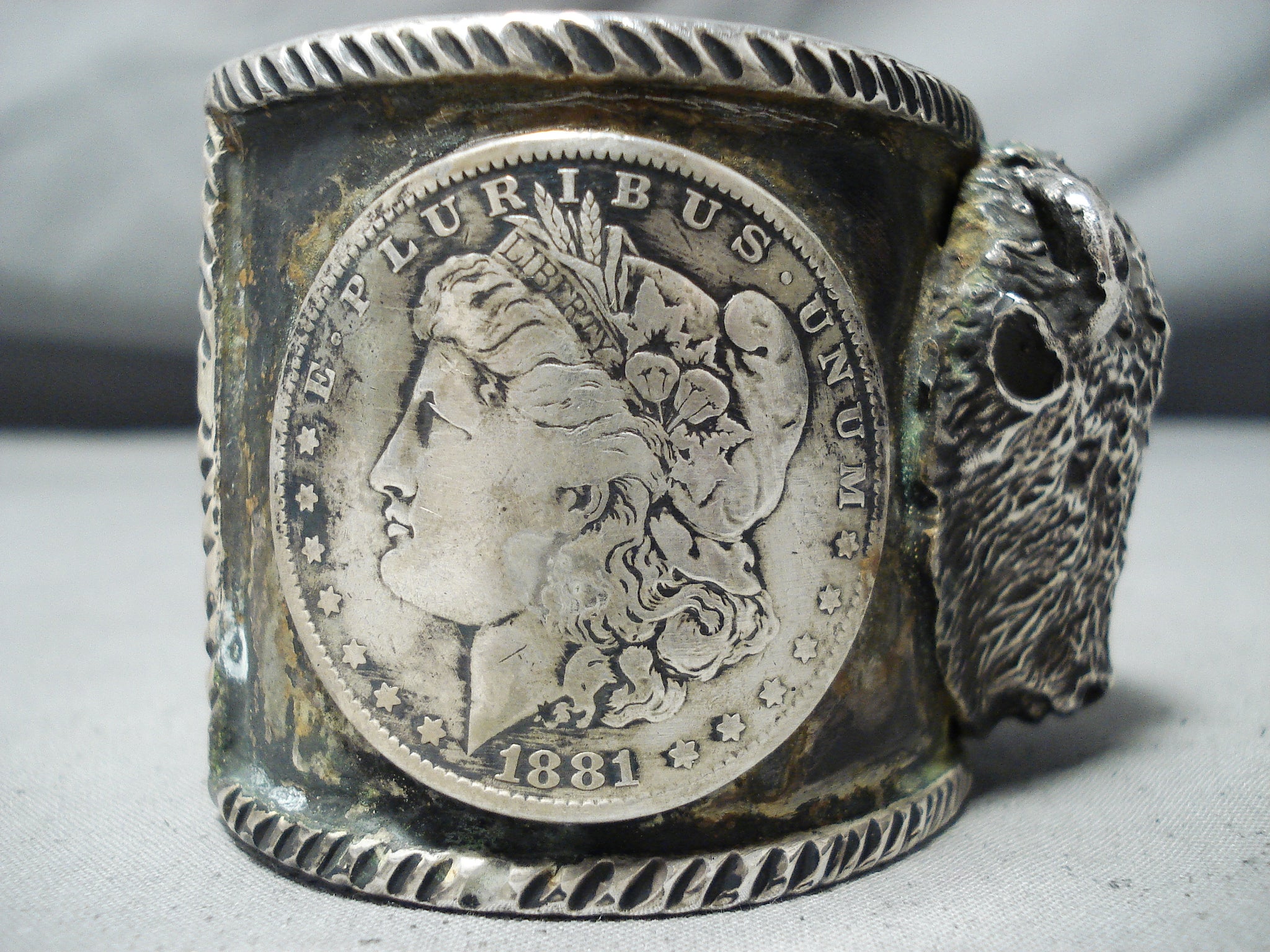 Heavy 221 Grams Native American Navajo Buffalo Sterling Silver Coin Bracelet