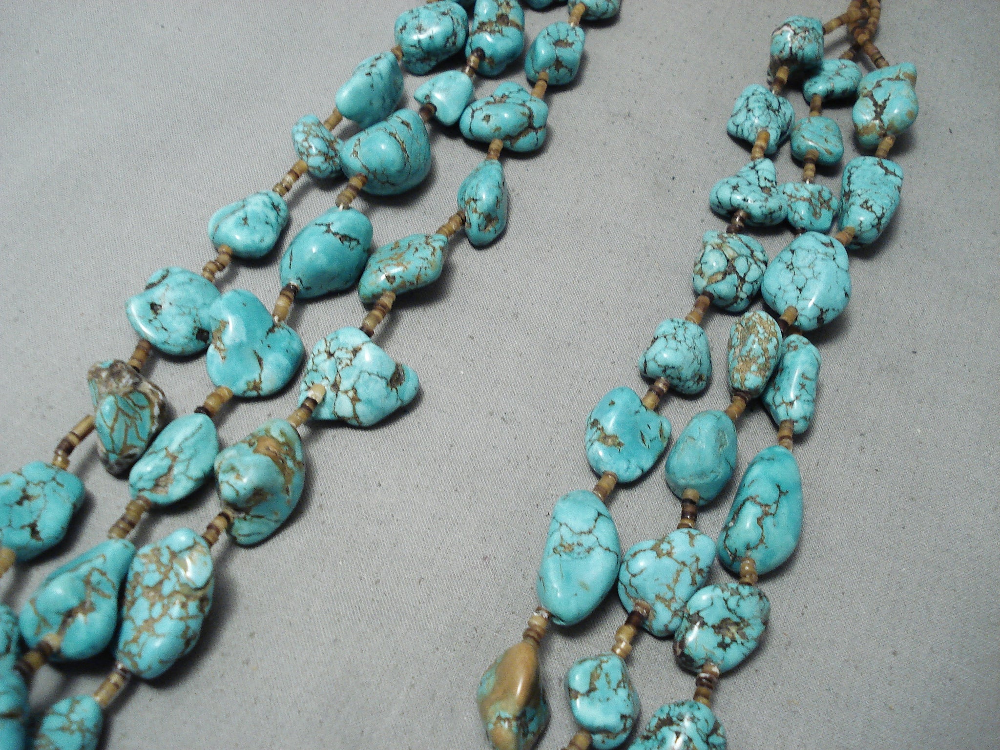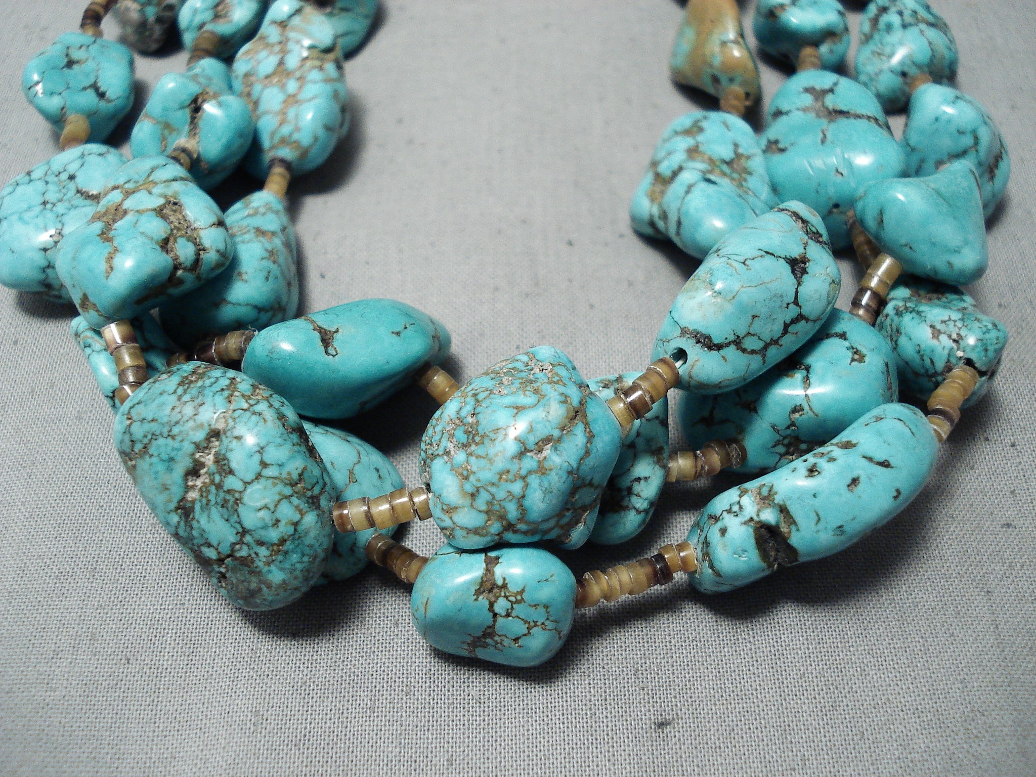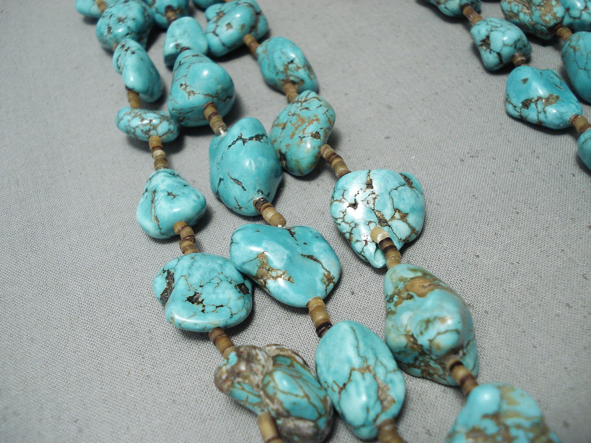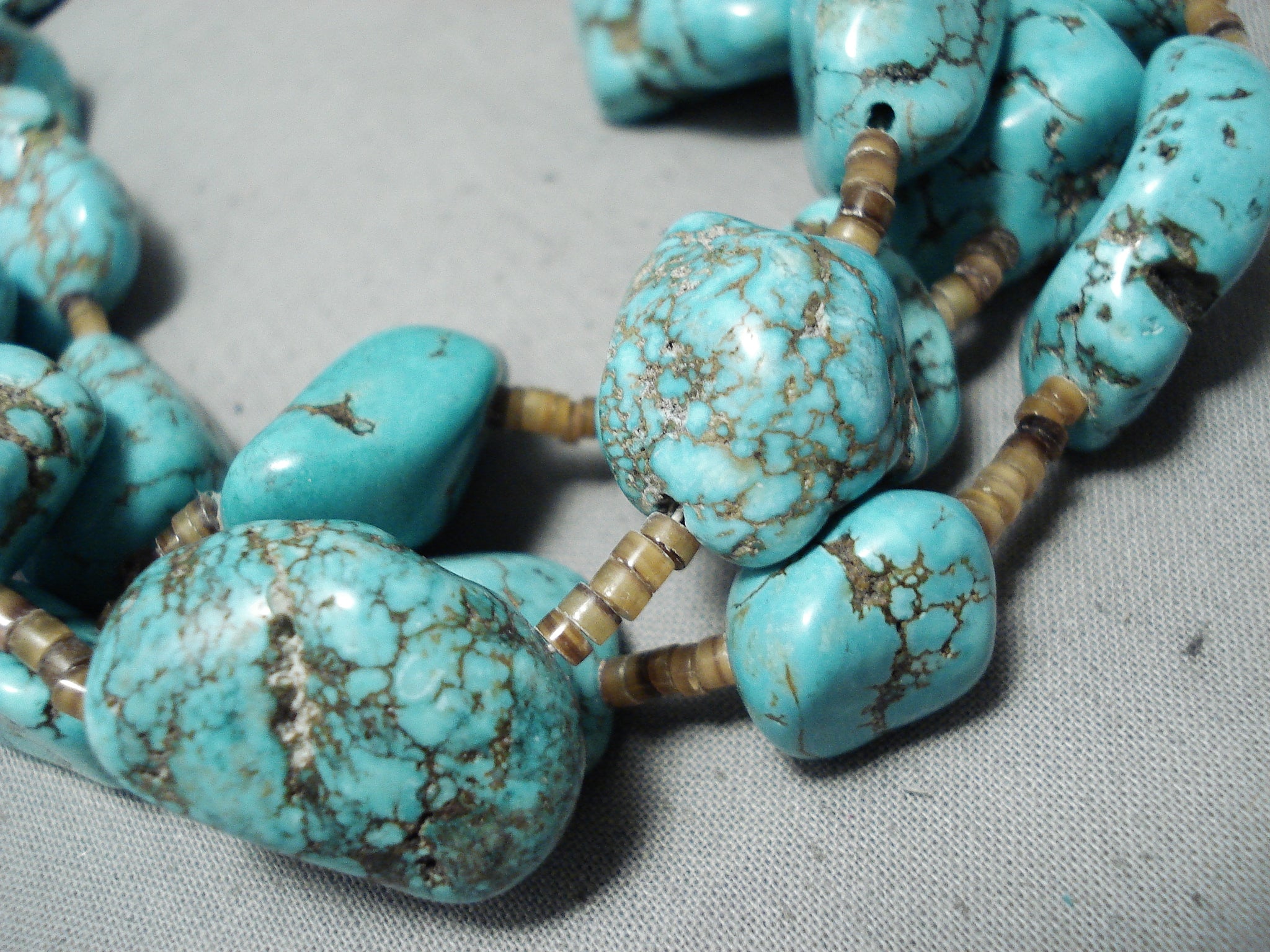 Heavy 303 Grams Chunky Turquoise Nuggets Vintage Native American Navajo Necklace Old