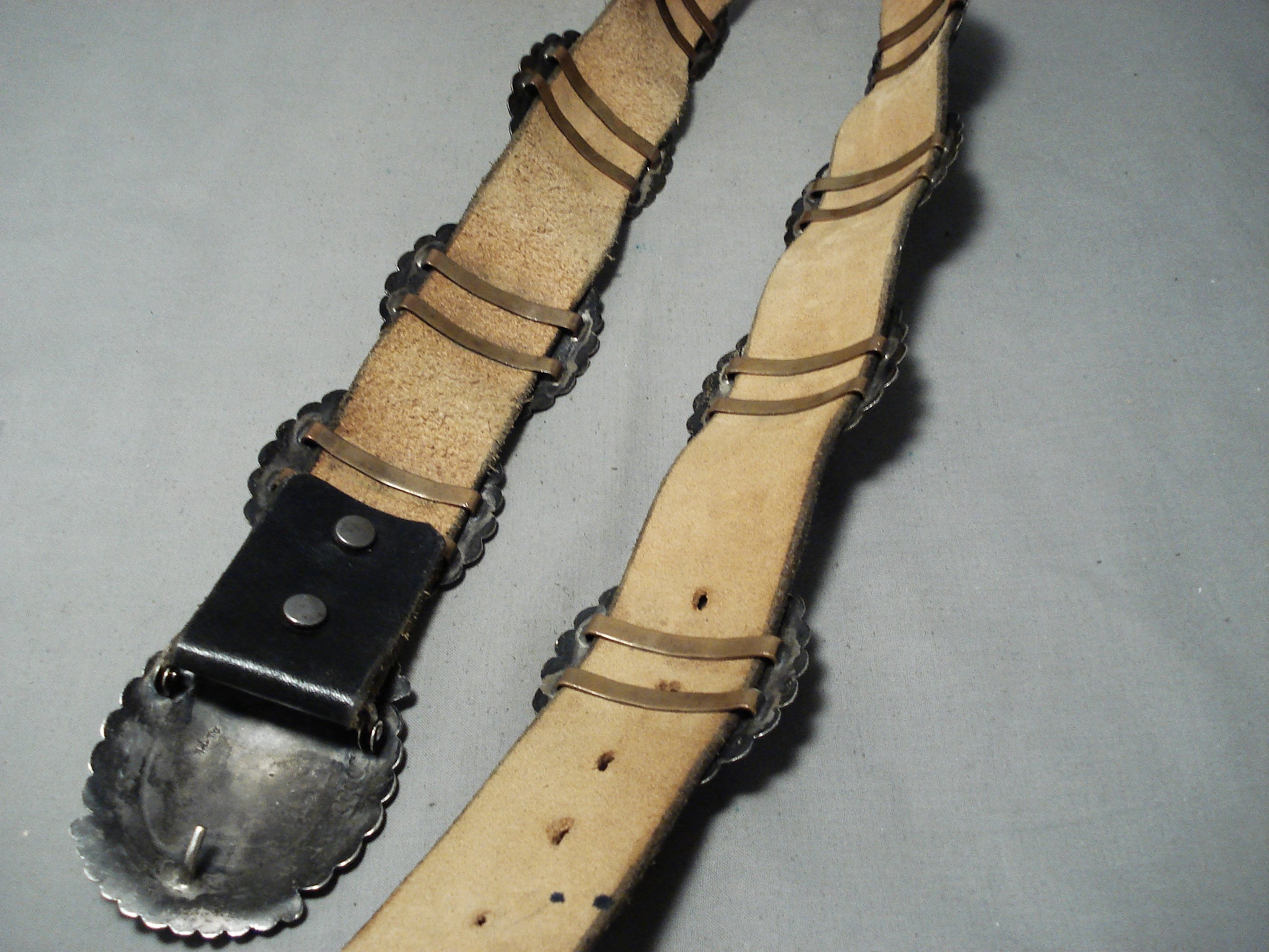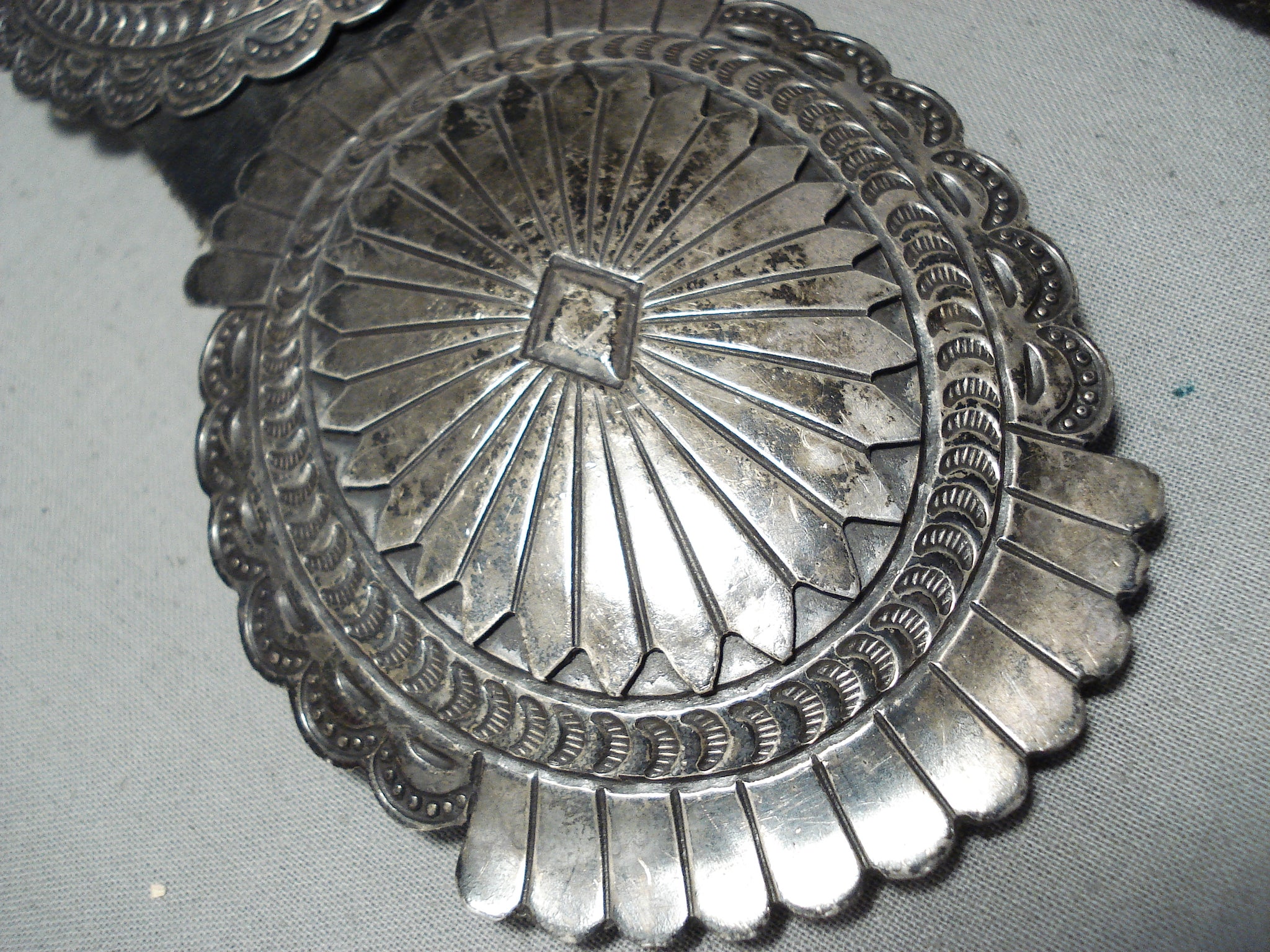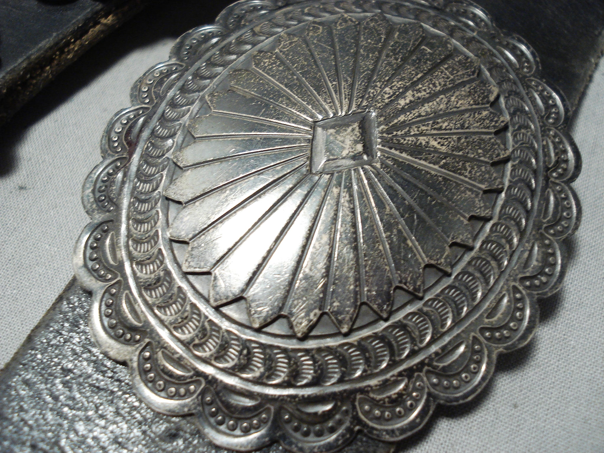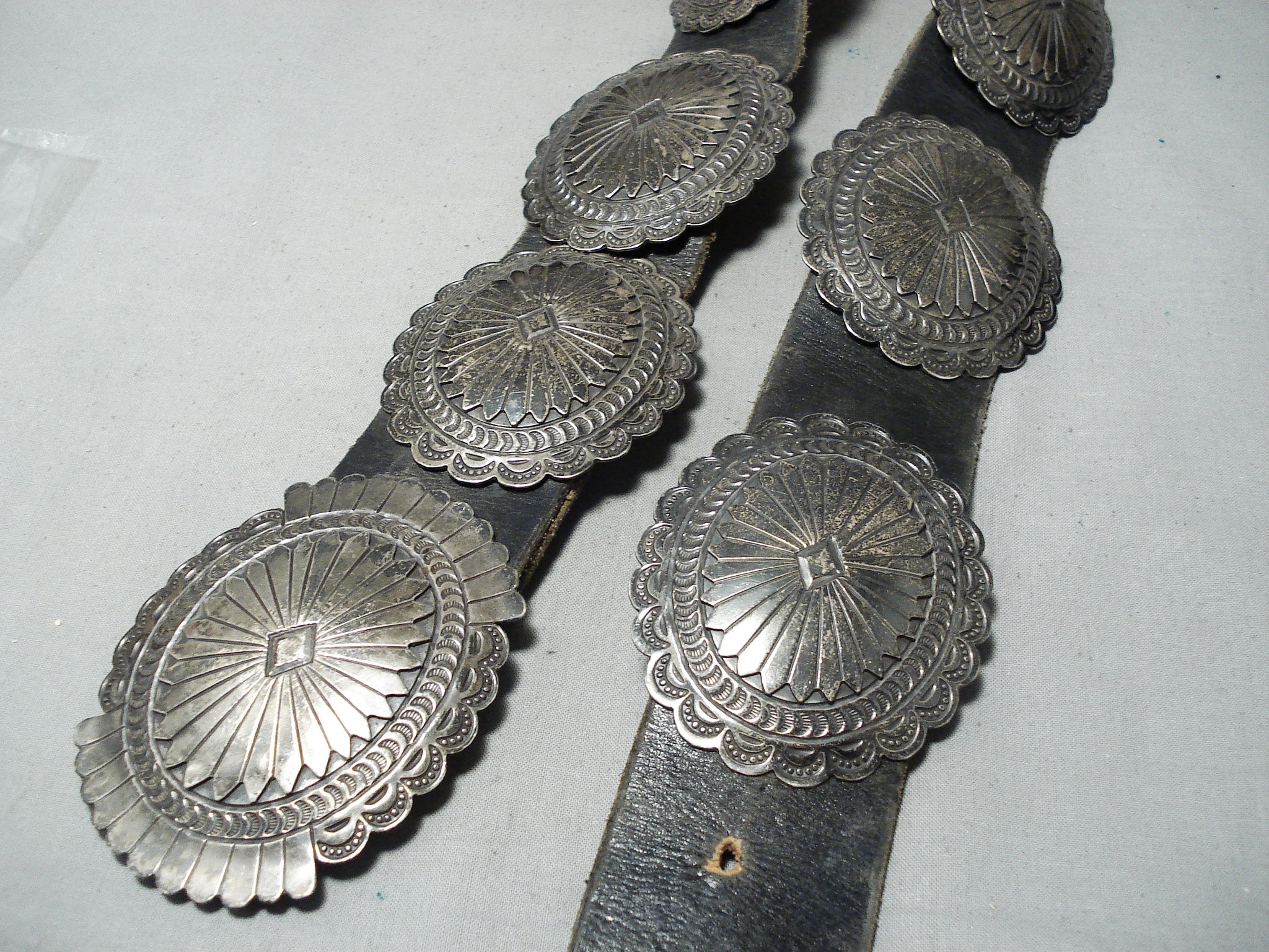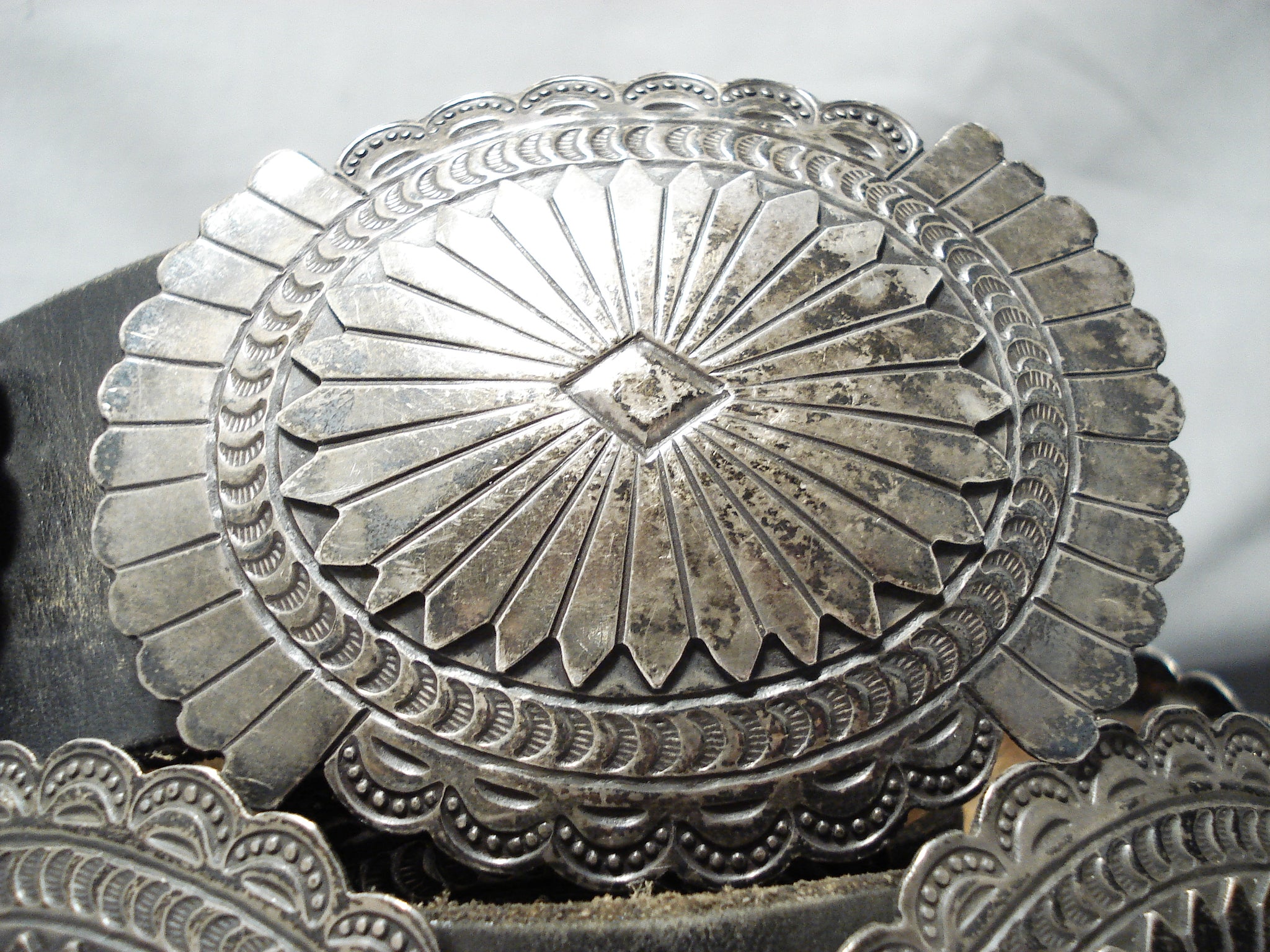 Heavy 576 Gram Vintage Native American Navajo Hand Wrought Sterling Silver Concho Belt Signed