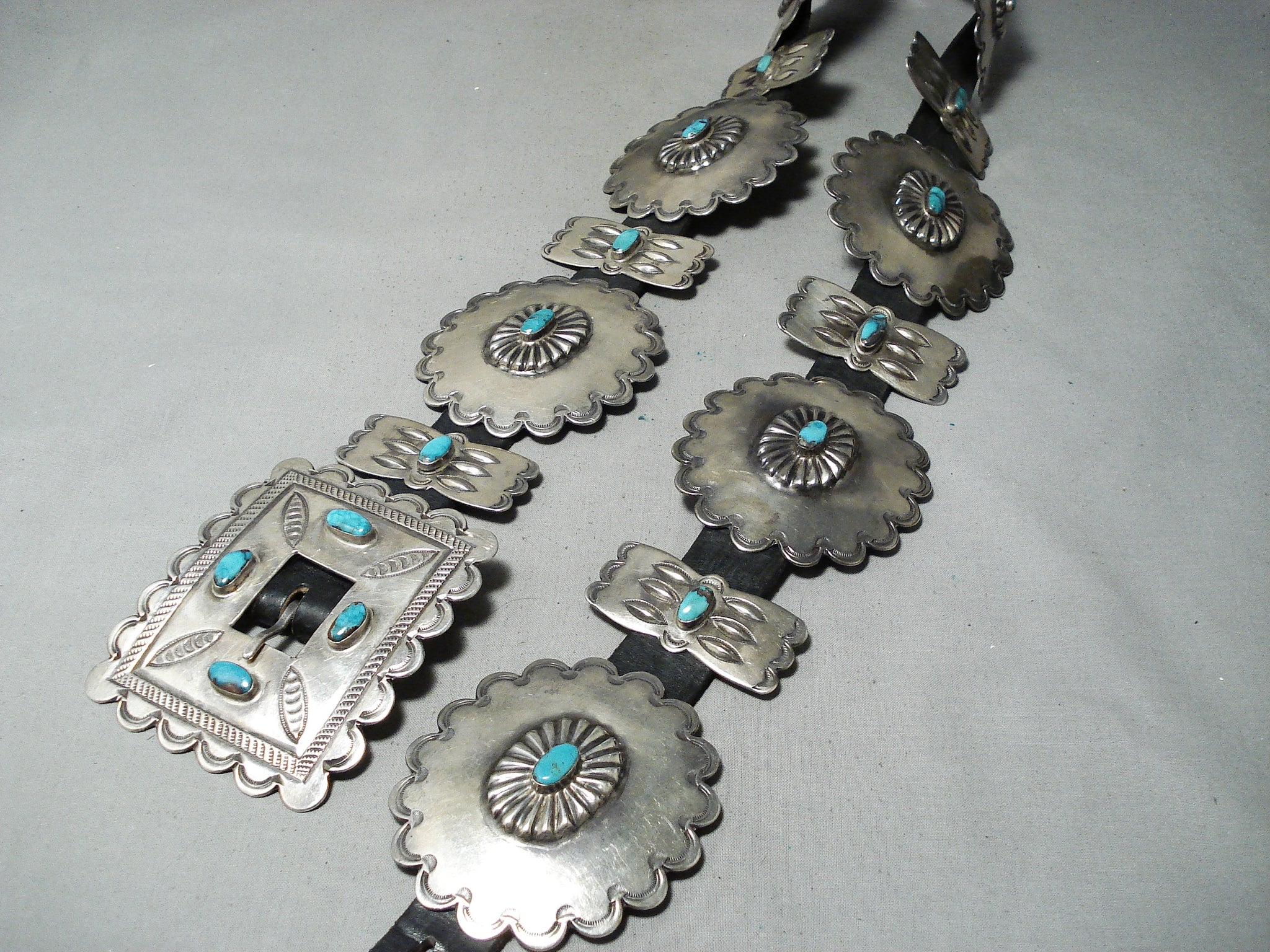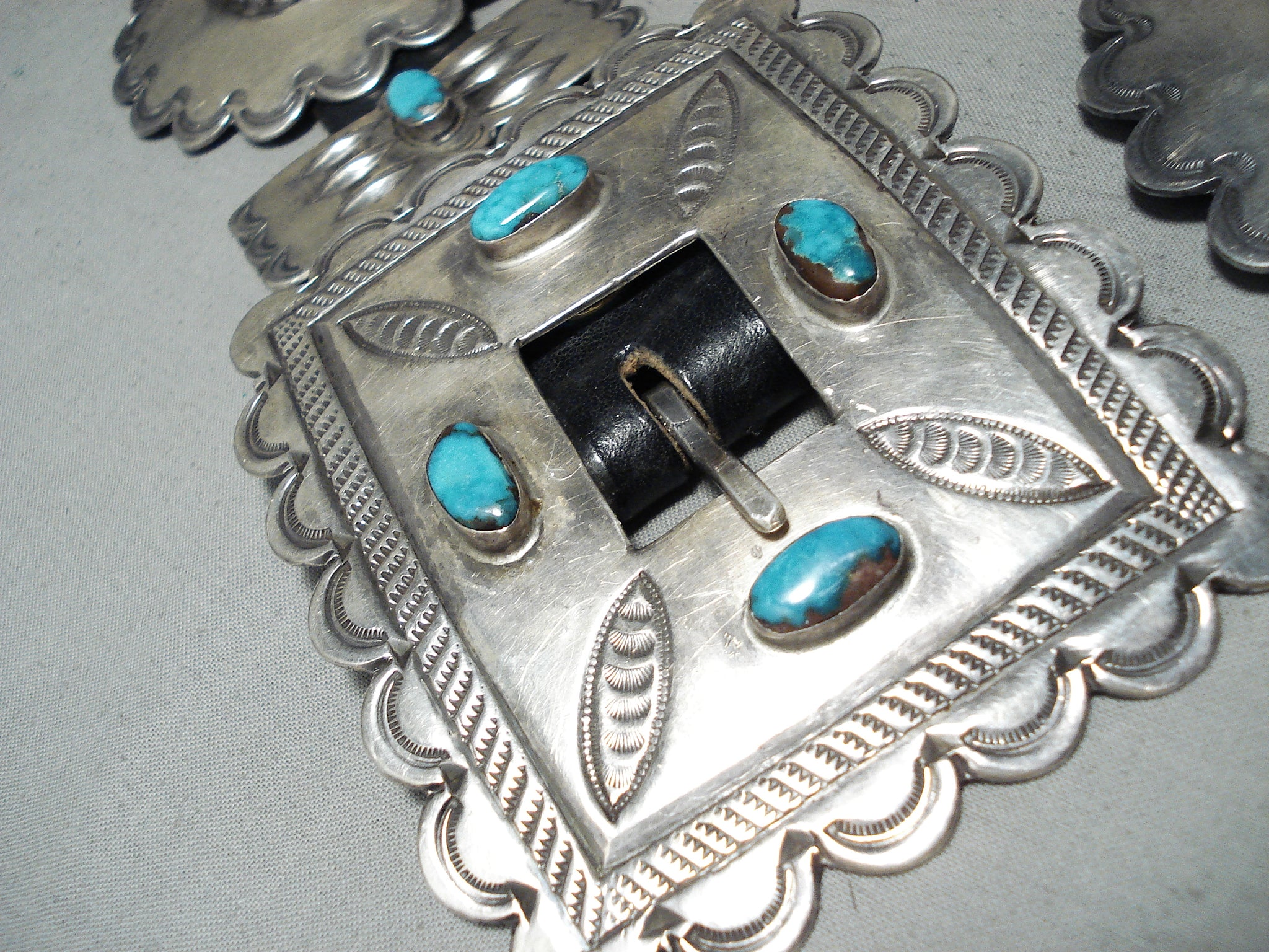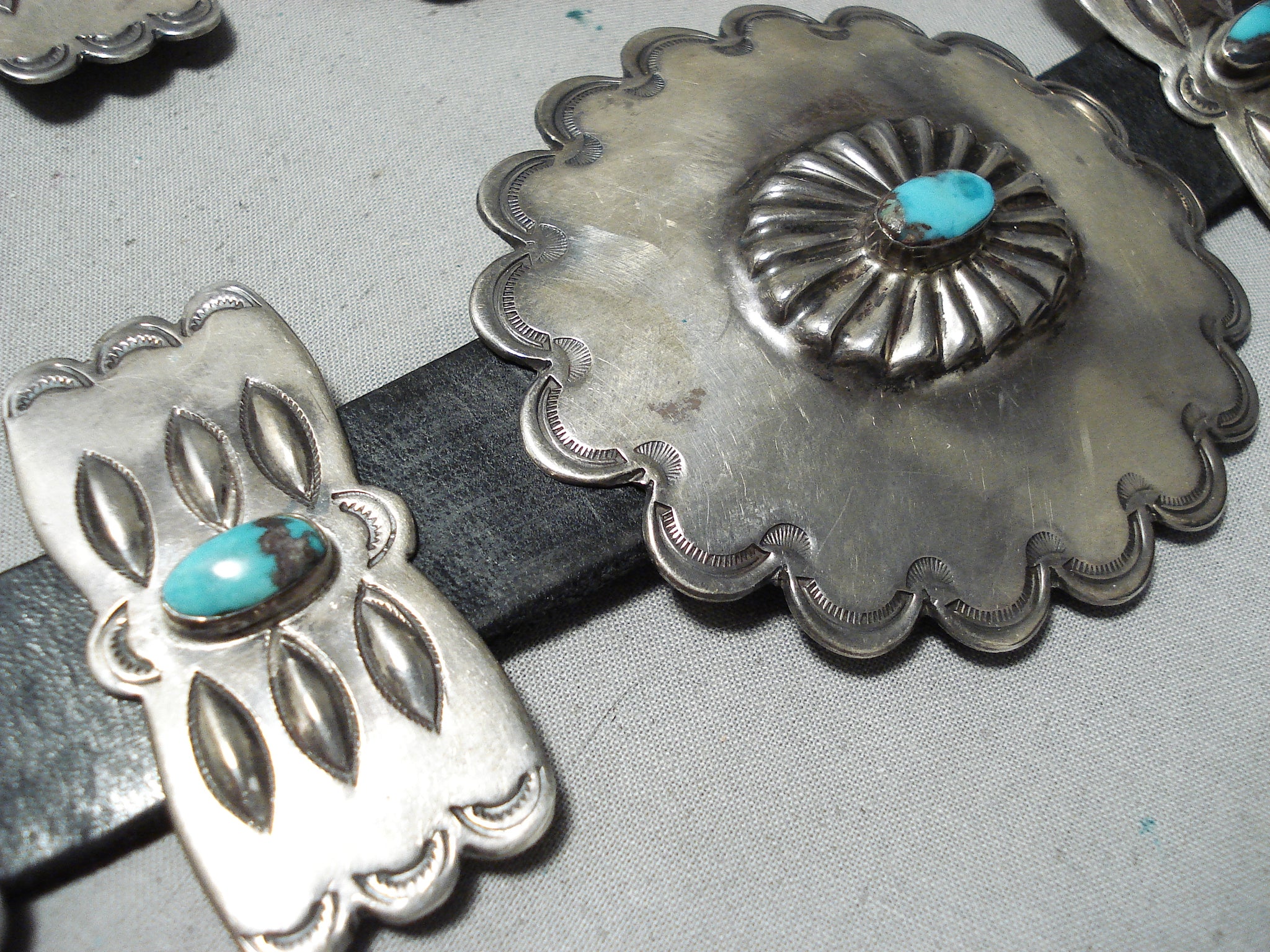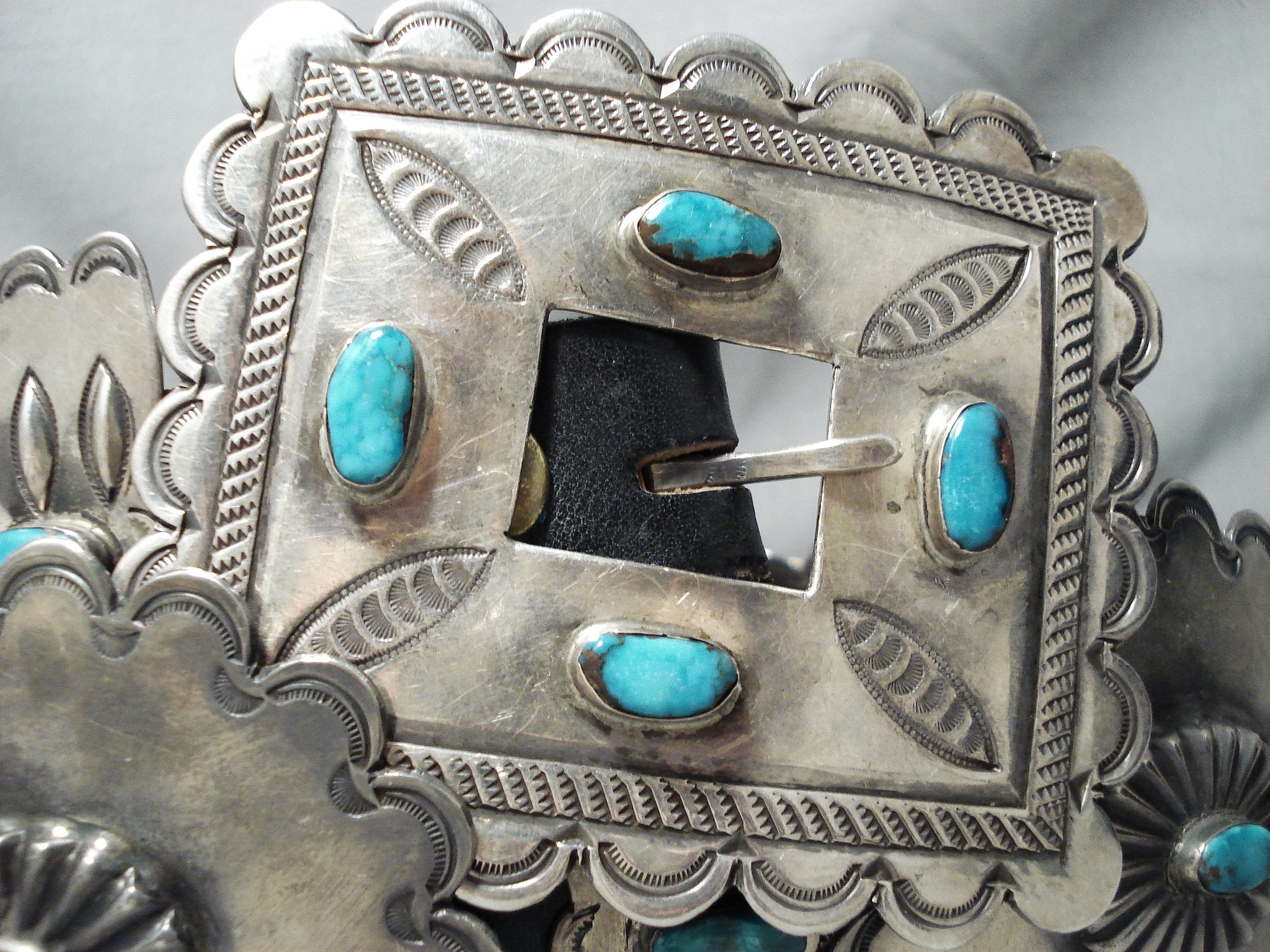 Heavy 600 Gram Vintage Native American Navajo Turquoise Sterling Silver Concho Belt Old