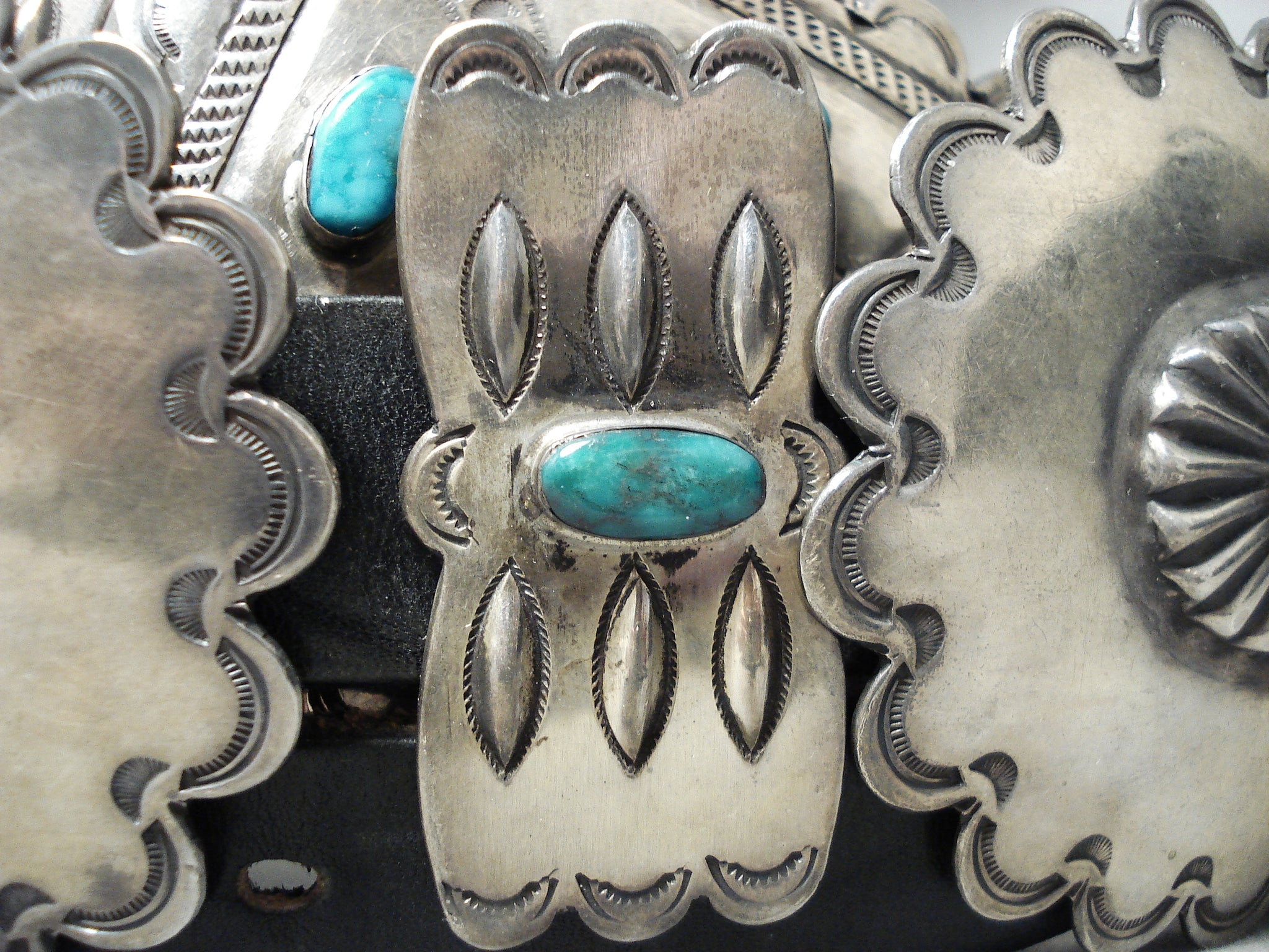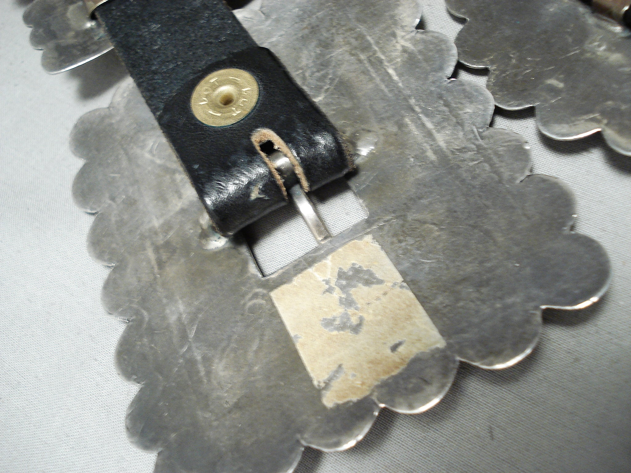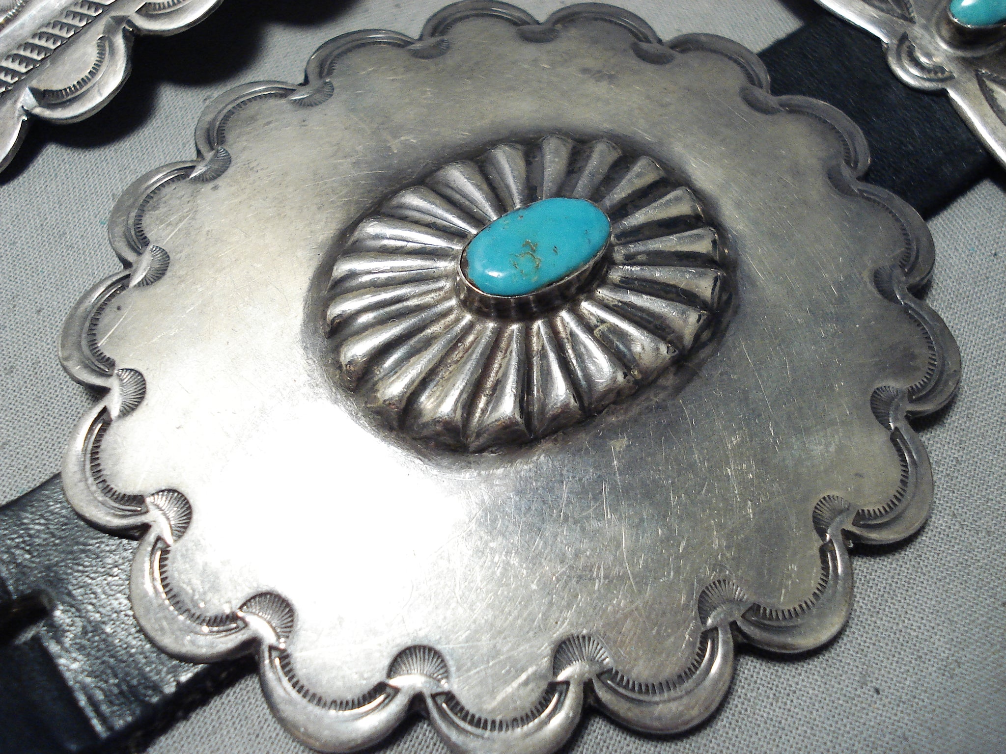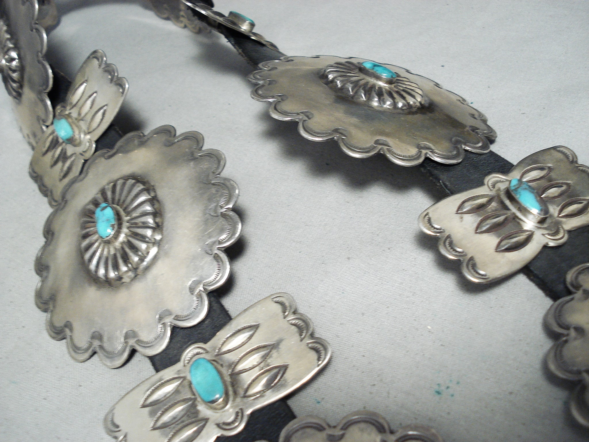 Heavy 600 Gram Vintage Native American Navajo Turquoise Sterling Silver Concho Belt Old