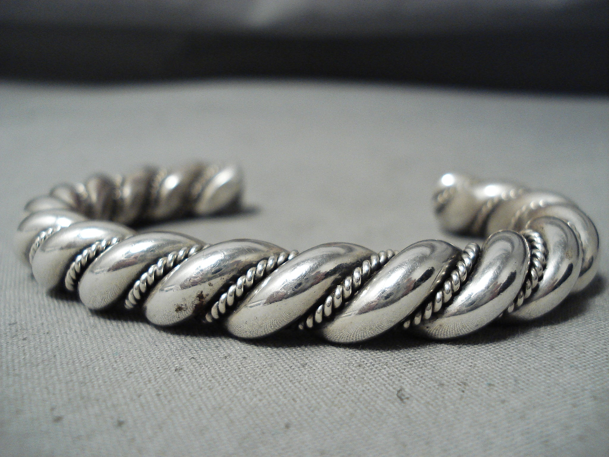 Heavy 87 Gram Vintage Native American Navajo Coiled Sterling Silver Bracelet Old