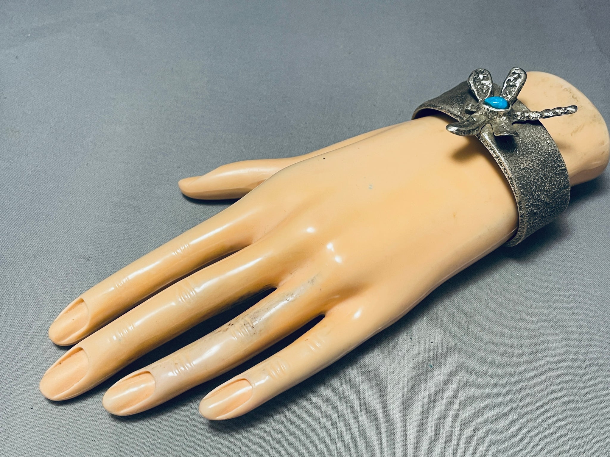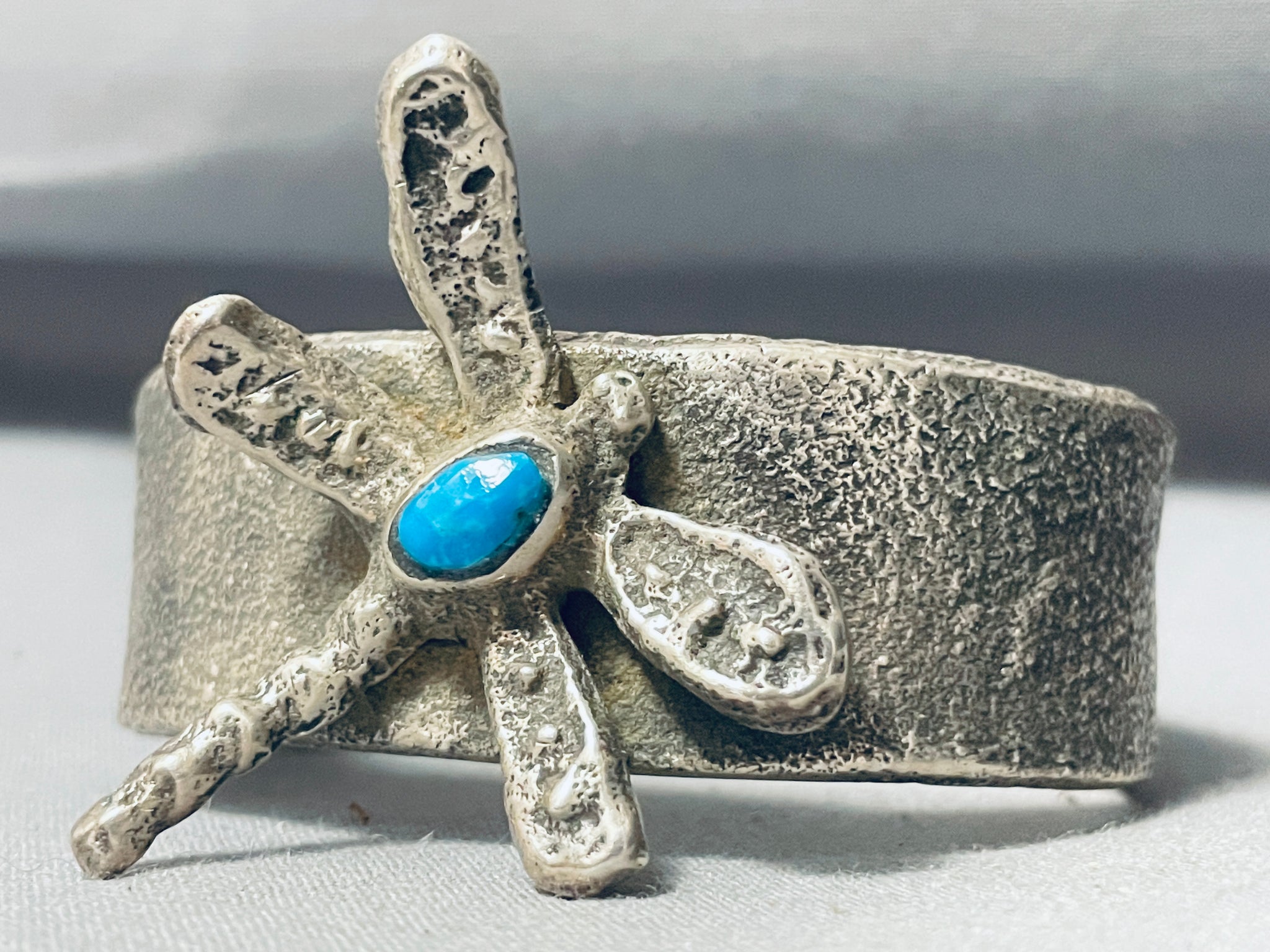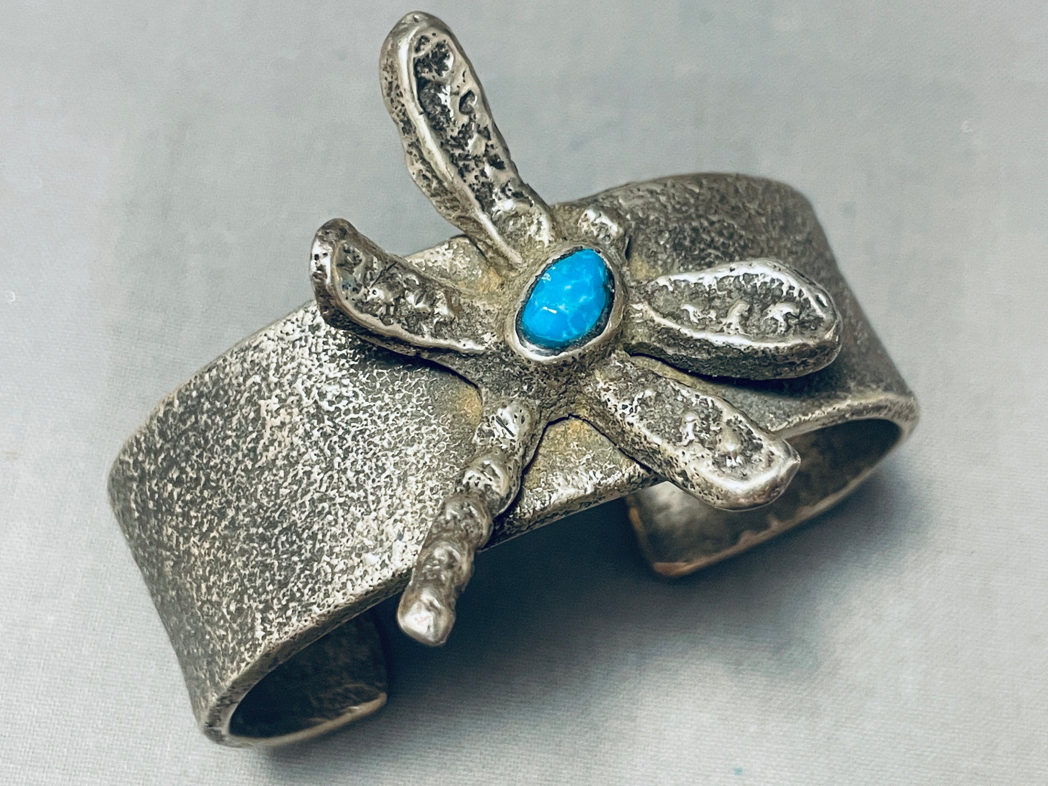 Heavy 87 Gram Vintage Native American Navajo Turquoise Sterling Silver Dragonfly Bracelet