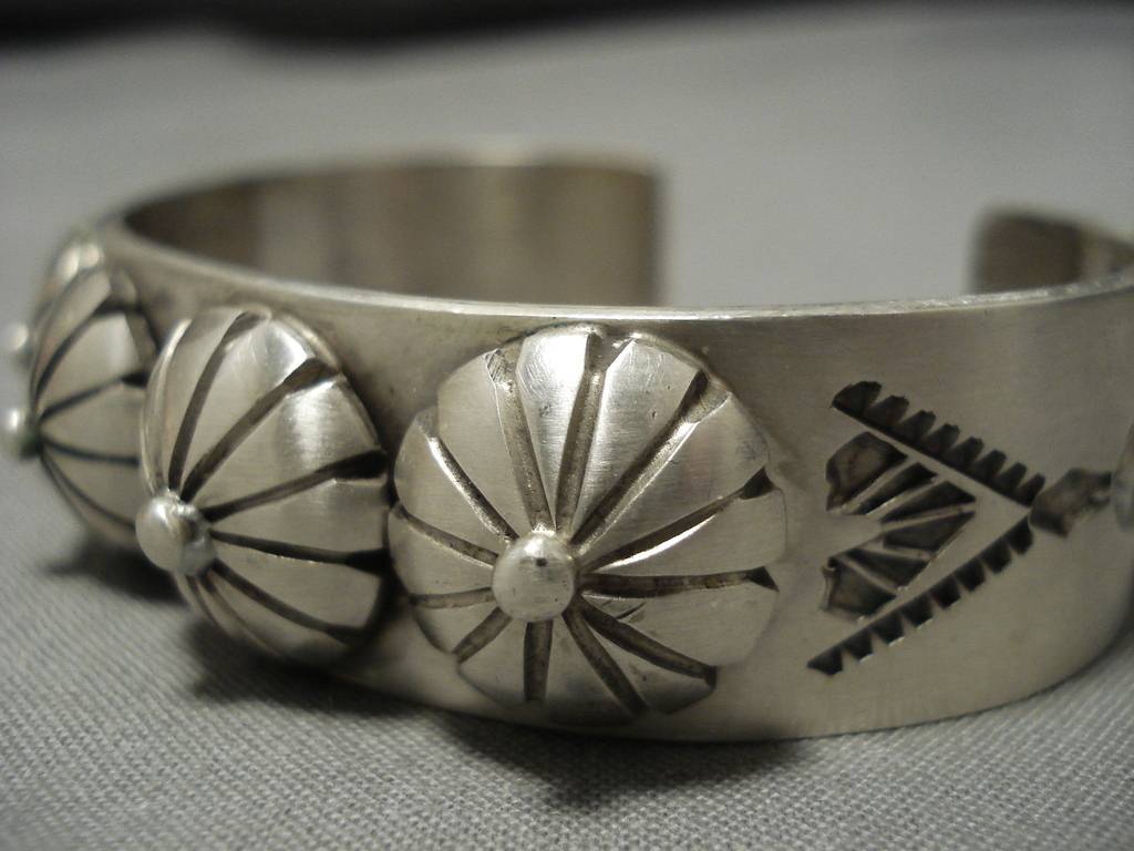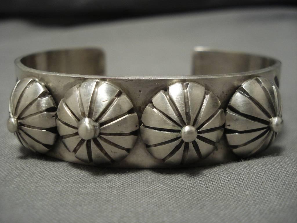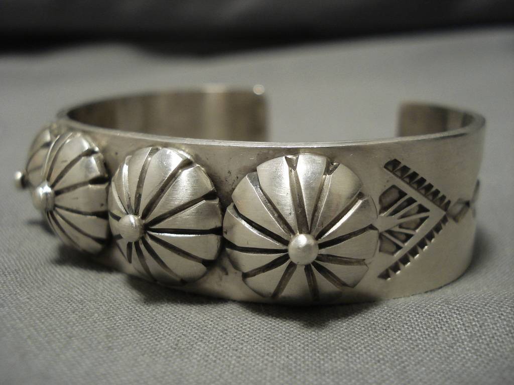 Heavy And Thick!! Native American Navajo Repoussed Button Sterling Silver Bracelet