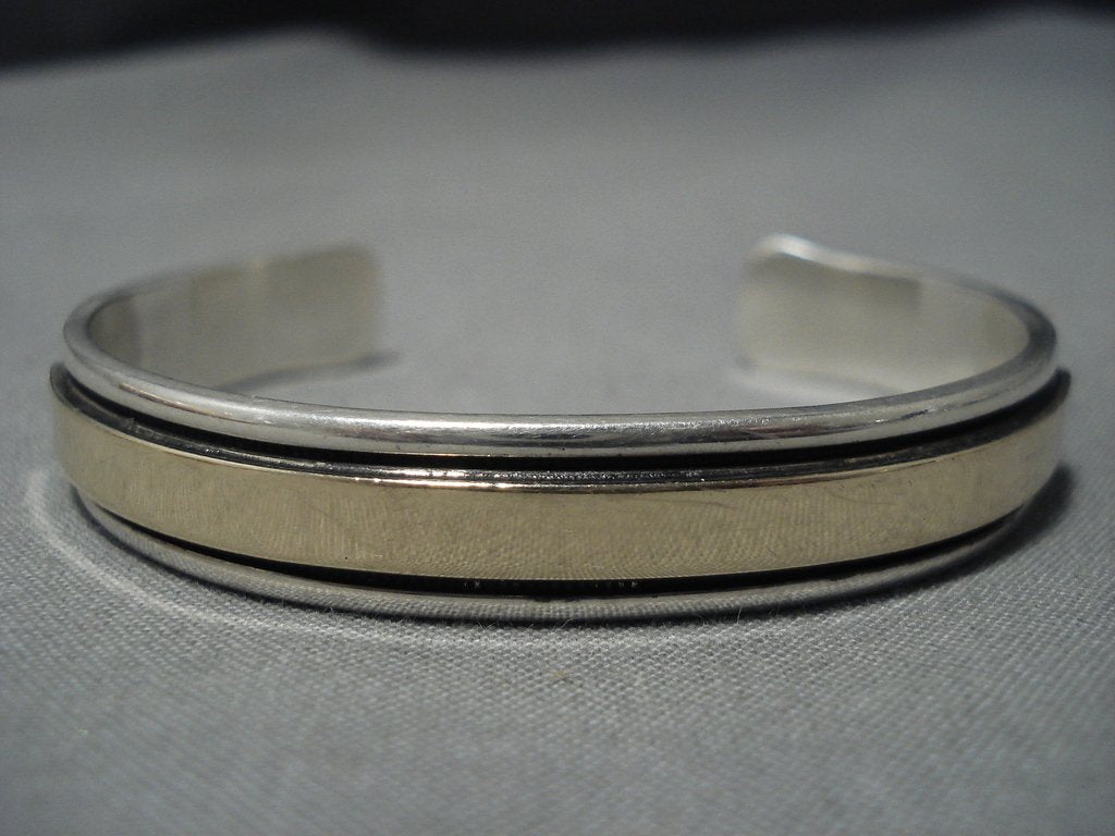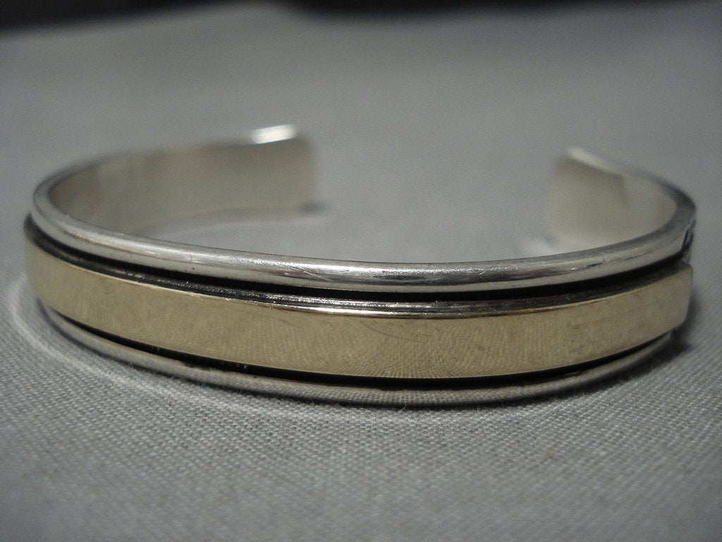 Heavy And Thick!! Real 14k Gold Sterling Silver Native American Navajo Cuff Bracelet Old