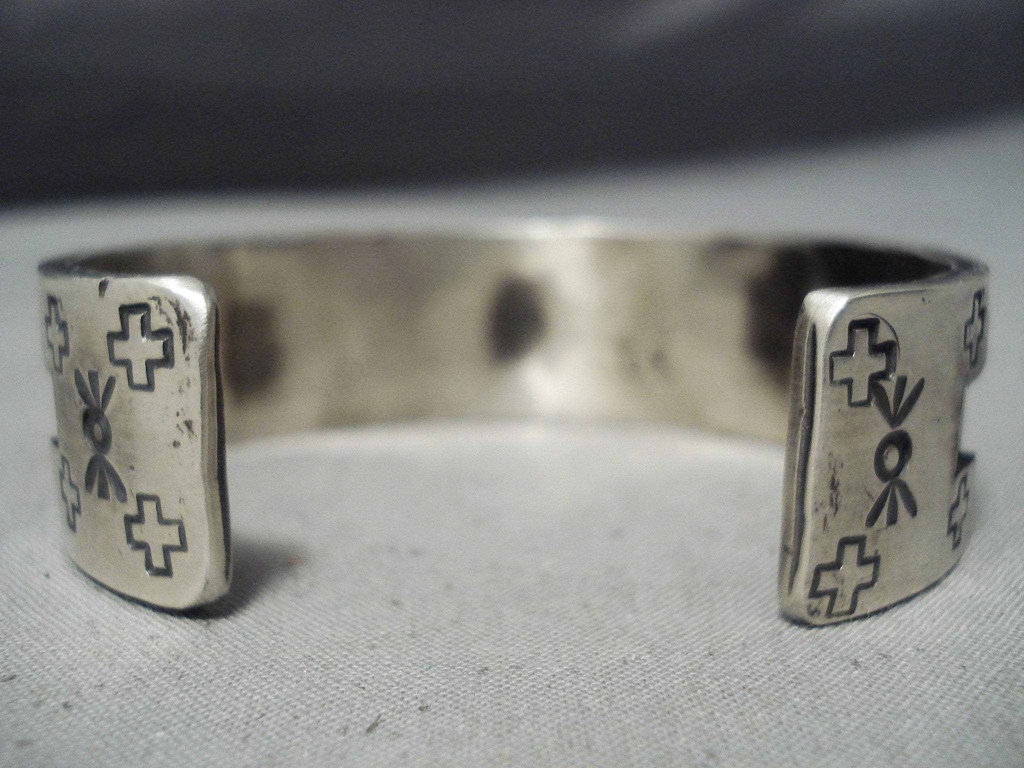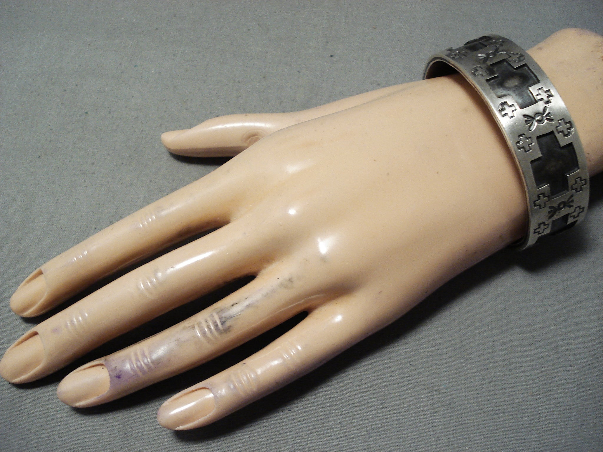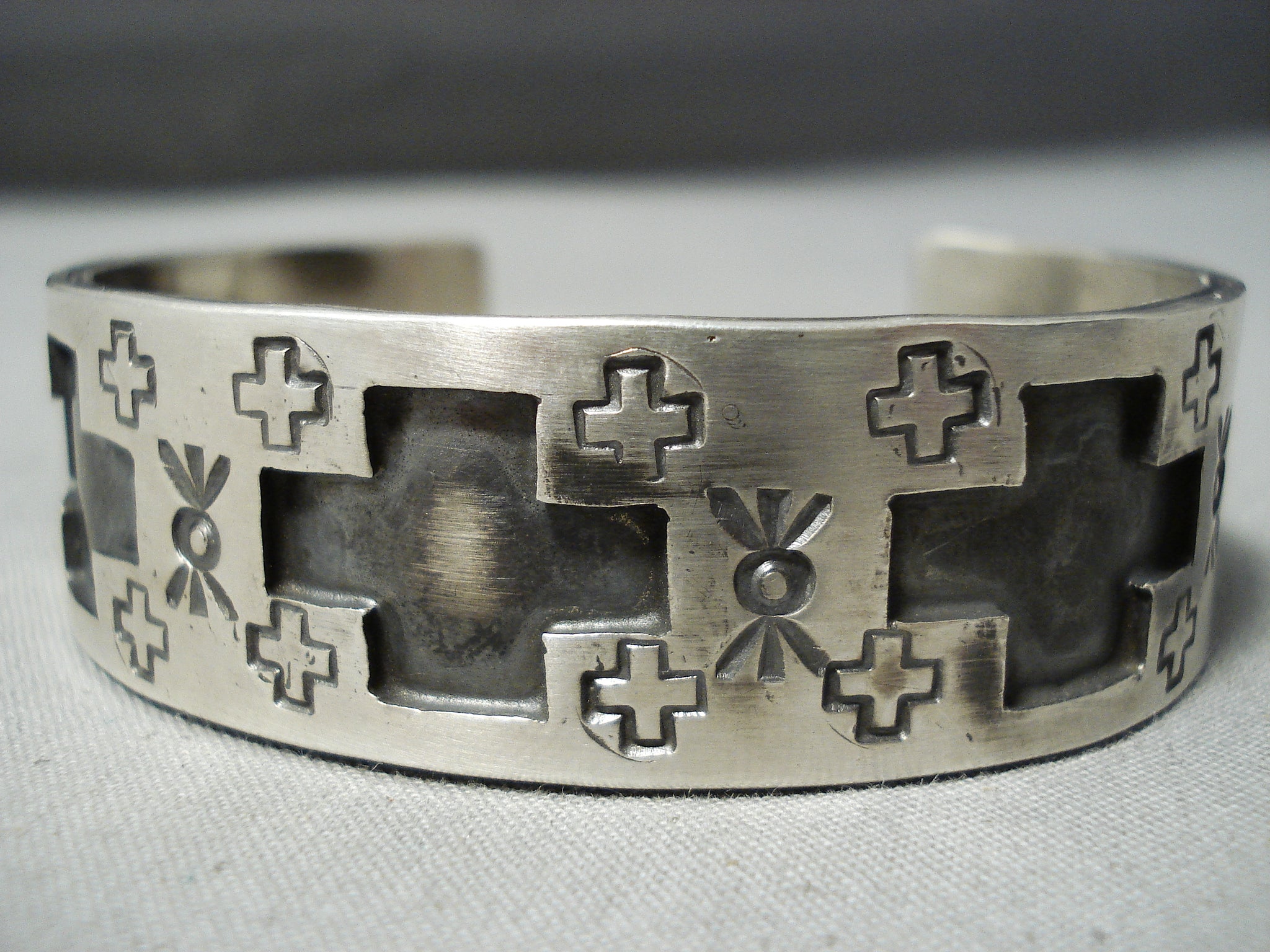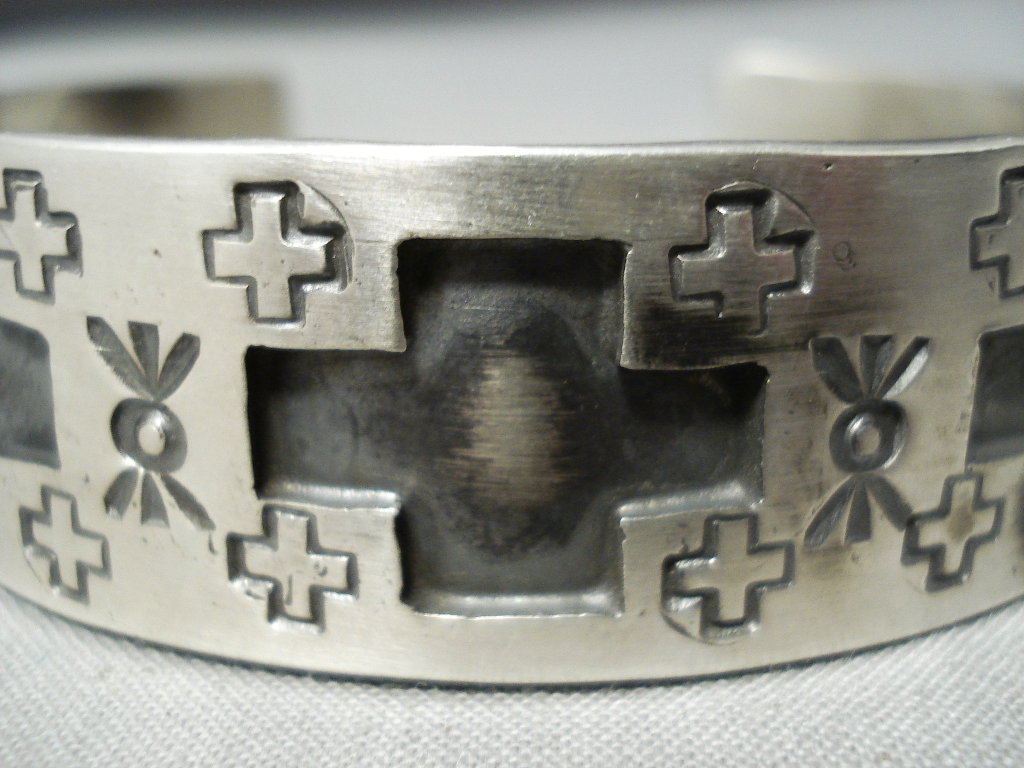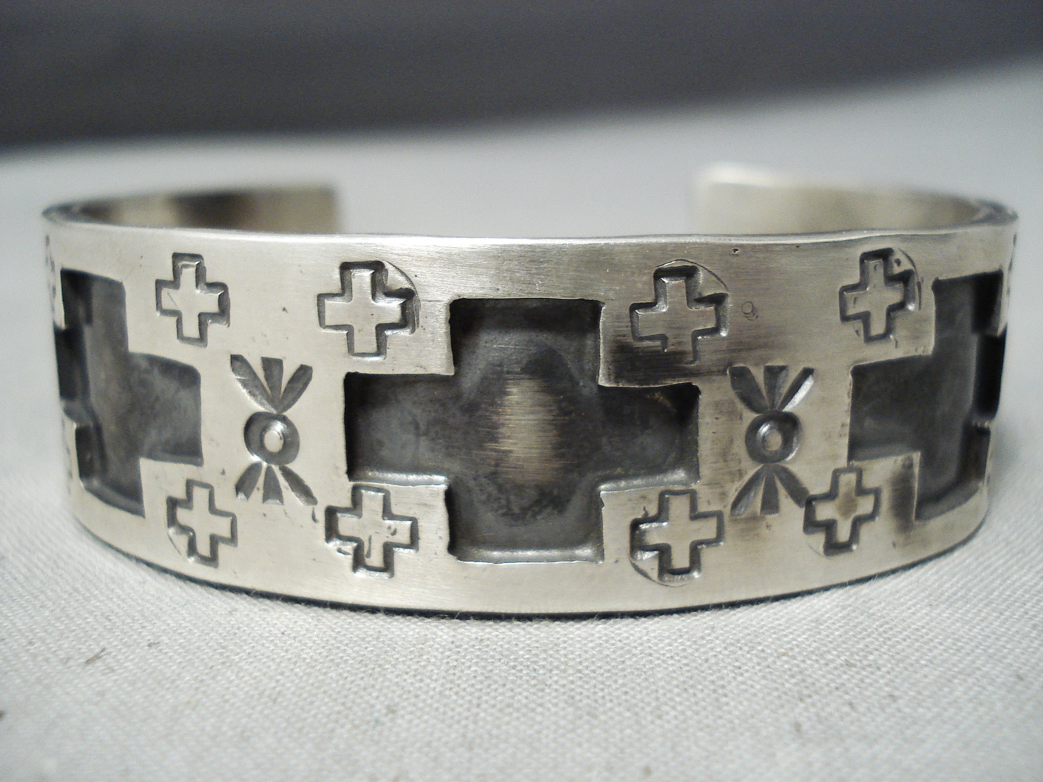 Heavy Ange Chavez Native American Sterling Silver Cross Bracelet Cuff