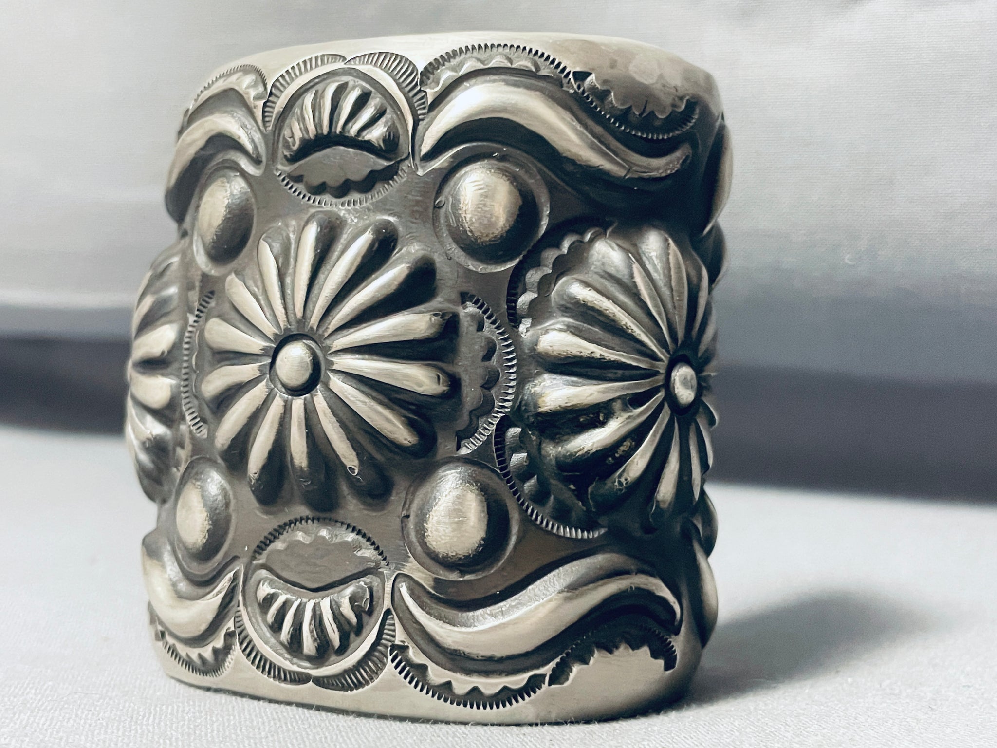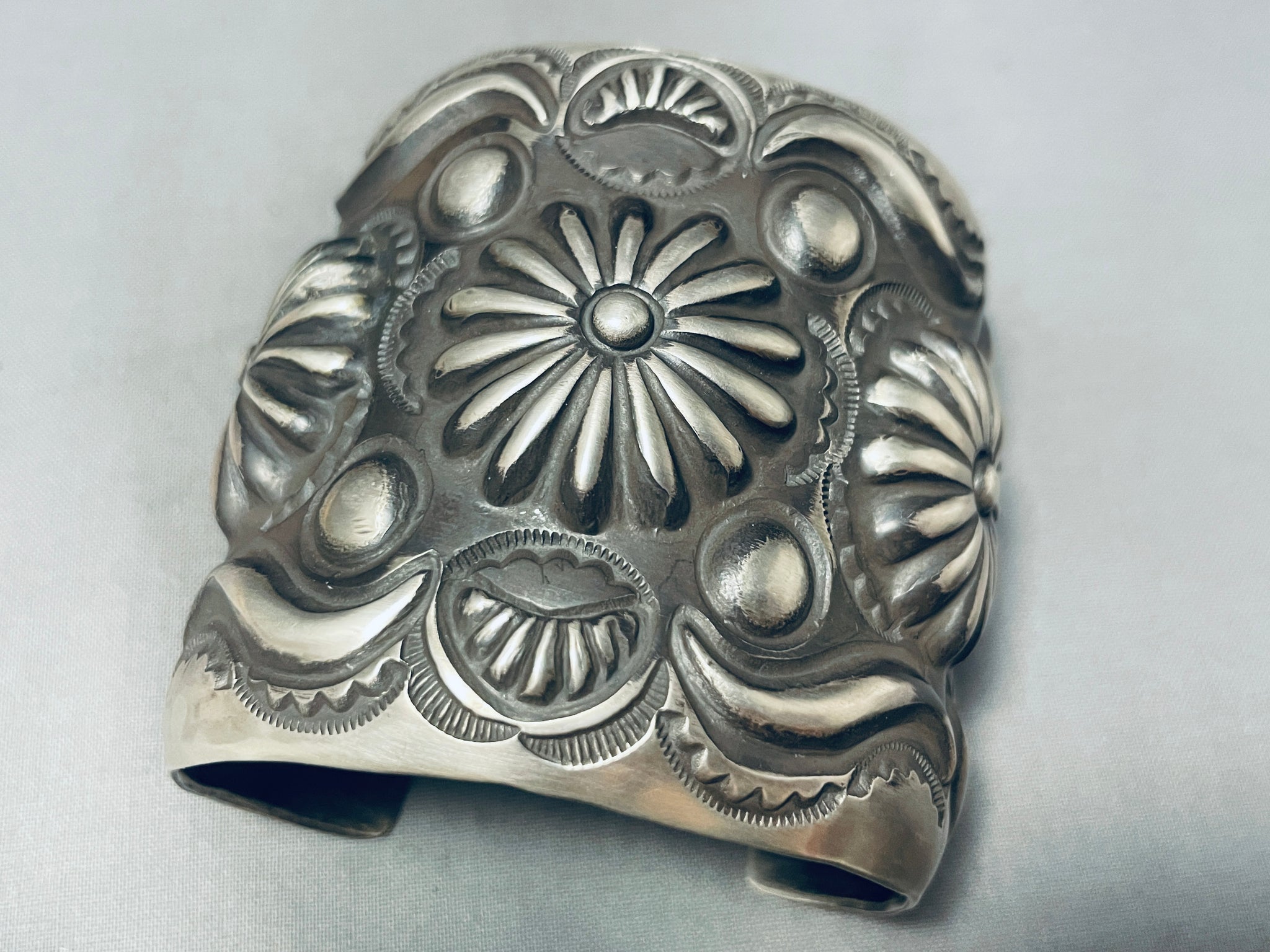 Heavy Best Vintage Native American Navajo Concho Sterling Silver 118 Gram Bracelet