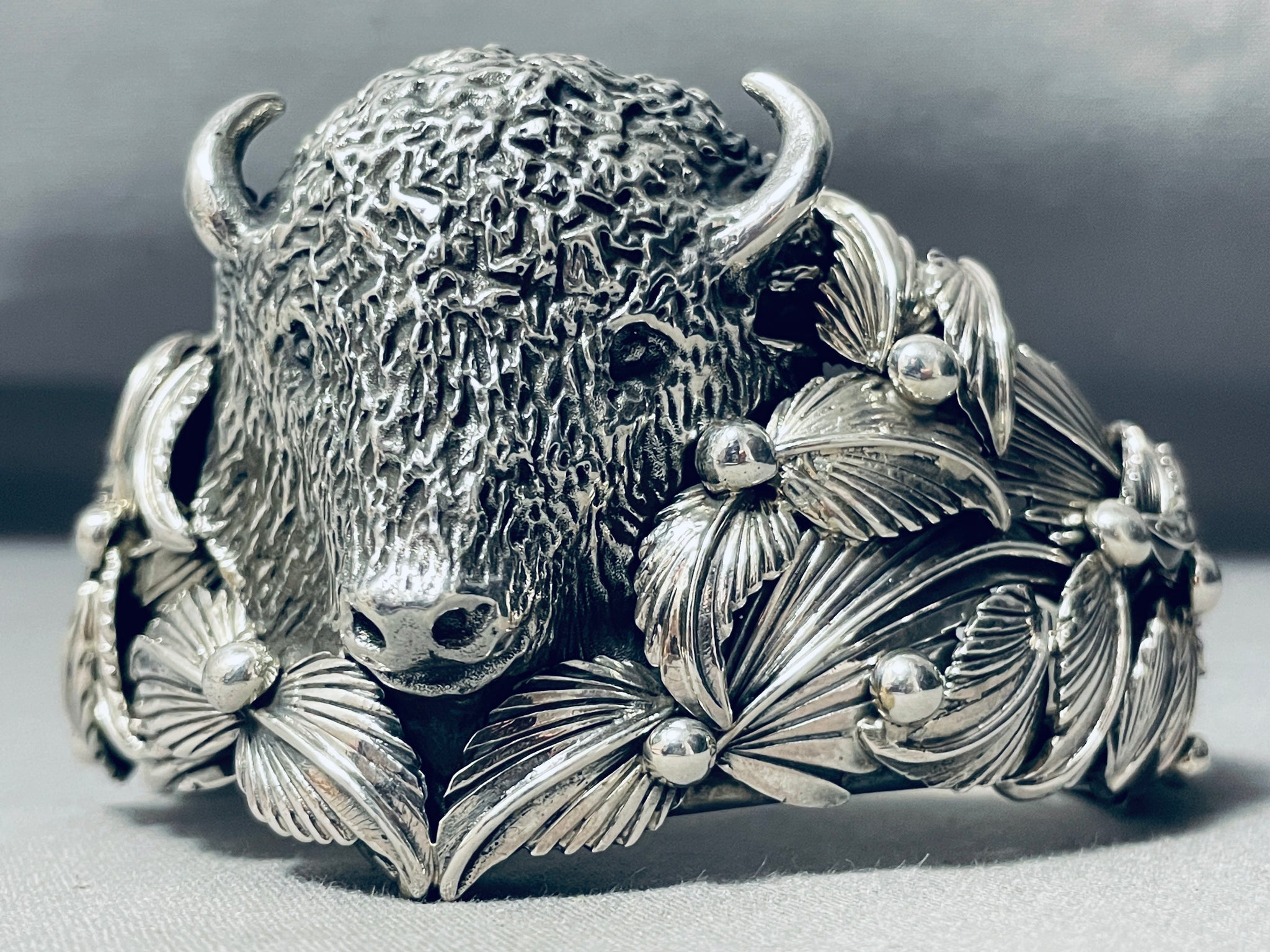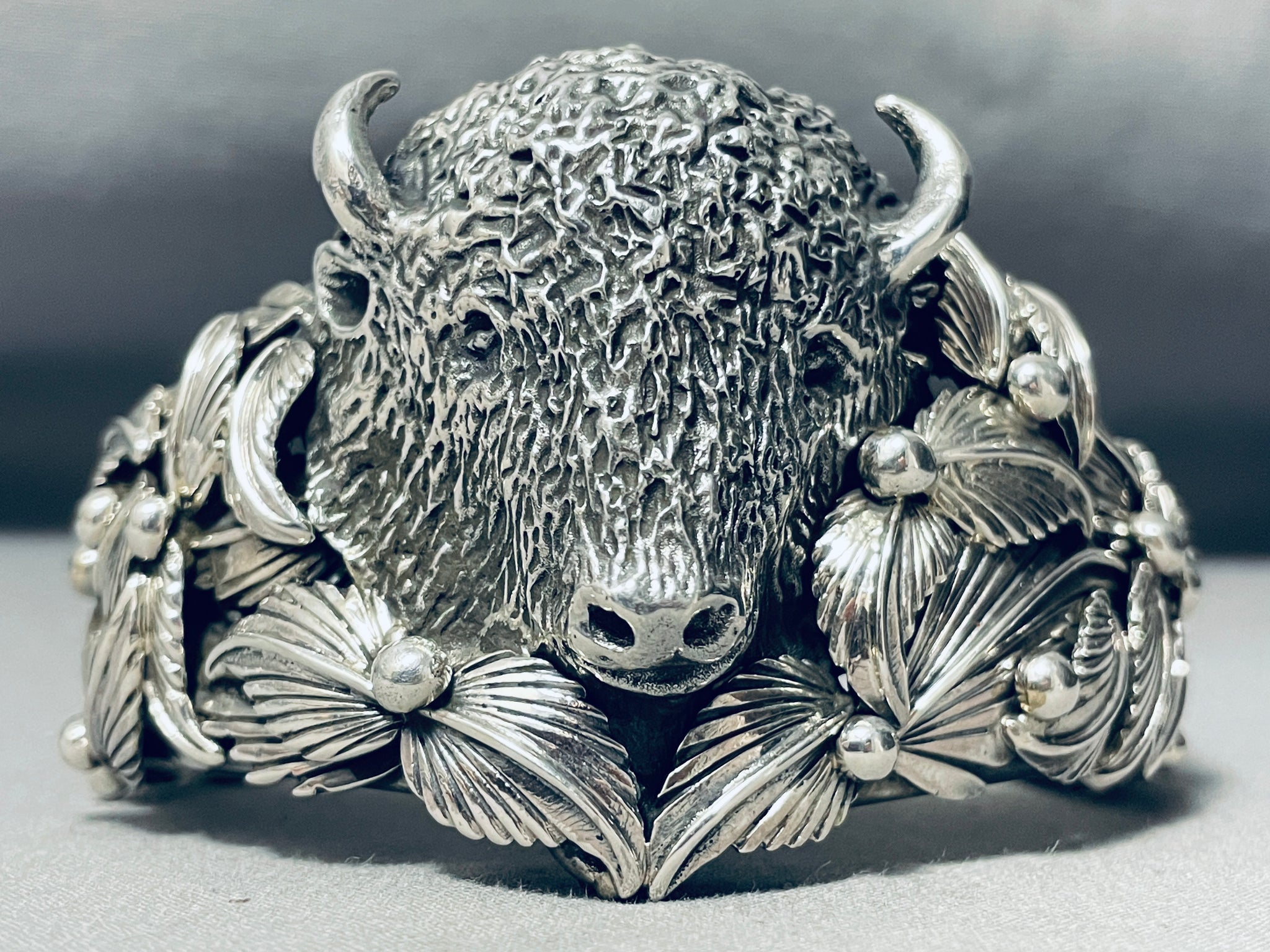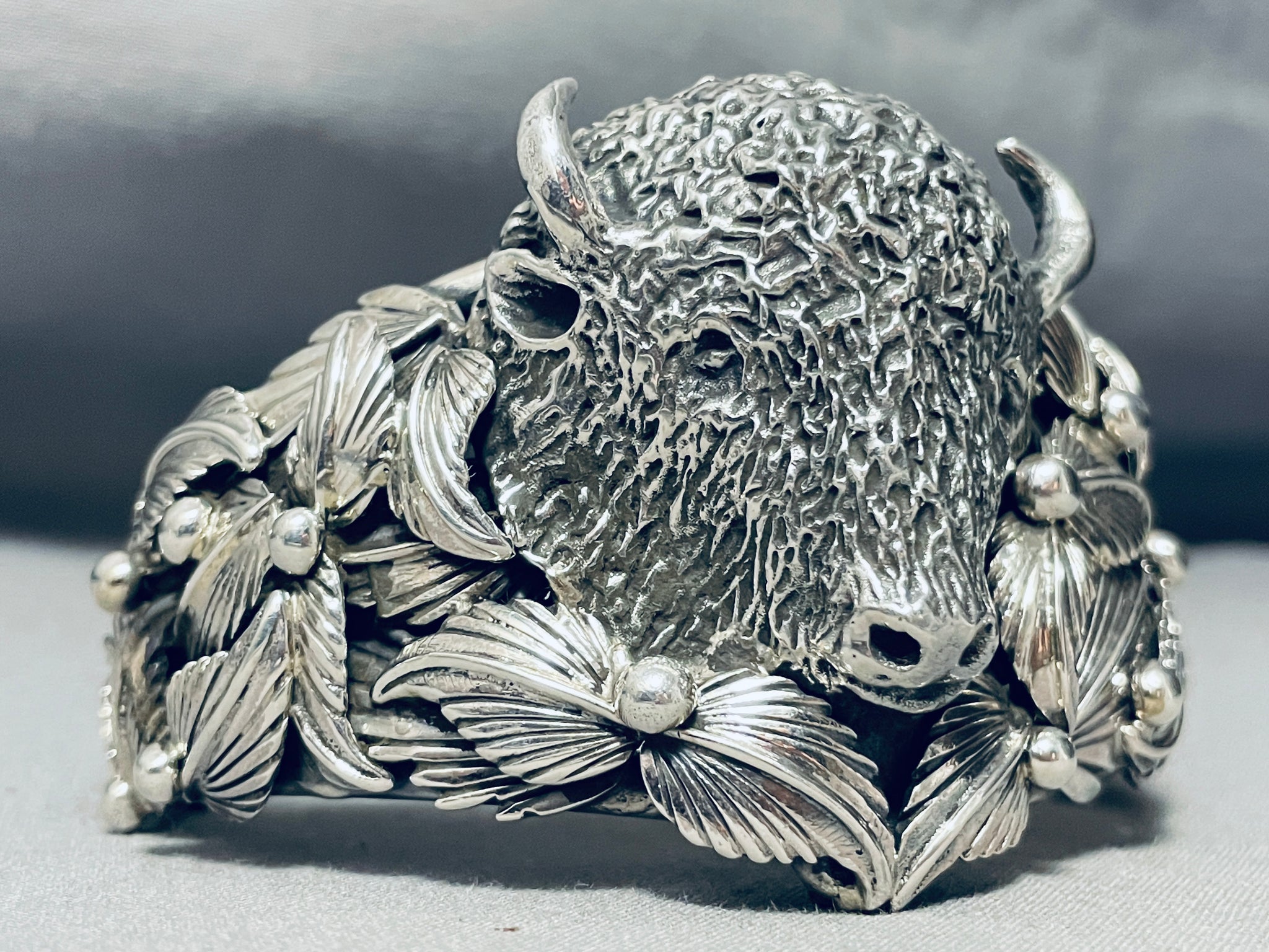 Heavy Buffalo Native American Sterling Silver Bracelet Cuff