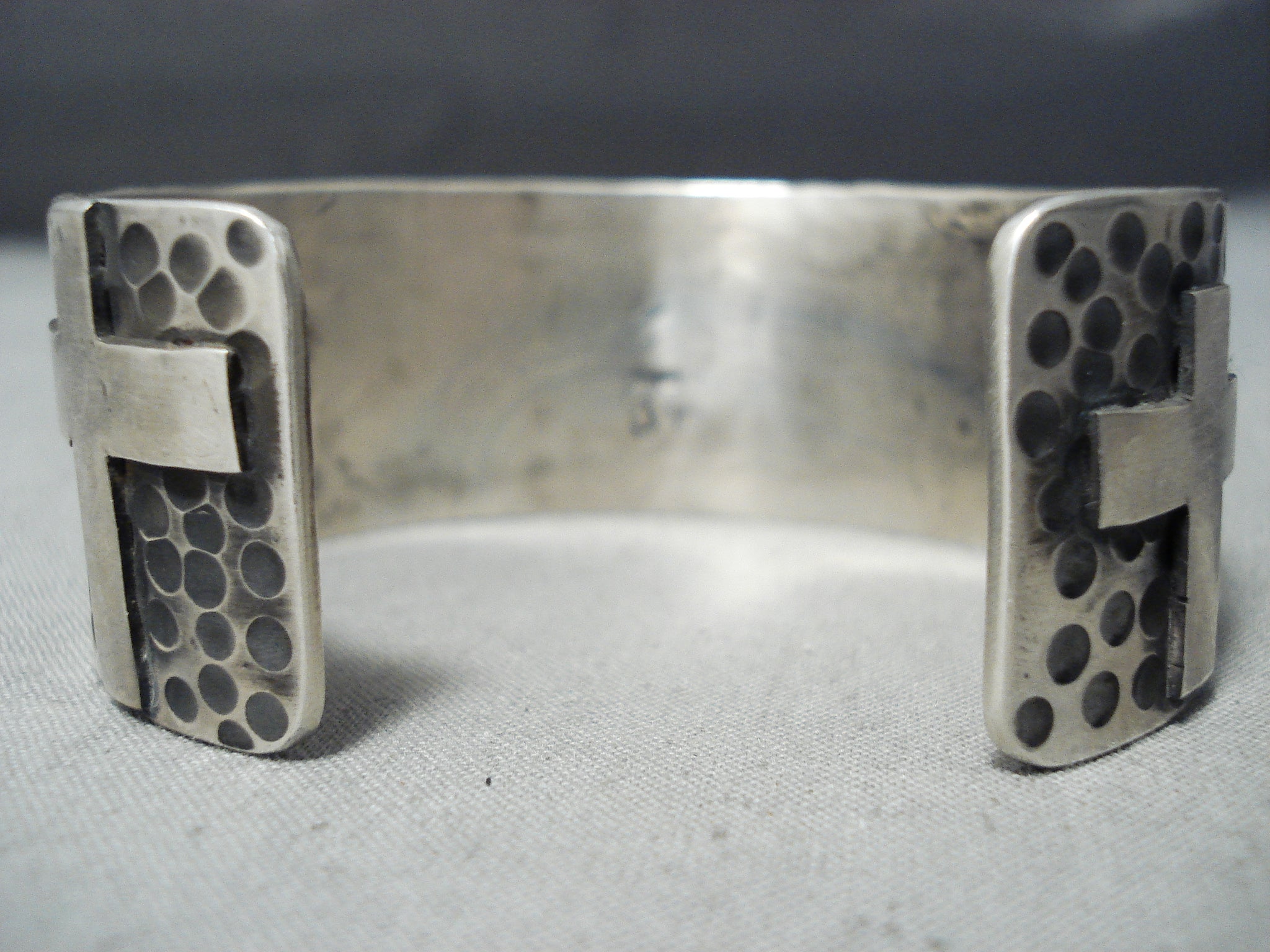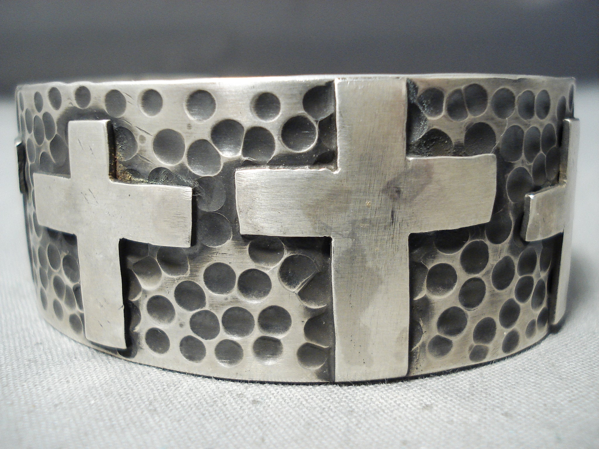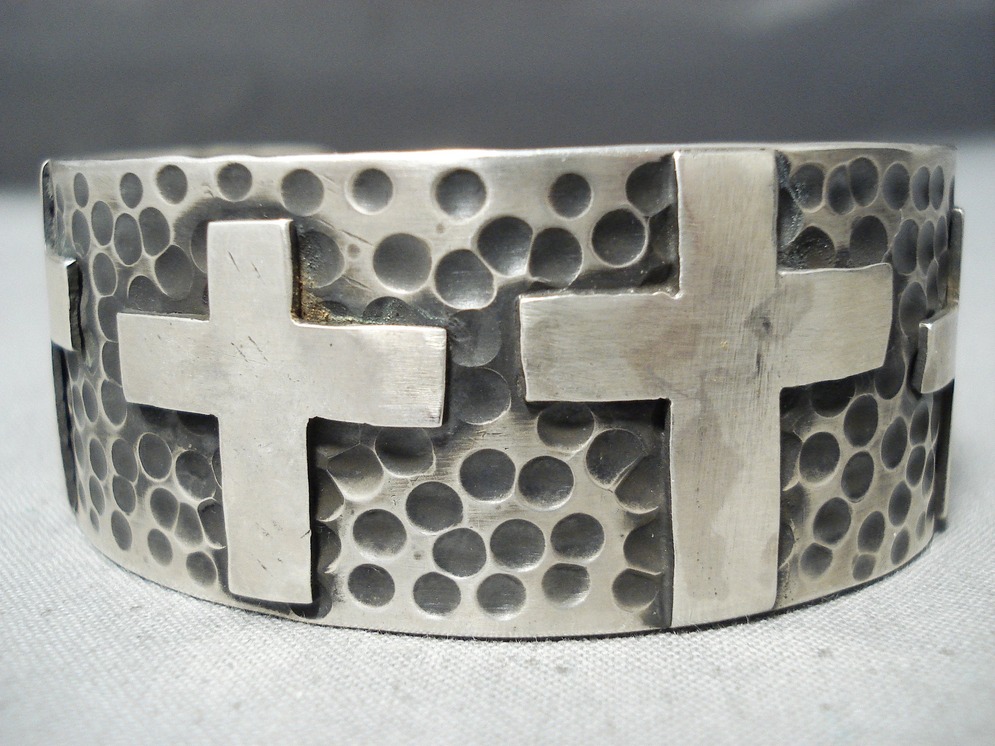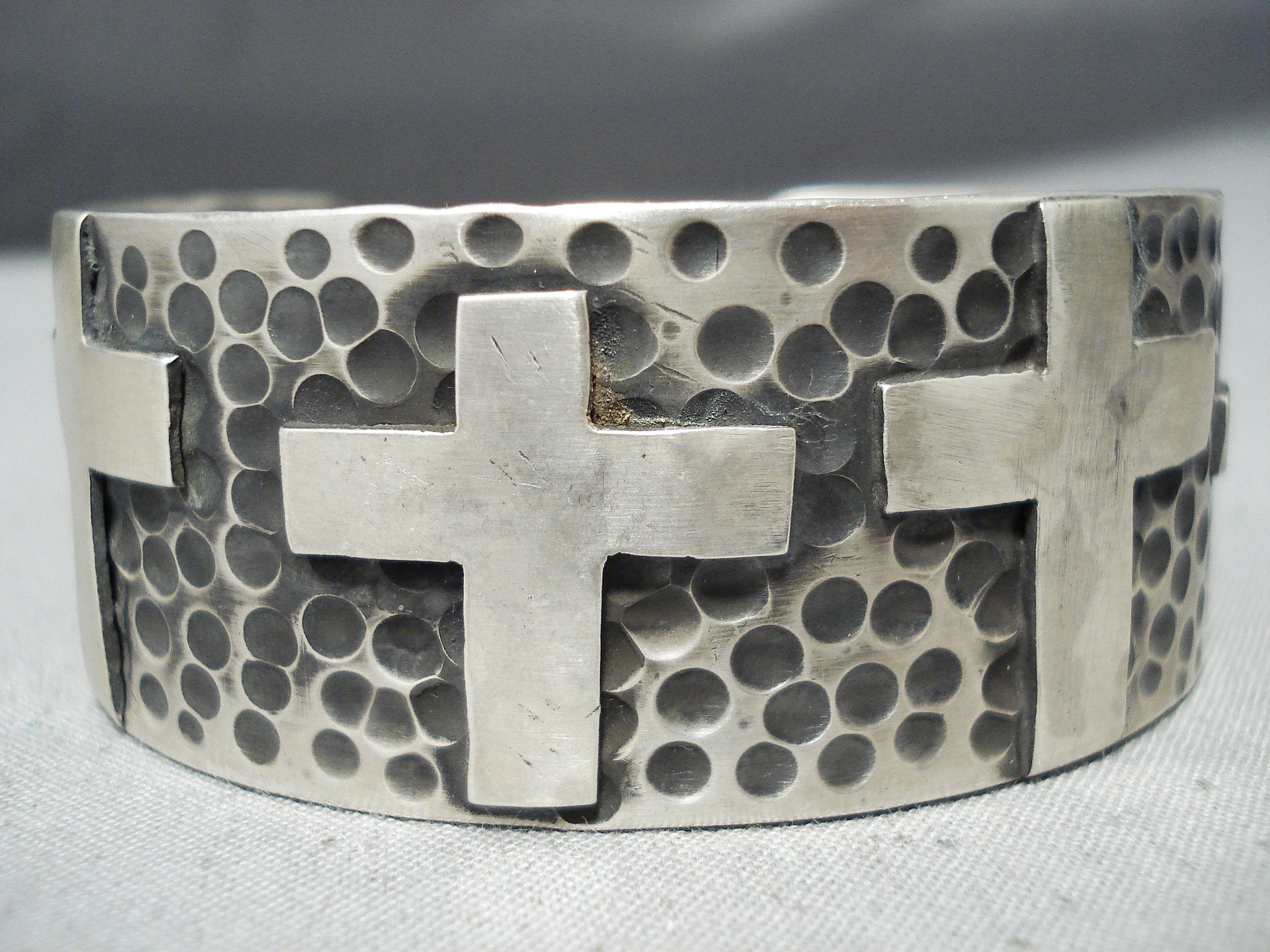 Heavy Christian Cross Native American Zuni Sterling Silver Bracelet