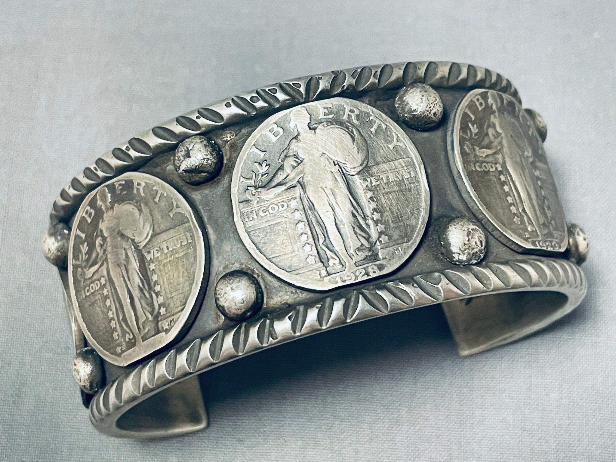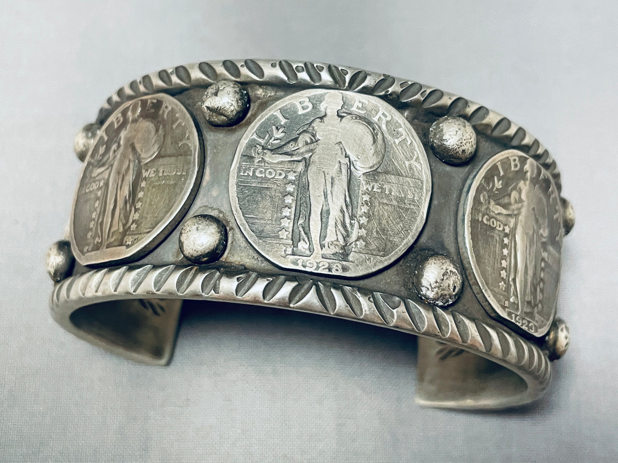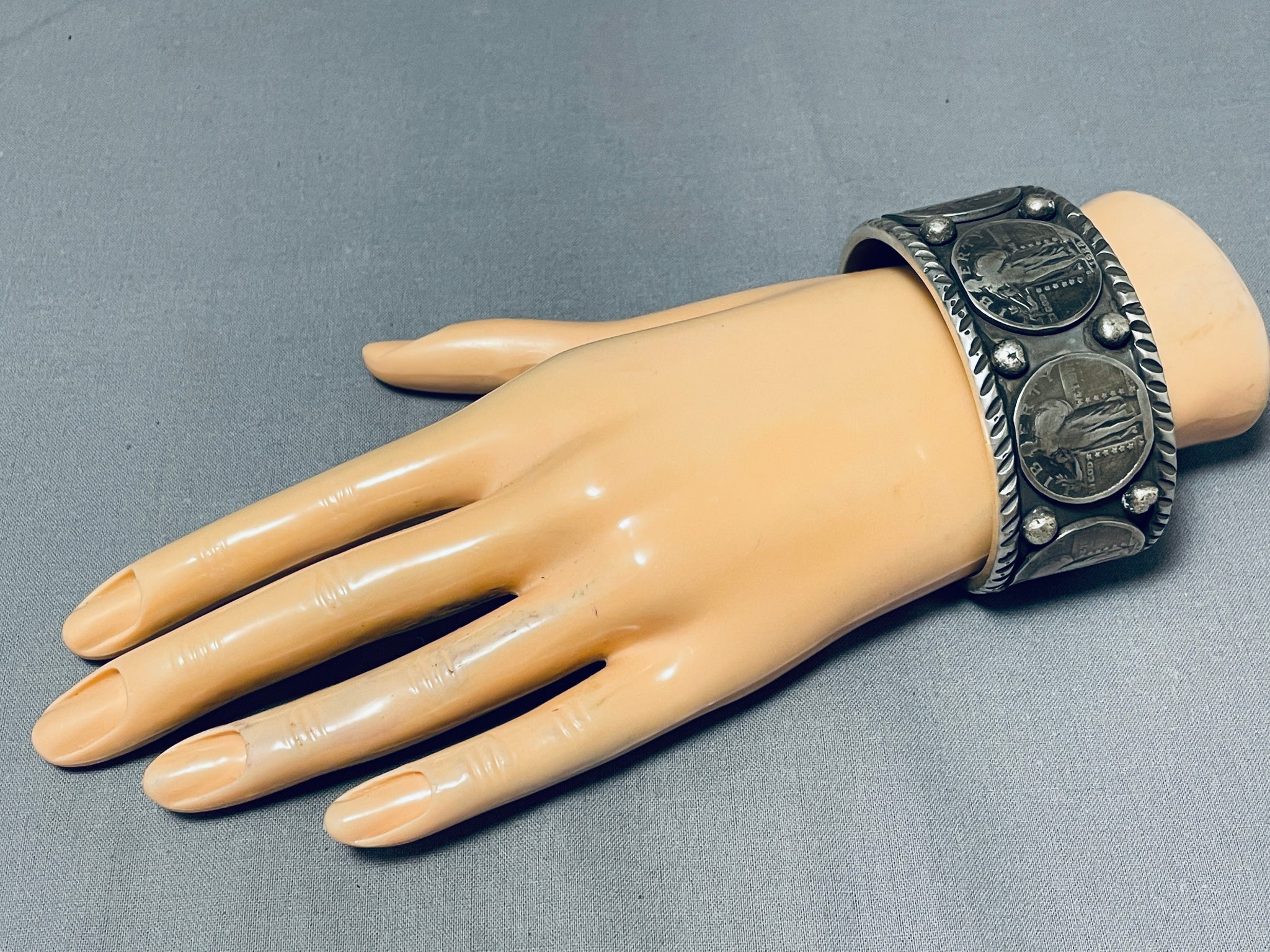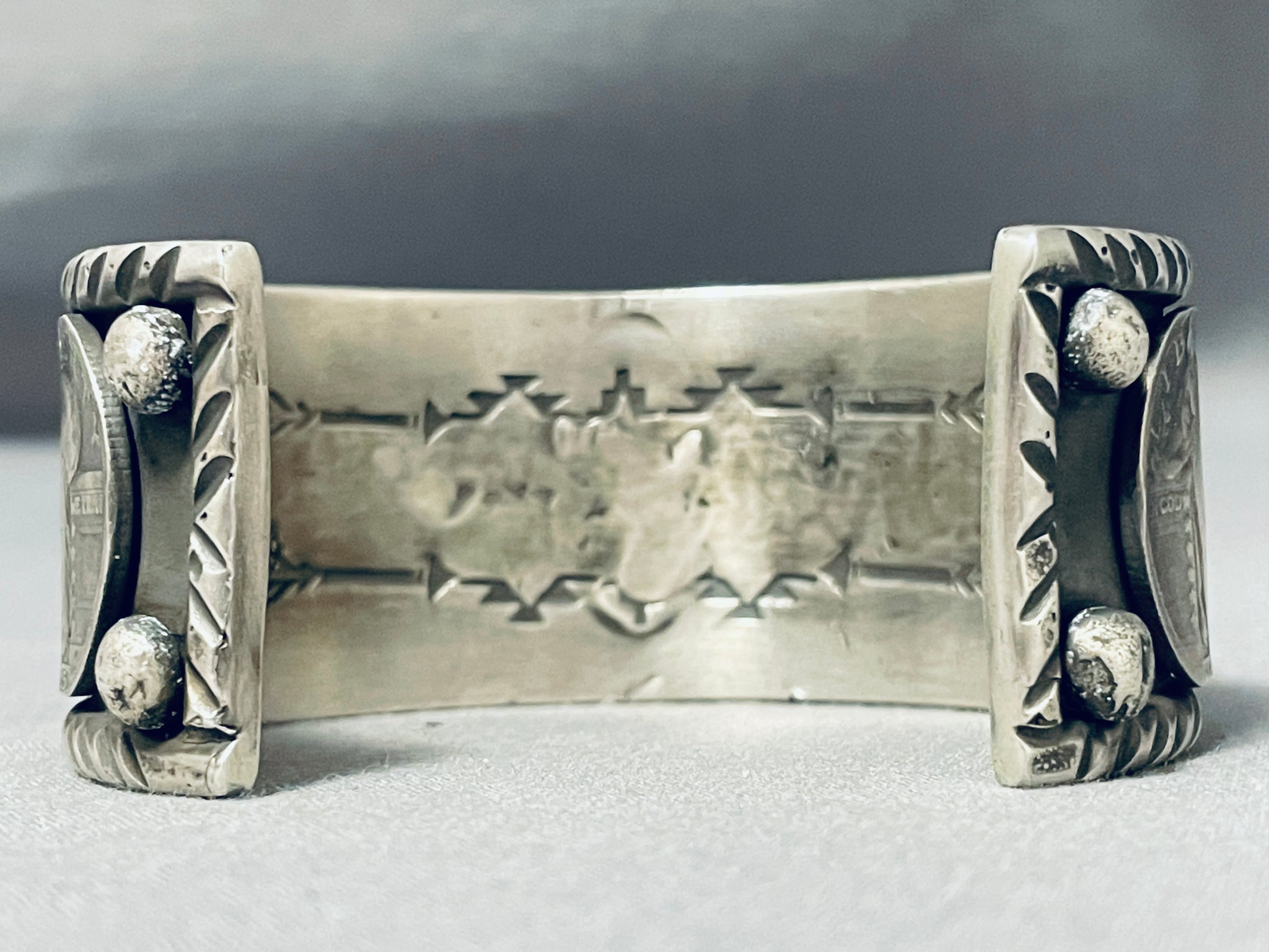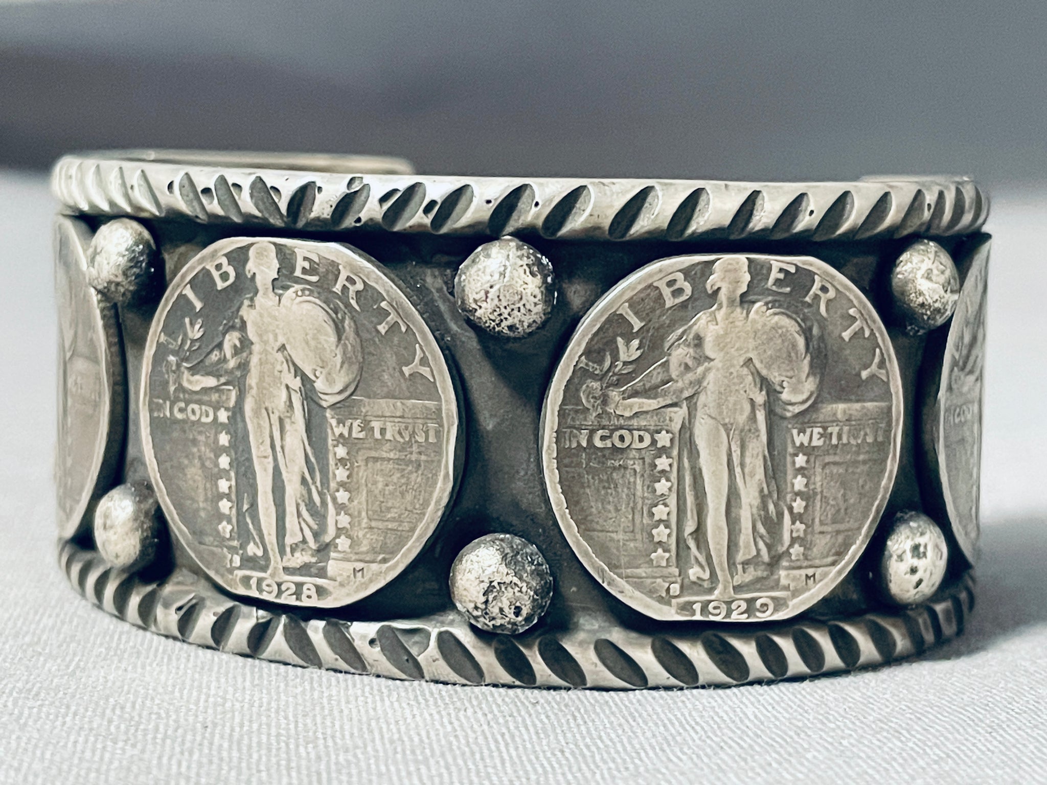 Heavy Coin Native American Sterling Silver Bracelet Cuff