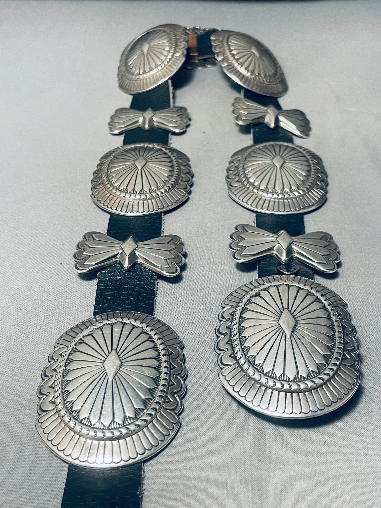 Heavy Detailed 310 Grams Vintage Native American Navajo Sterling Silver Concho Belt
