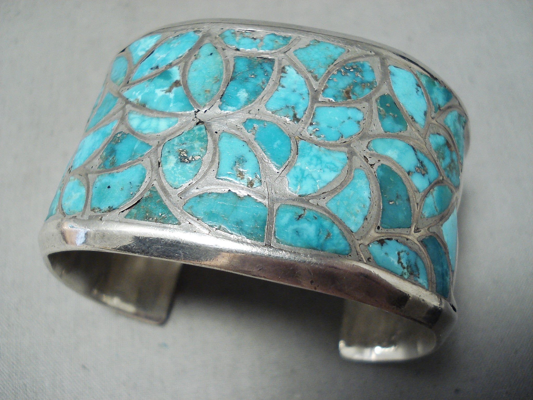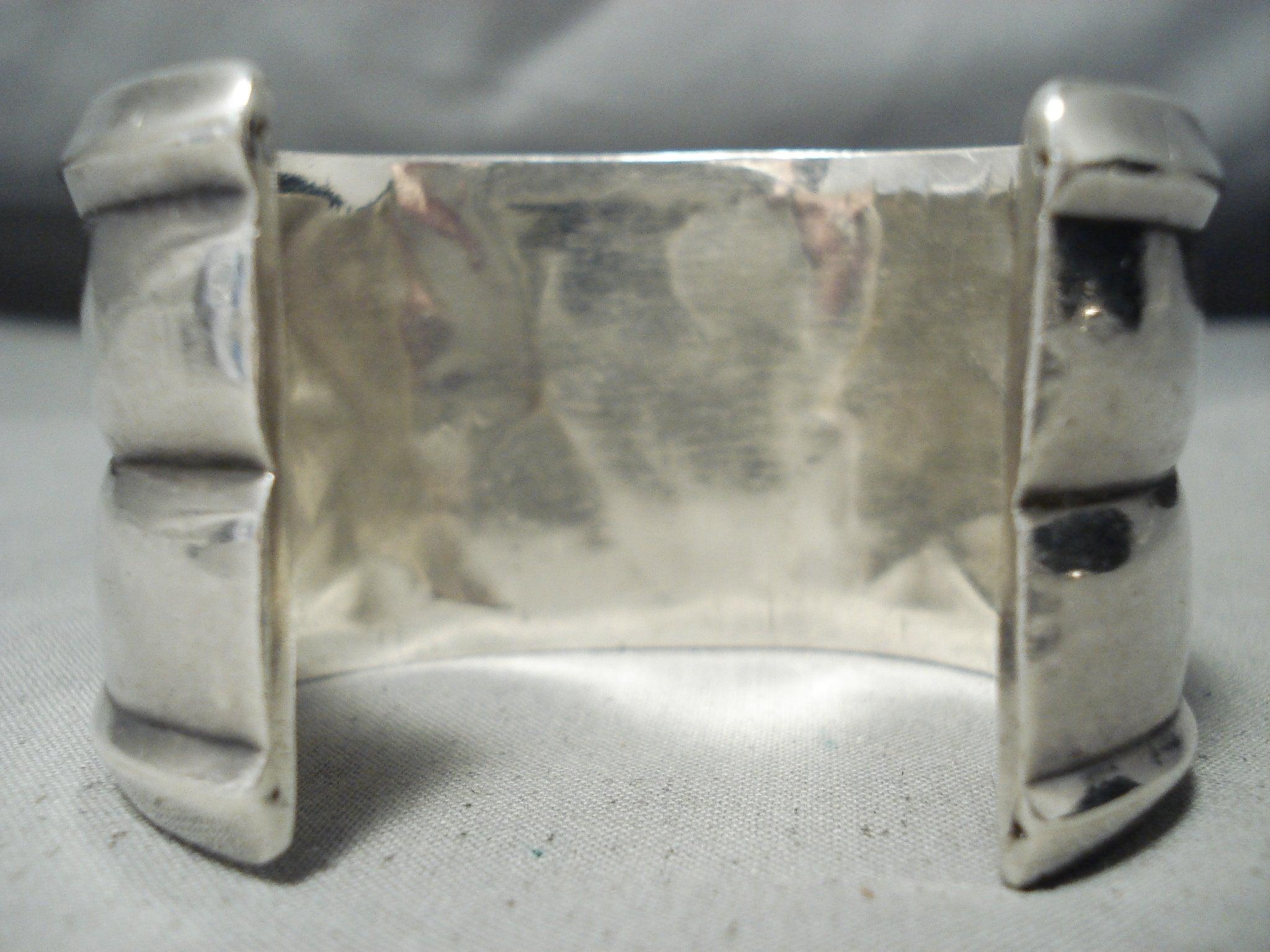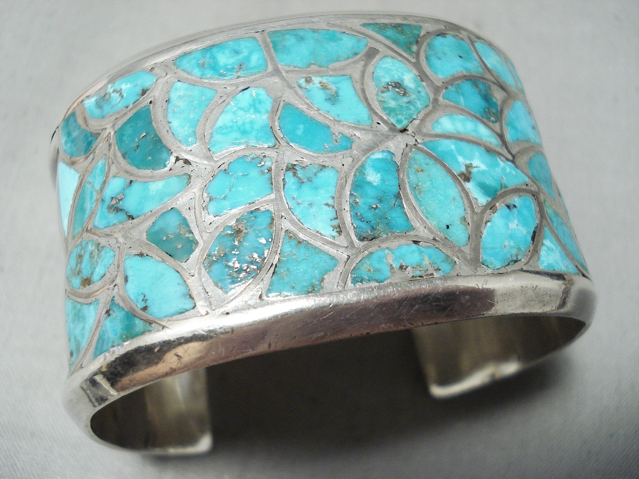 Heavy Detailoed Vintage Native American Zuni Turquoise Sterling Silver Bracelet Old