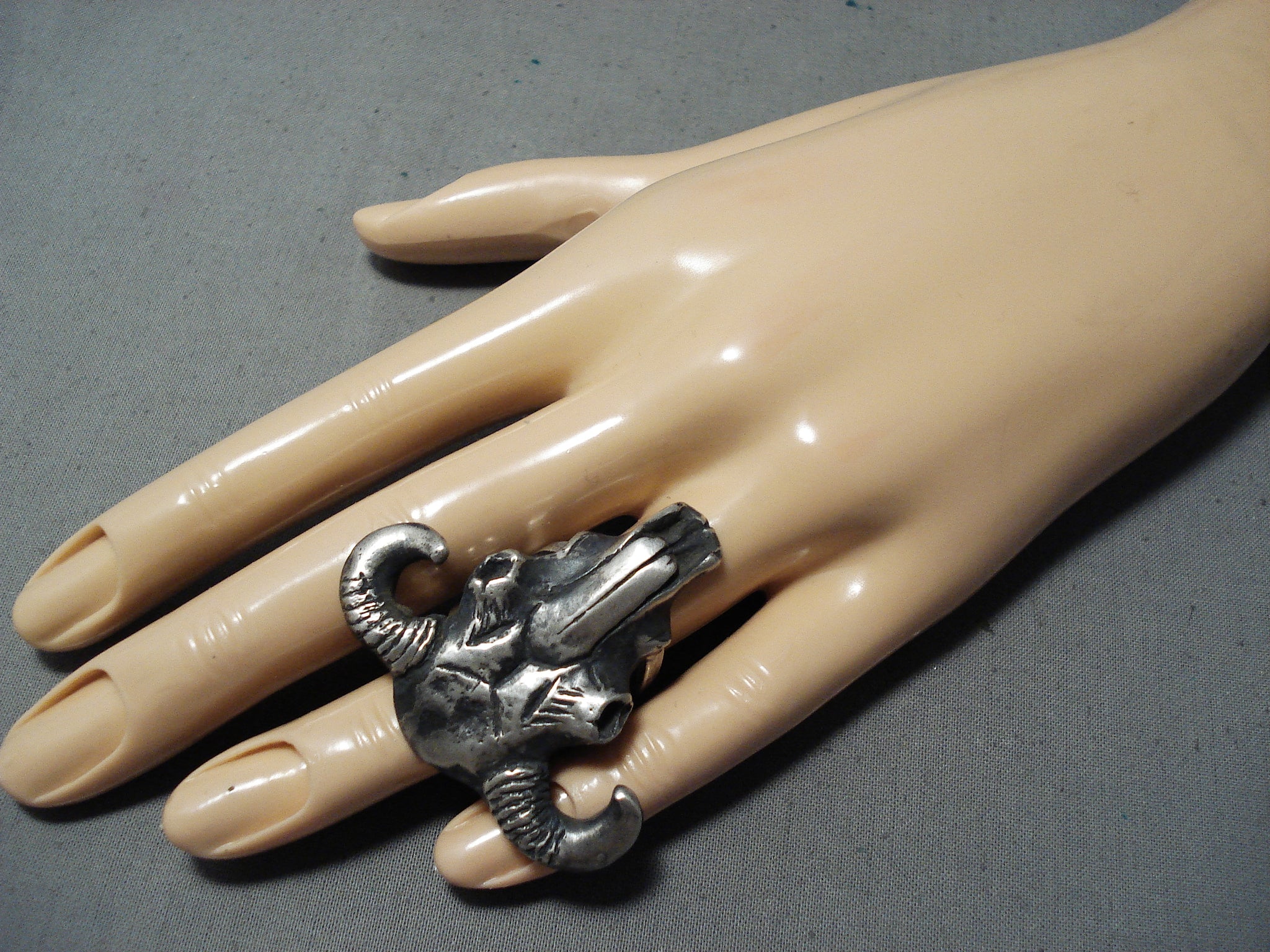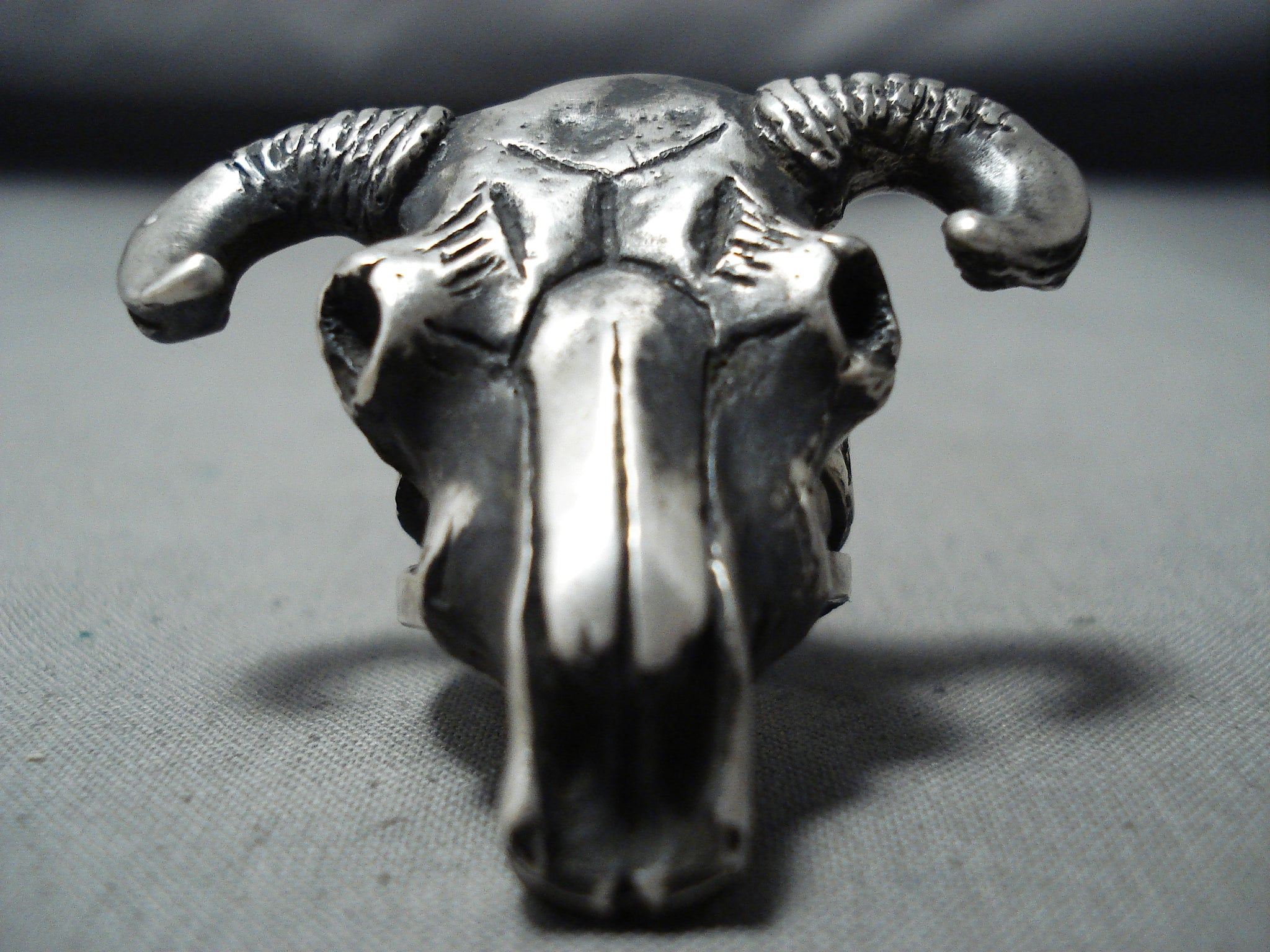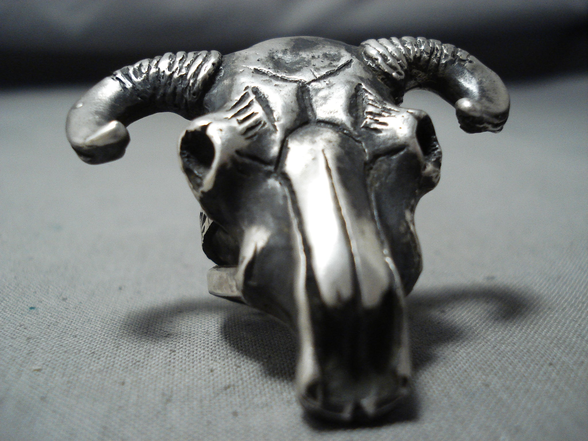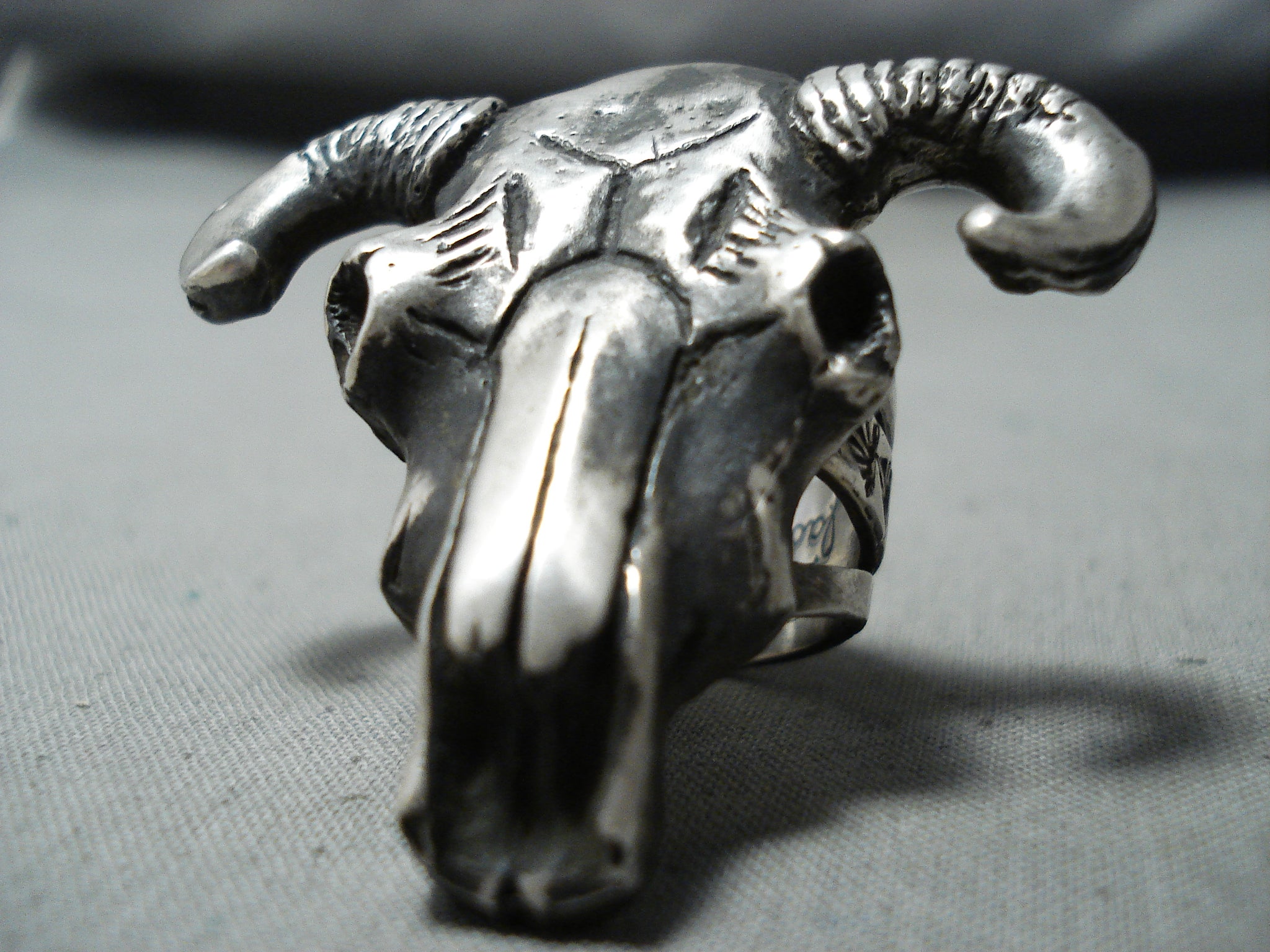 Heavy Fascinating San Felipe Sterling Silver Skull Ring