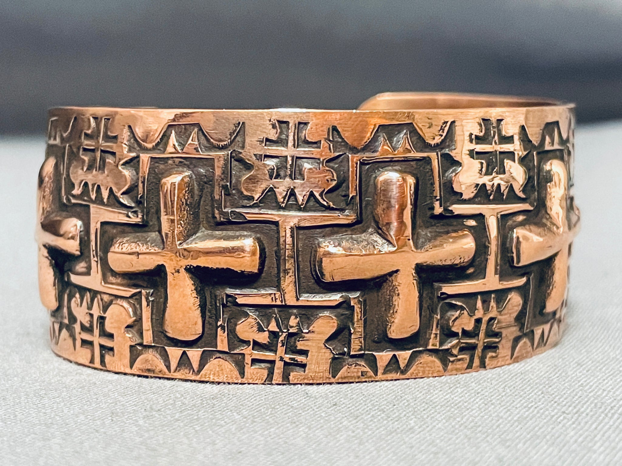 Heavy Hand Detailed Native American Navajo Copper Wide Heavy Bracelet