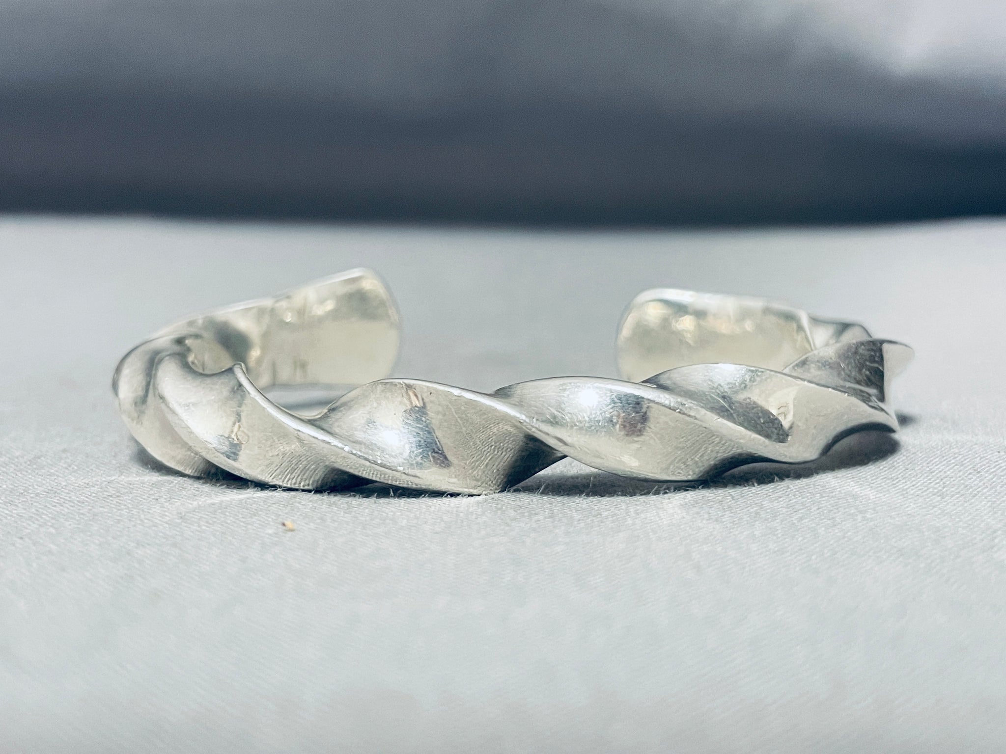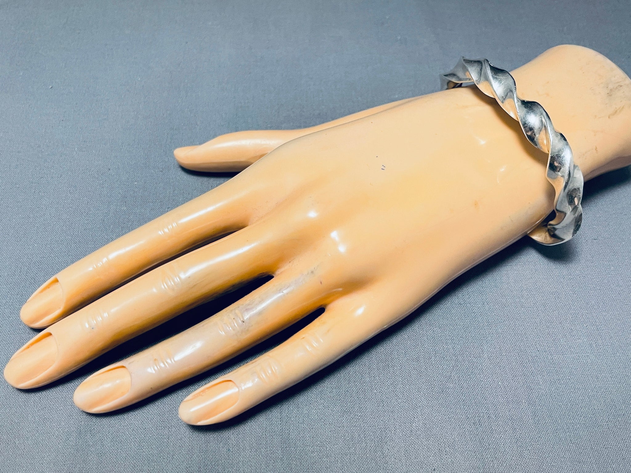 Heavy Hand Twisted Native American Navajo Wired Sterling Silver Bracelet Cuff