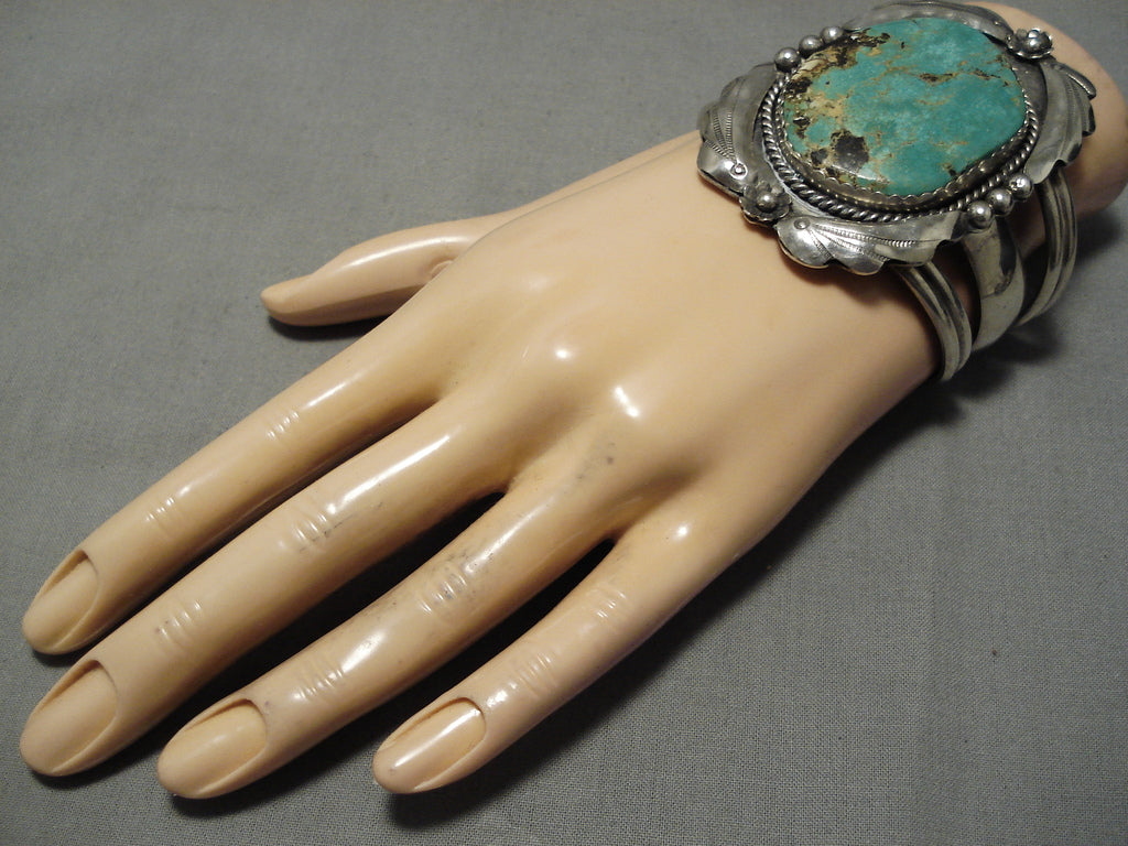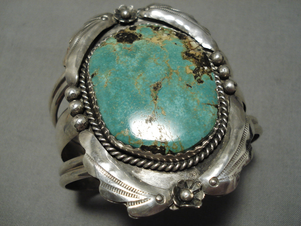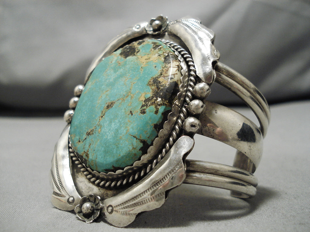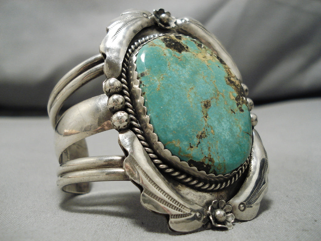 Heavy Heavy!! Native American Navajo Royston Turquoise 100 Grams Sterling Silver Bracelet