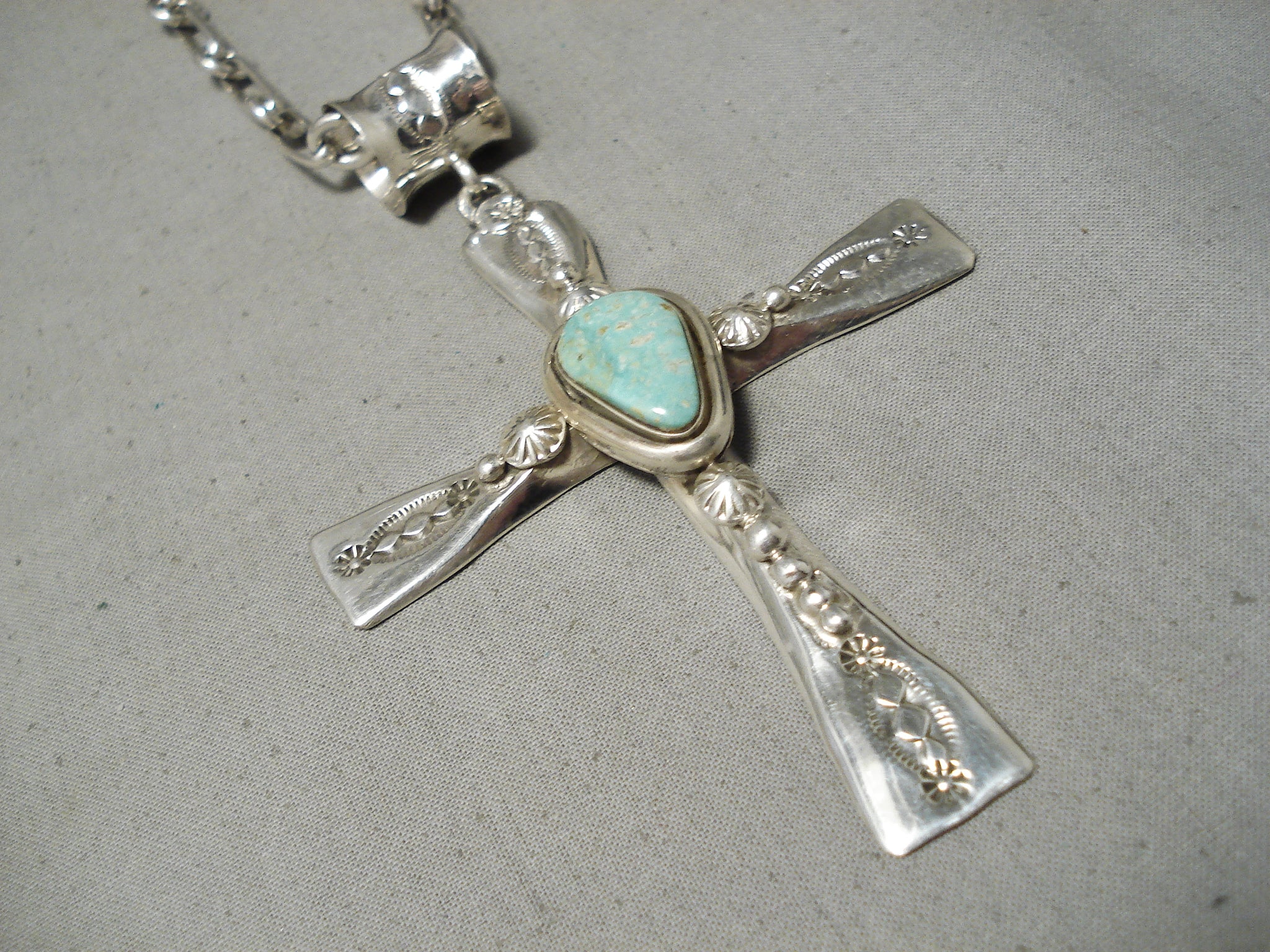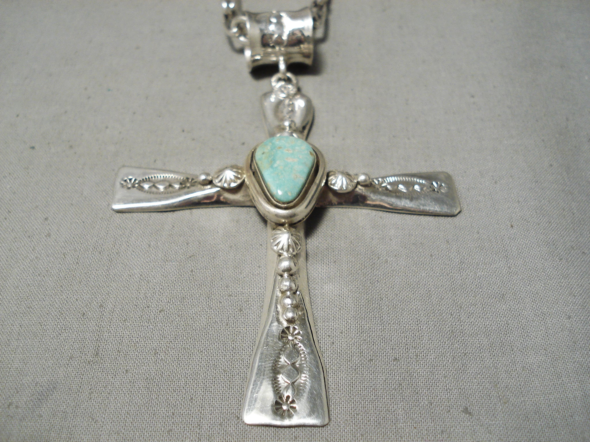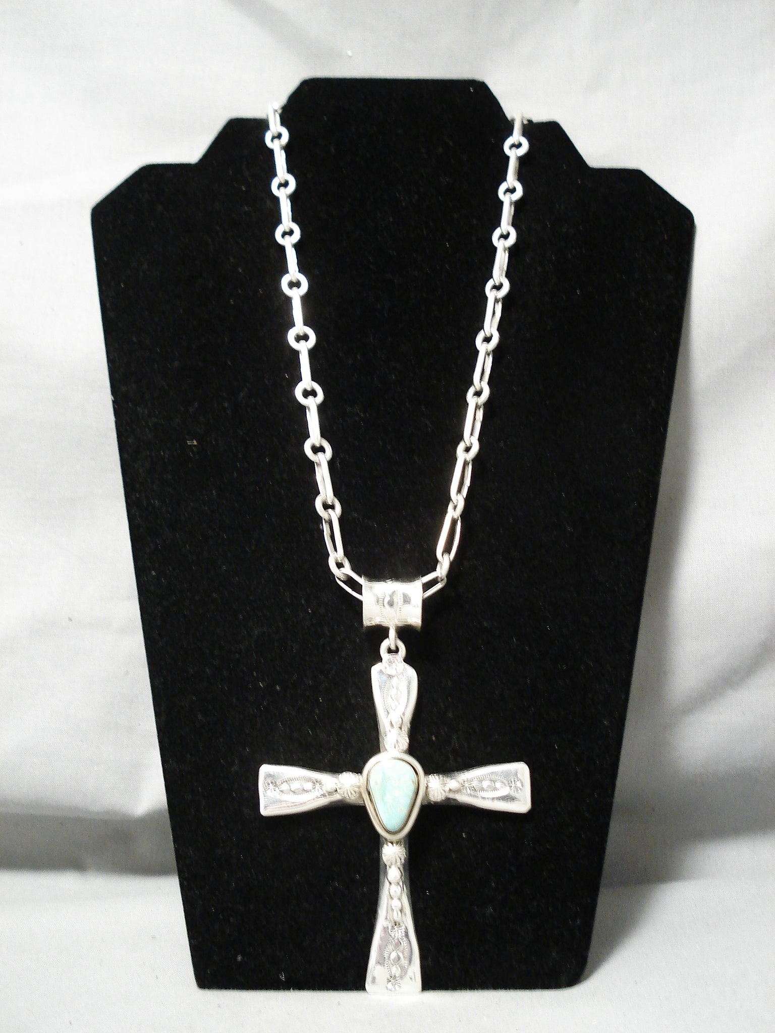 Heavy Heavy Native American Navajo Royston Turquoise Sterling Silver Cross Necklace