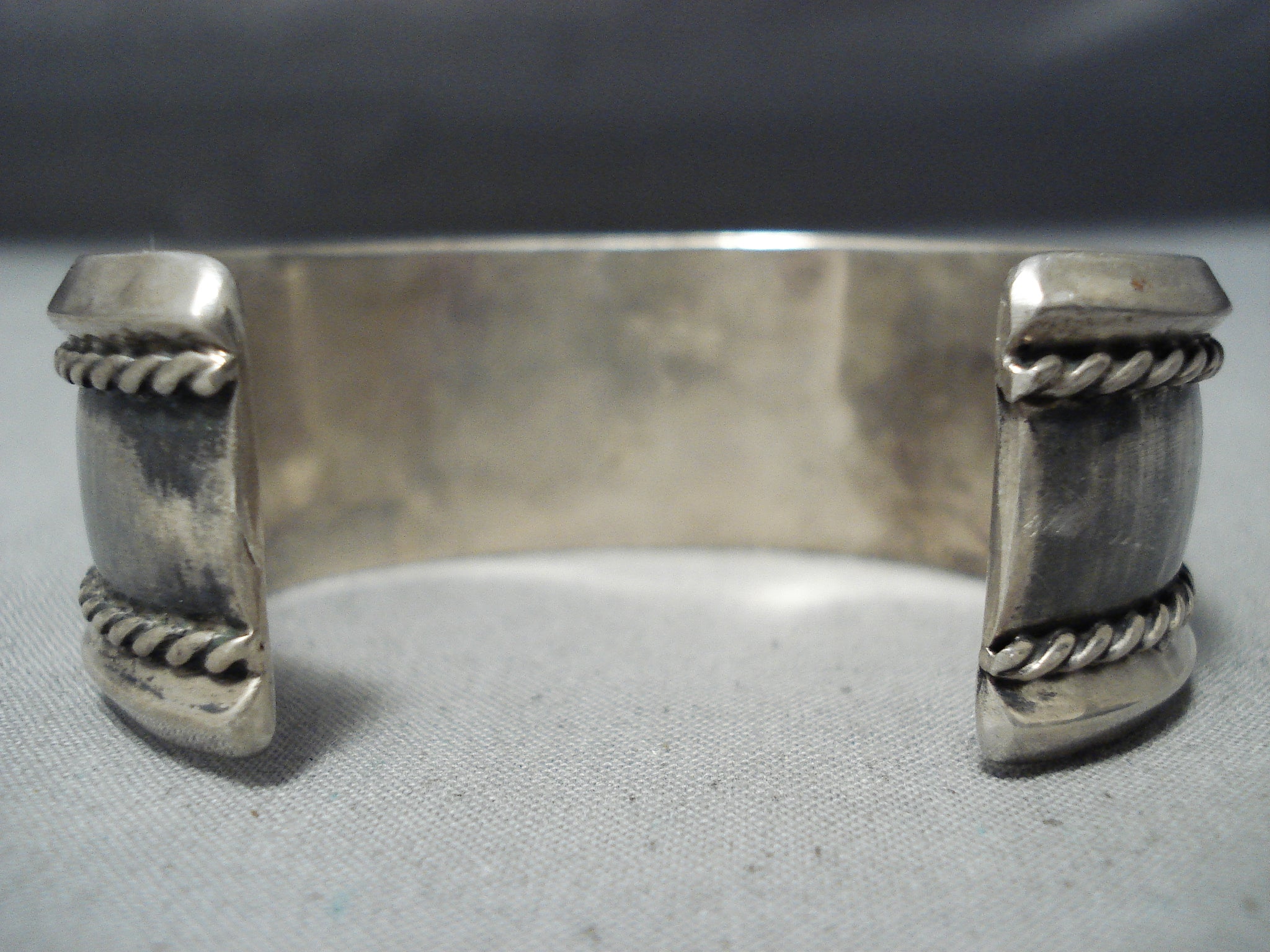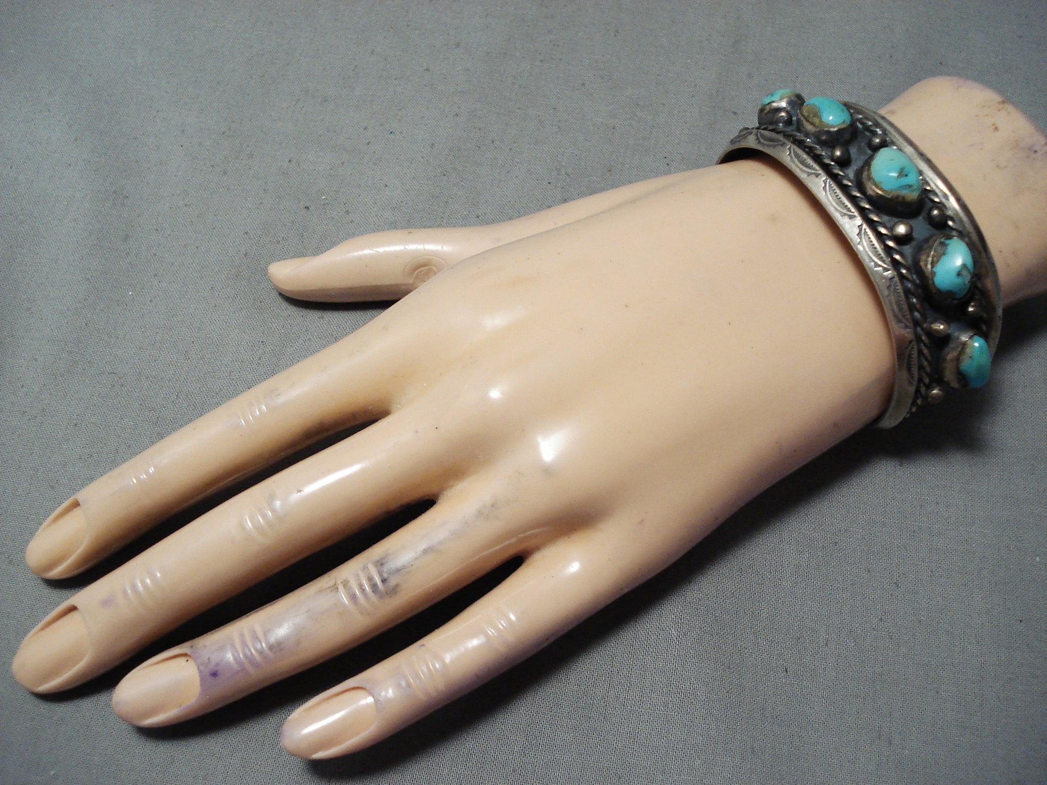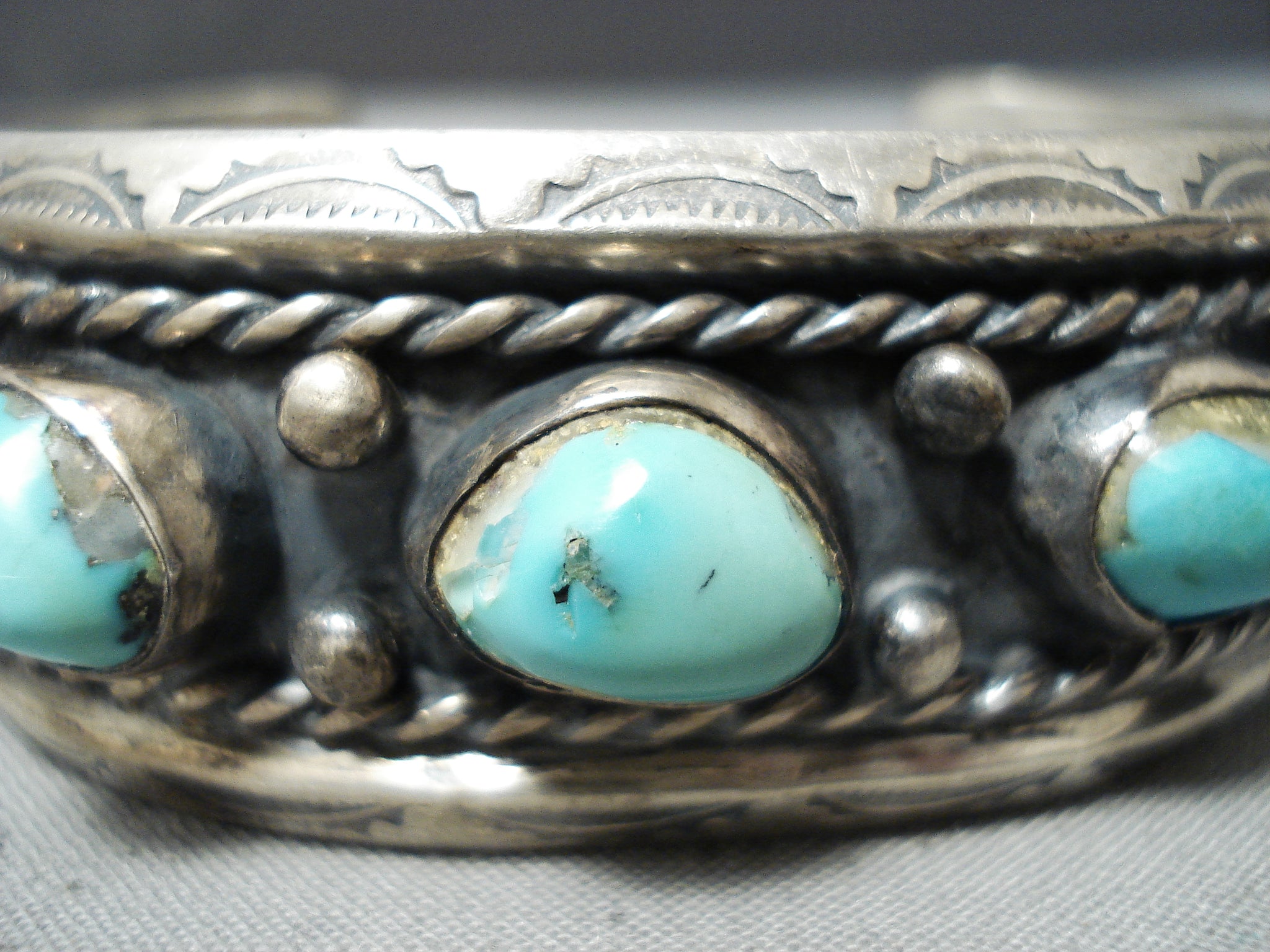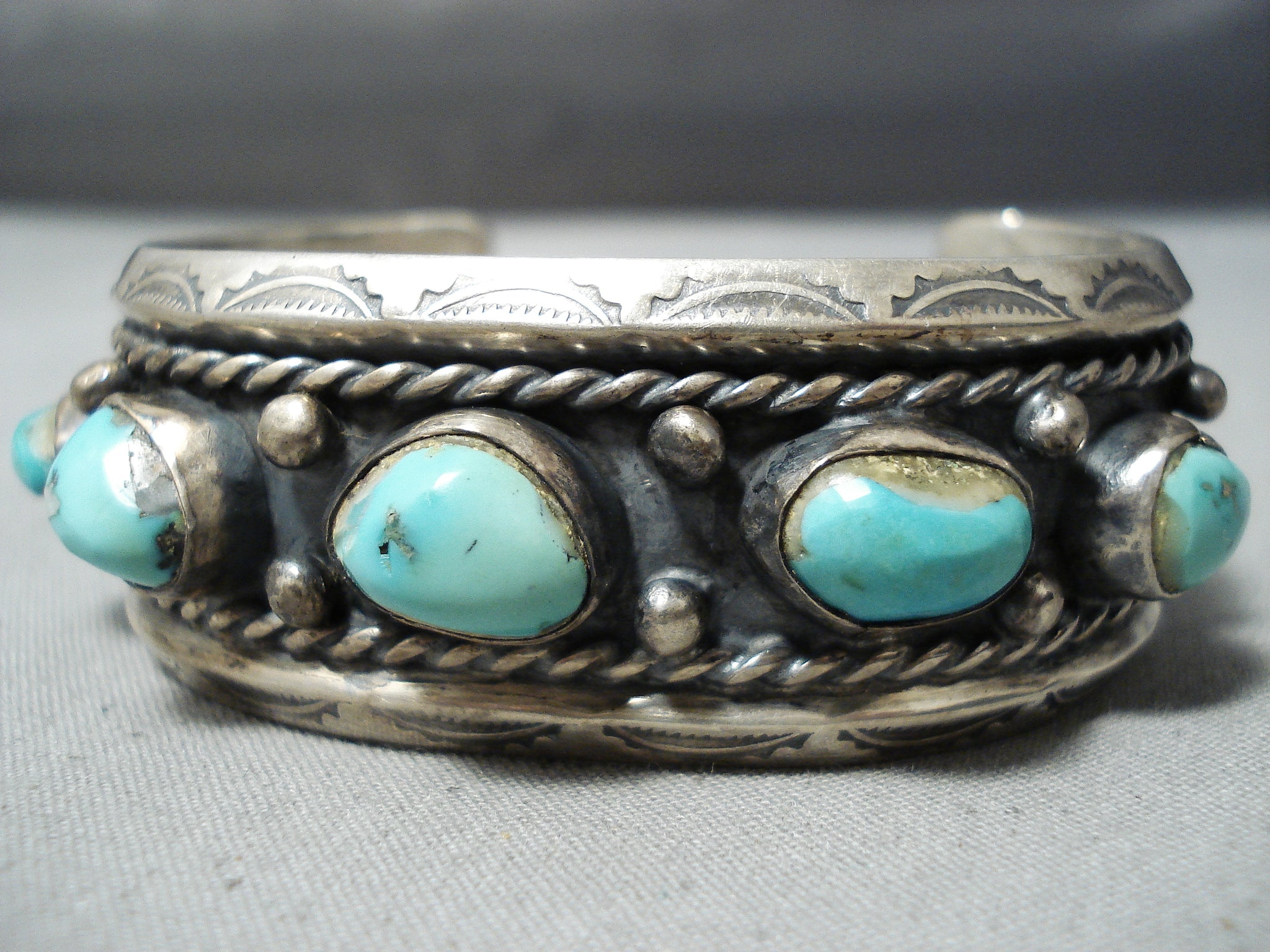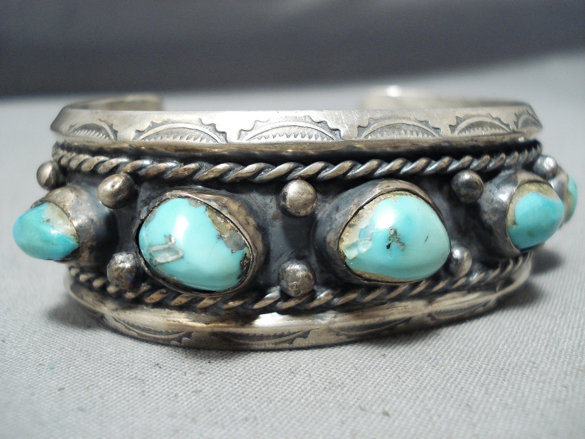 Heavy Heavy Vintage Native American Navajo Blue Gem Turquoise Sterling Silver Bracelet