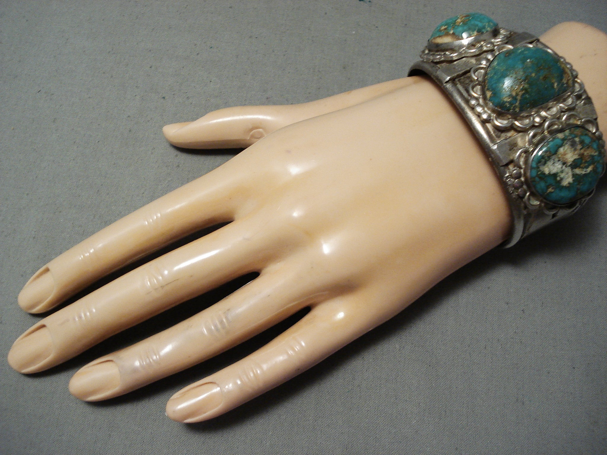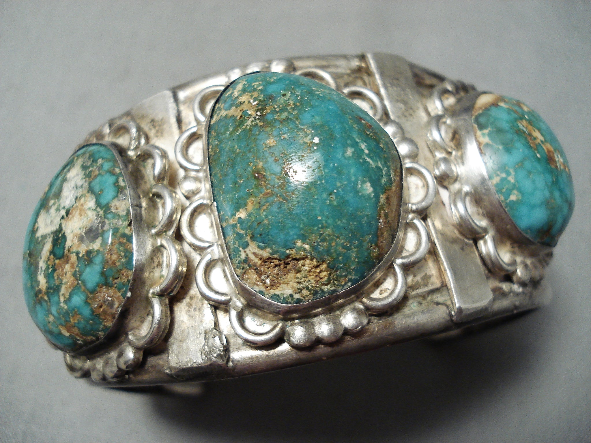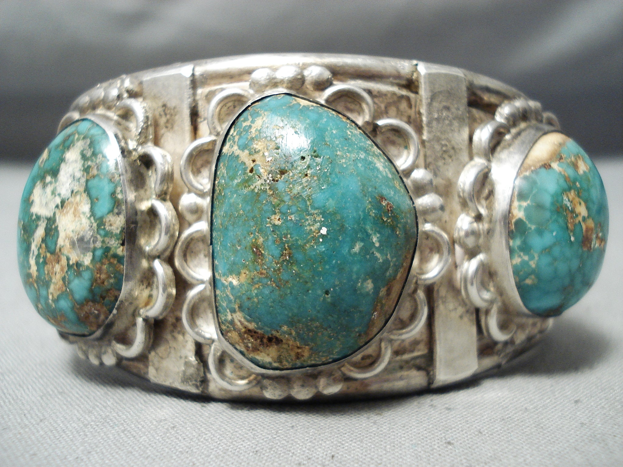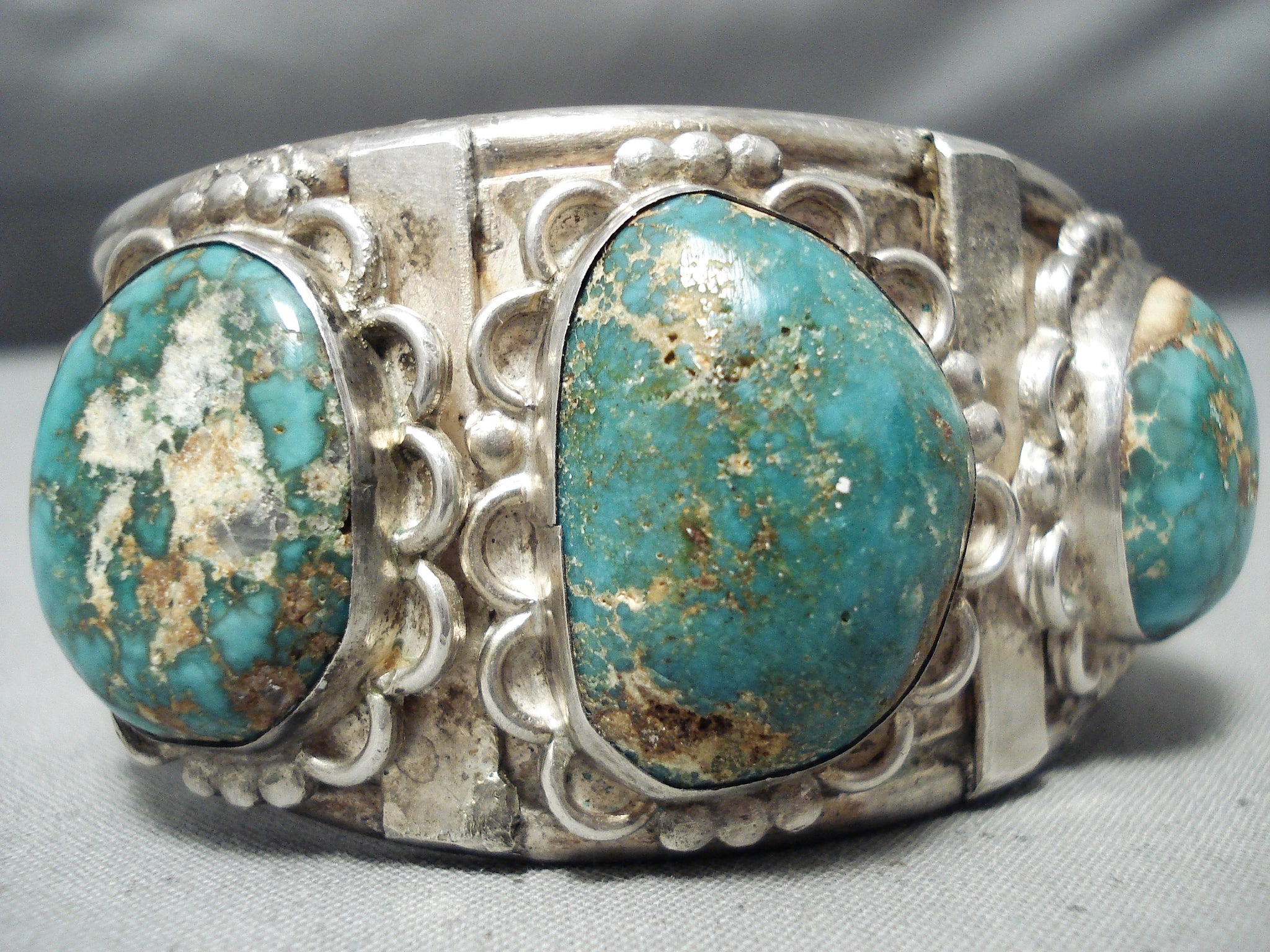Heavy Huge Men's Vintage Native American Navajo Royston Turquoise Sterling Silver Bracelet Old