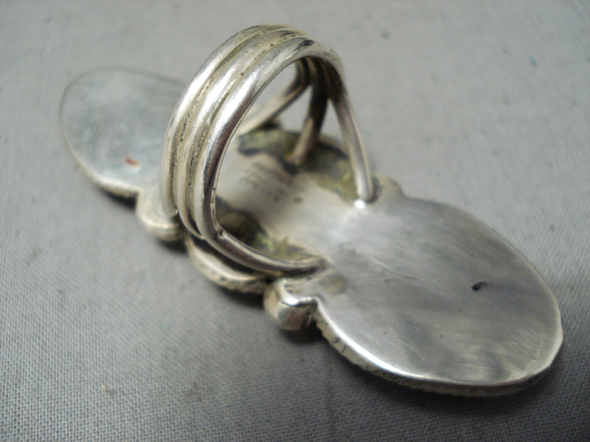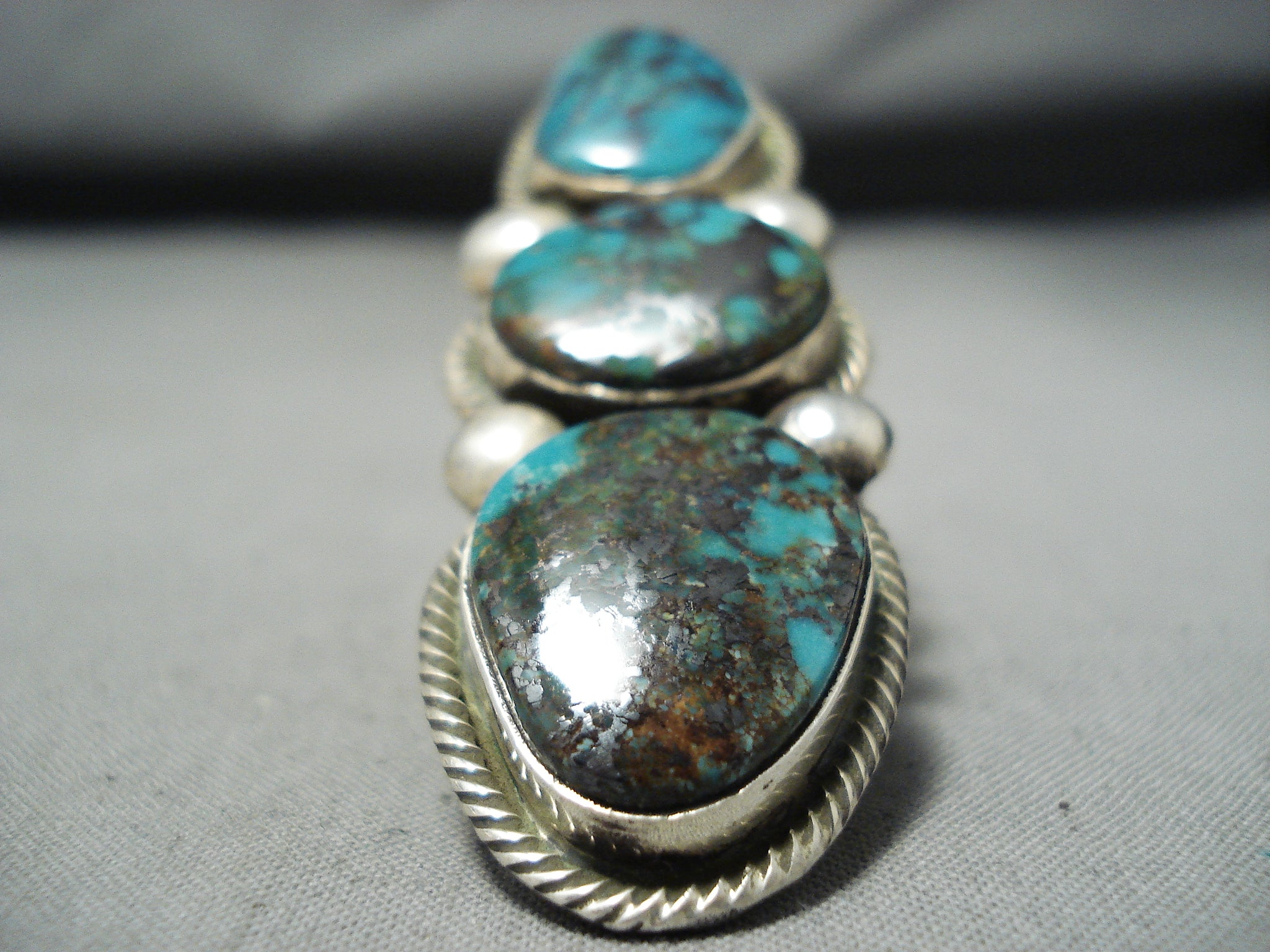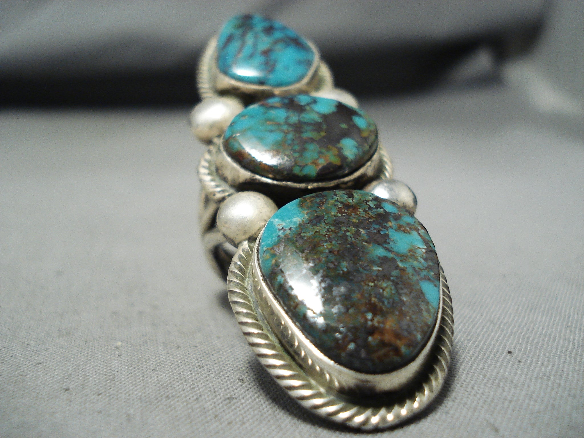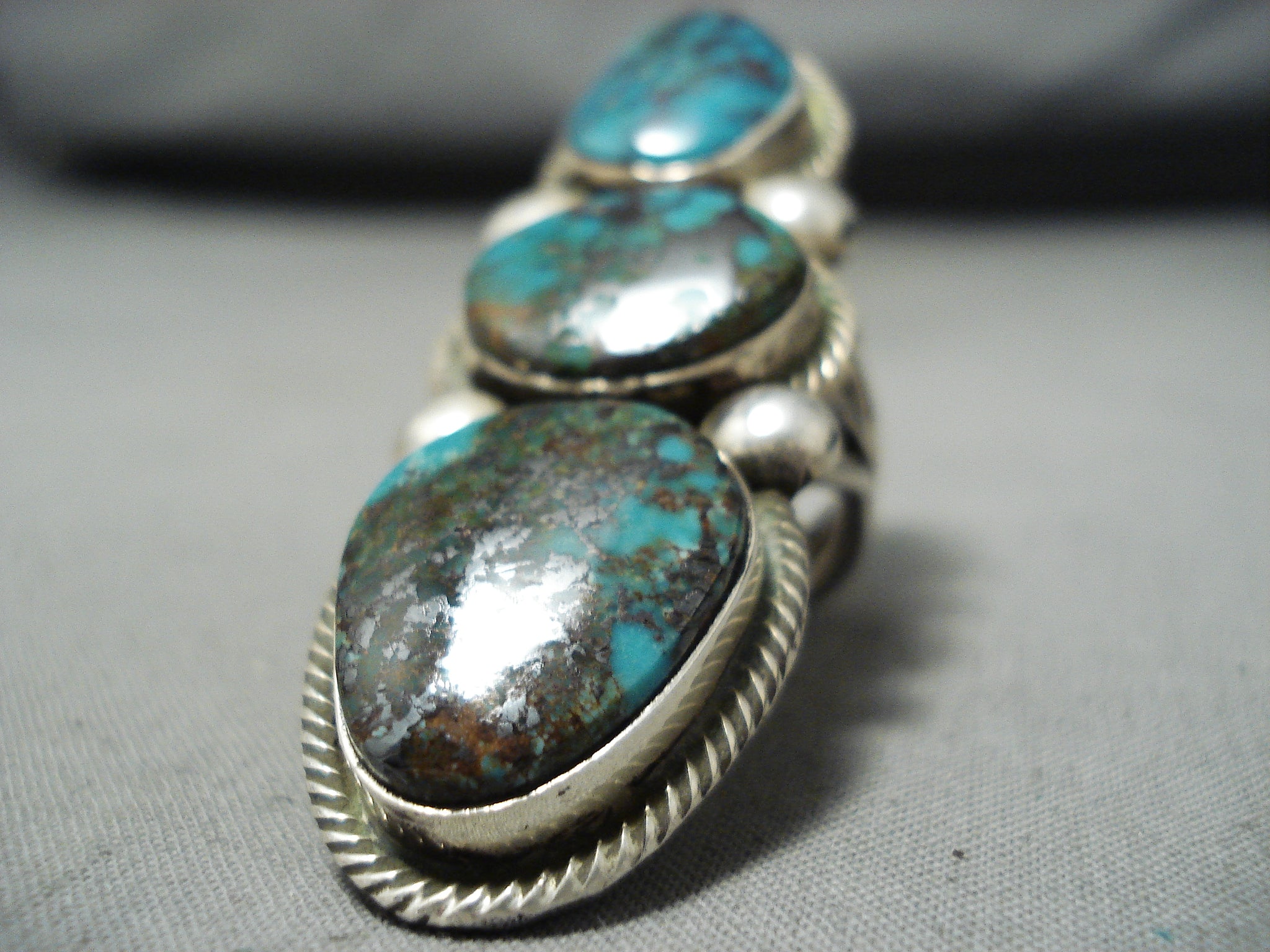 Heavy Huge Signed Native American Navajo Turquoise Sterling Silver Ring