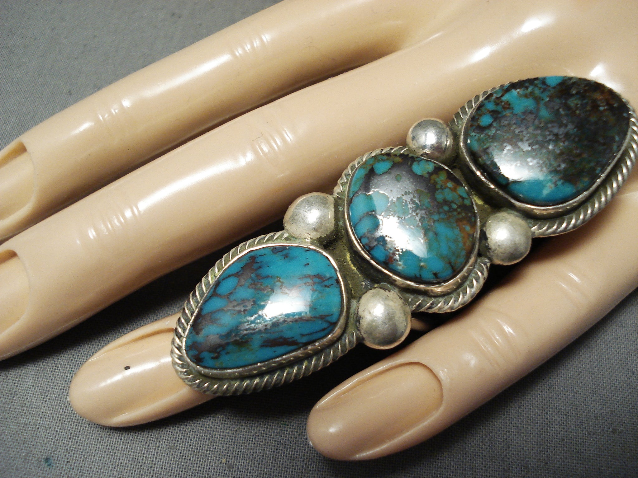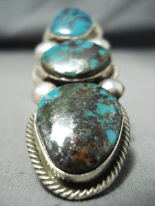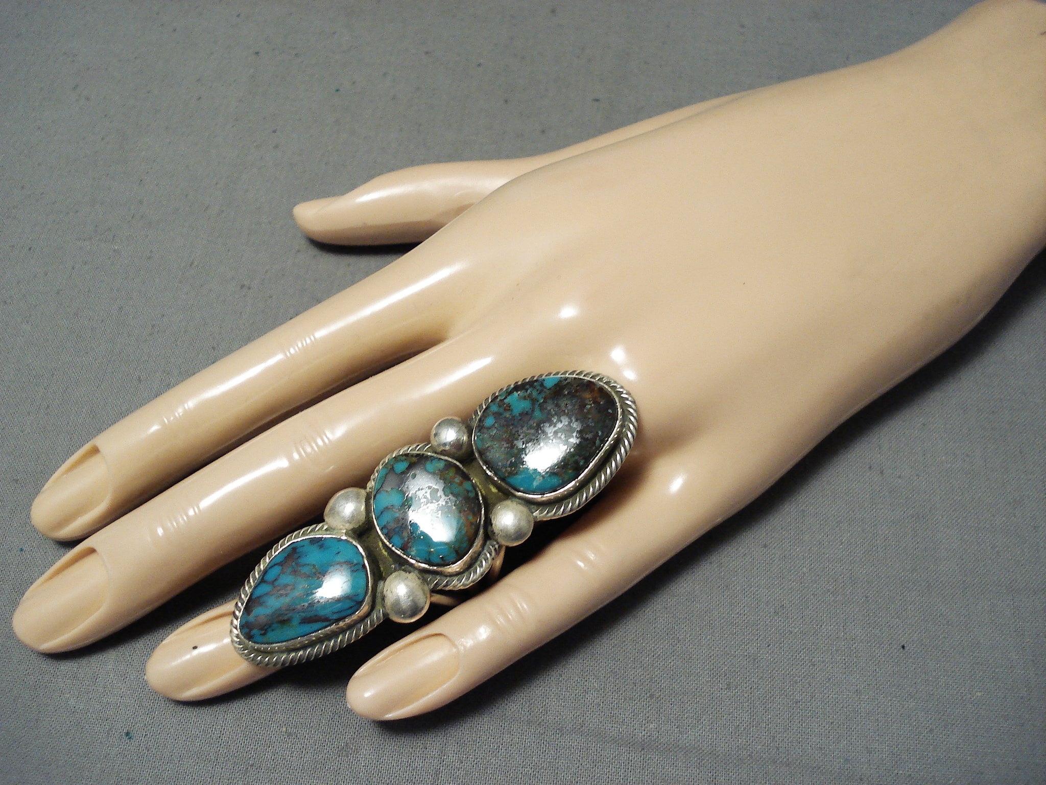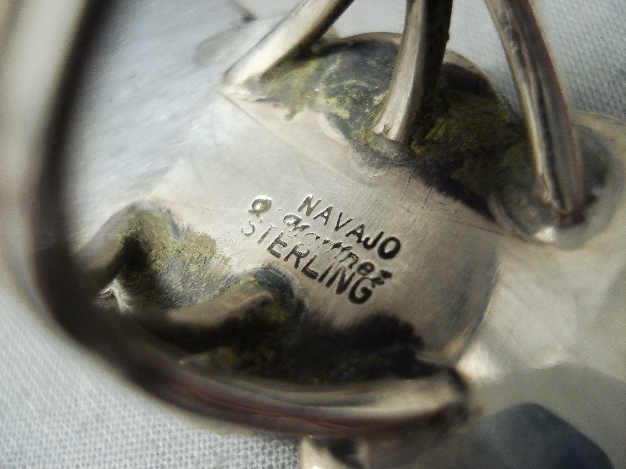 Heavy Huge Signed Native American Navajo Turquoise Sterling Silver Ring