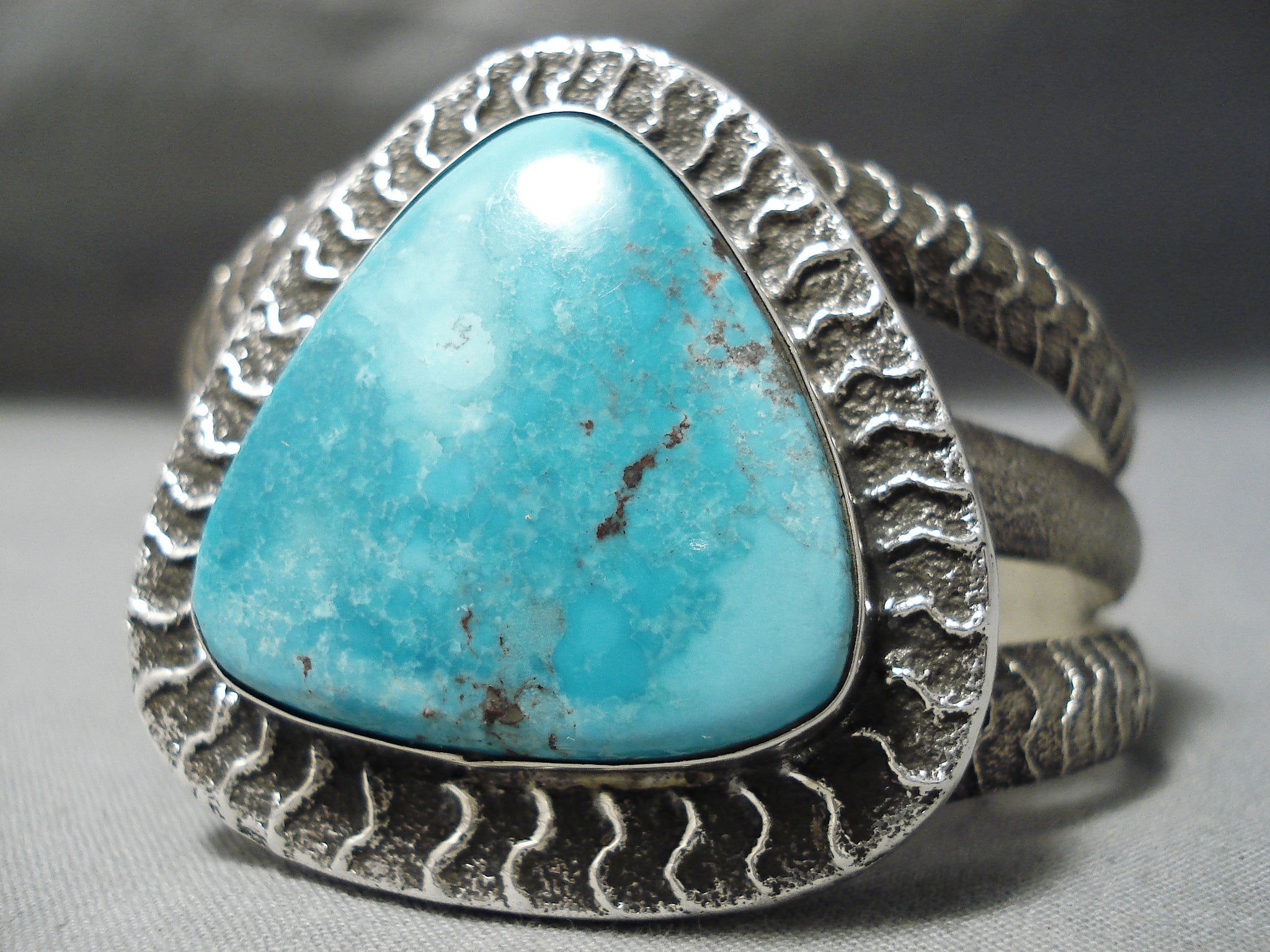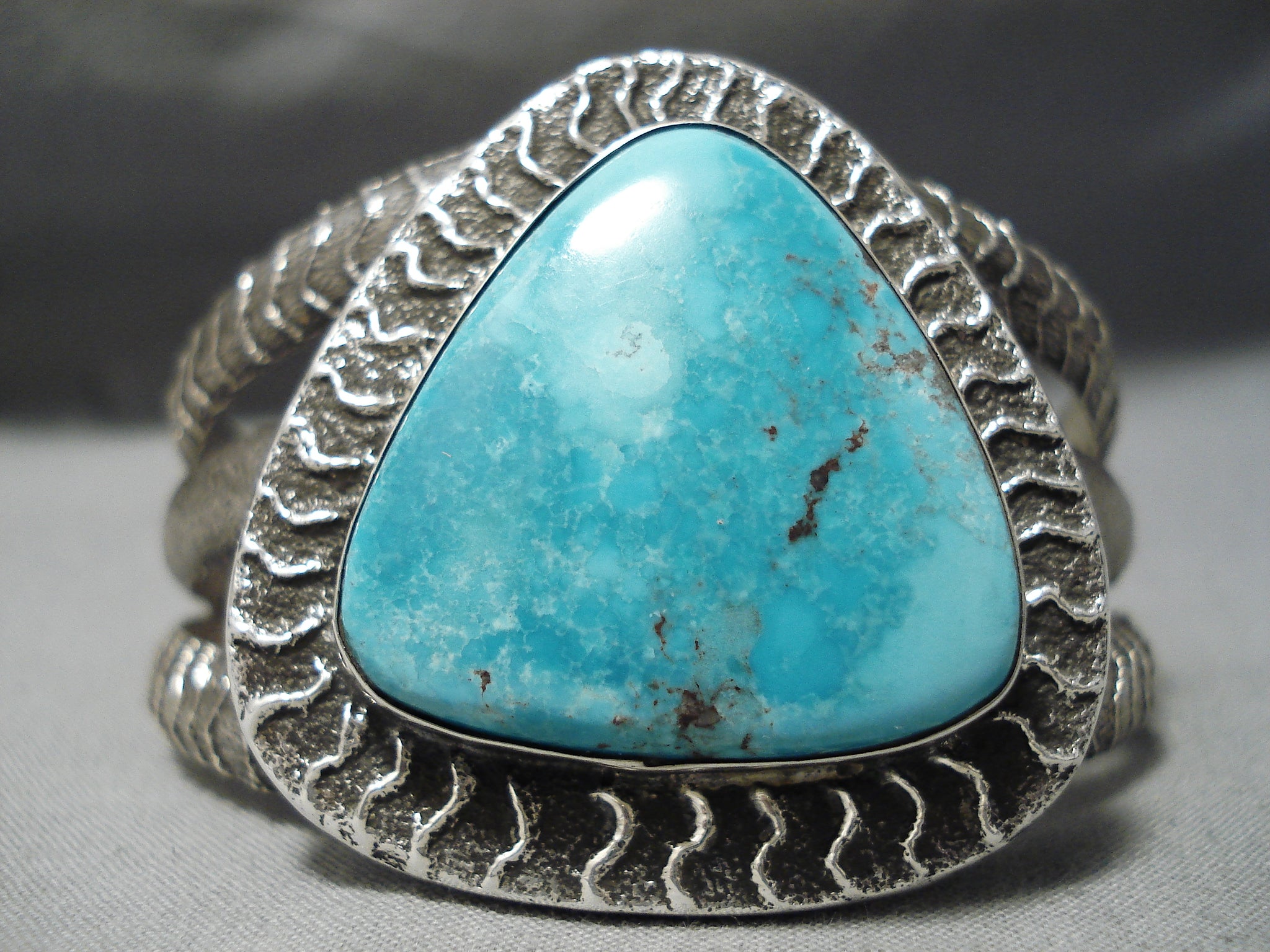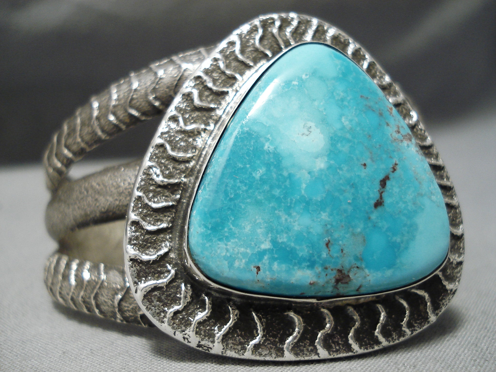 Heavy Huge Vintage Native American Navajo Carico Lake Turquoise Sterling Silver Bracelet