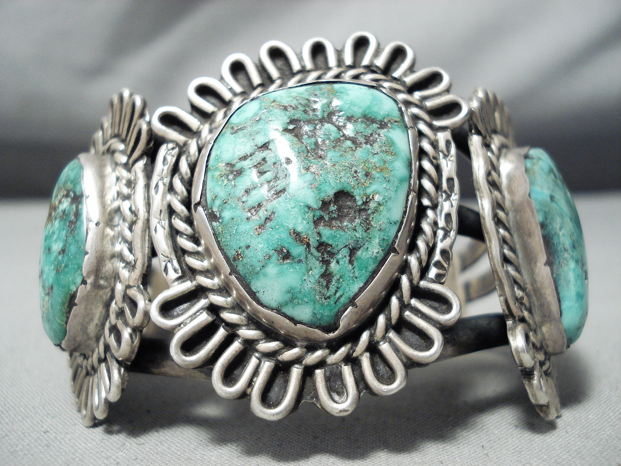 Heavy Huge Vintage Native American Navajo Carico Lake Turquoise Sterling Silver Bracelet