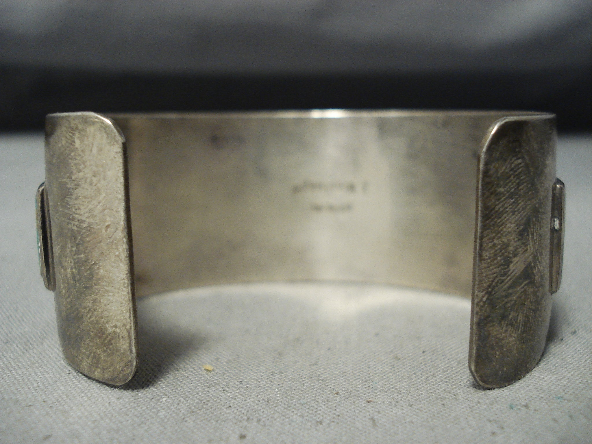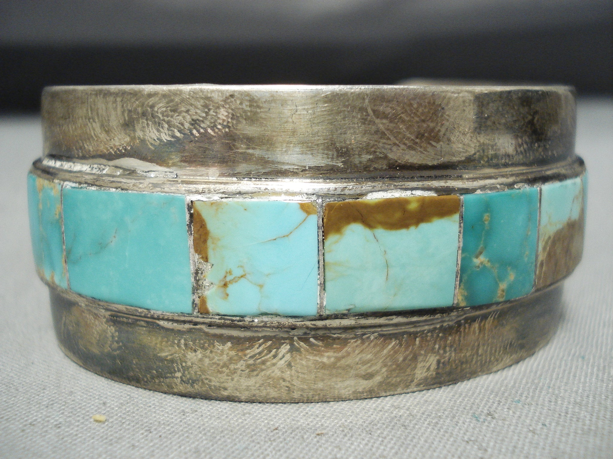 Heavy Inlaid Vintage Native American Navajo Royston Turquoise Sterling Silver Bracelet