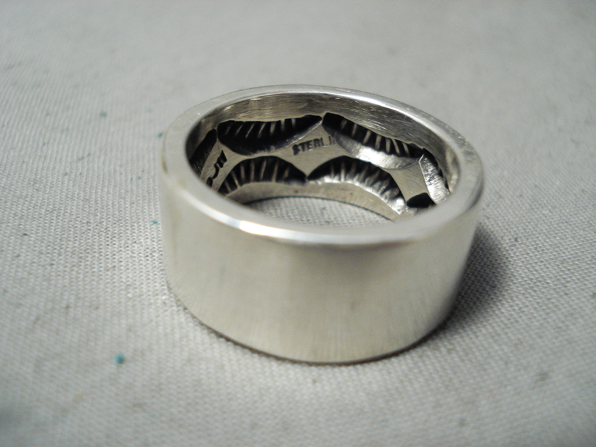 Heavy Internet Deep Stamp Vintage Native American Navajo Sterling Silver Ring