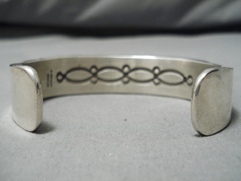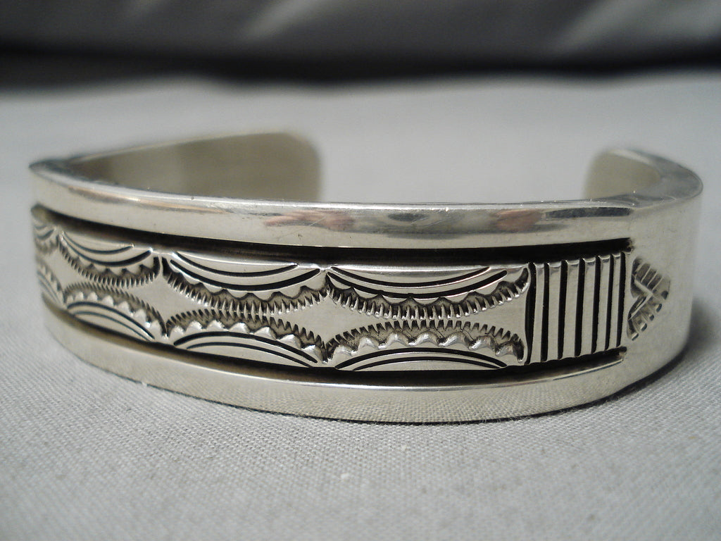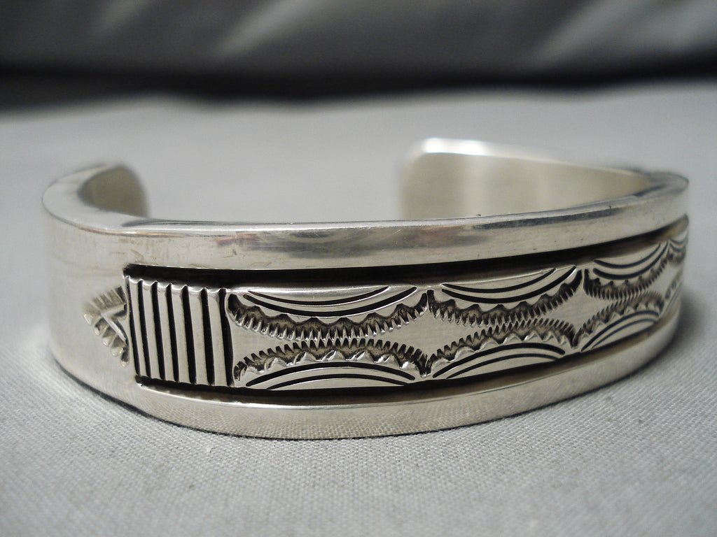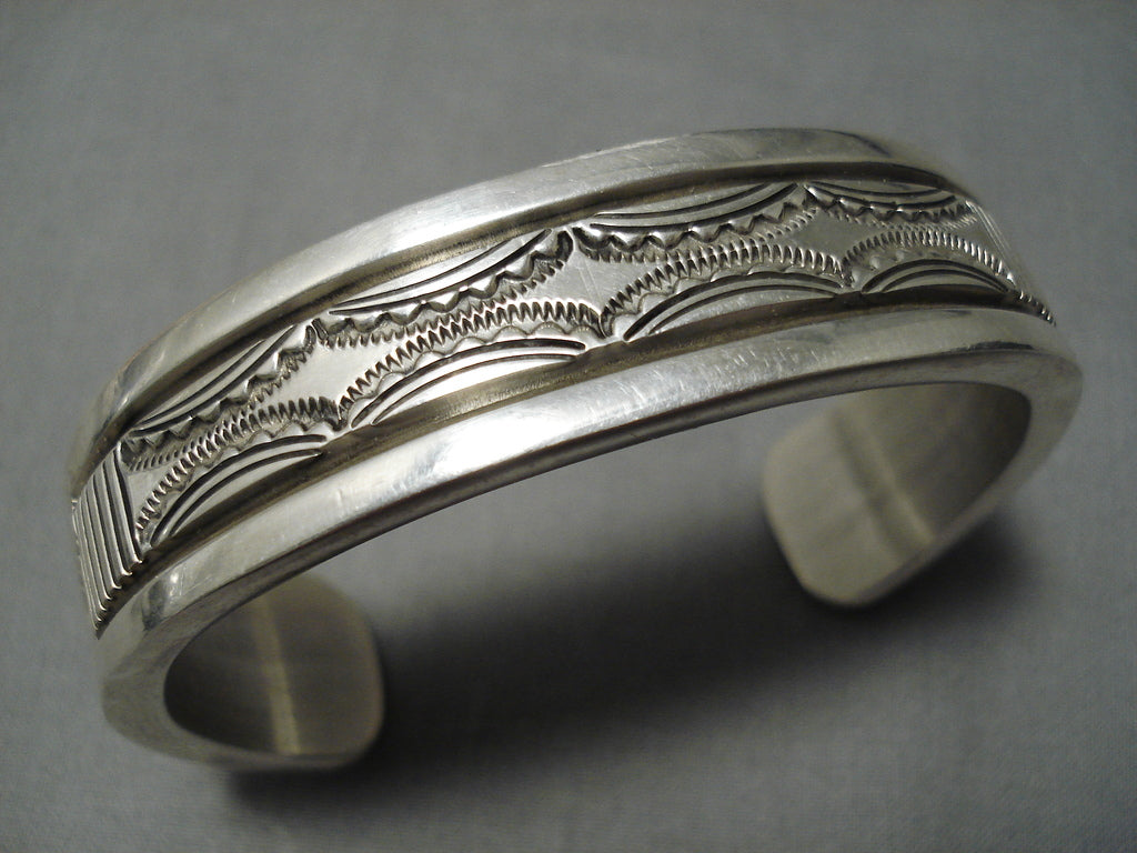 Heavy Men's Big Vintage Native American Navajo Deep Stamp Sterling Silver Bracelet