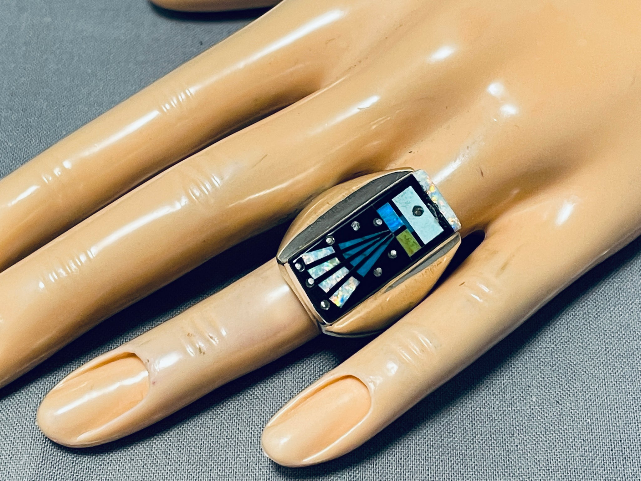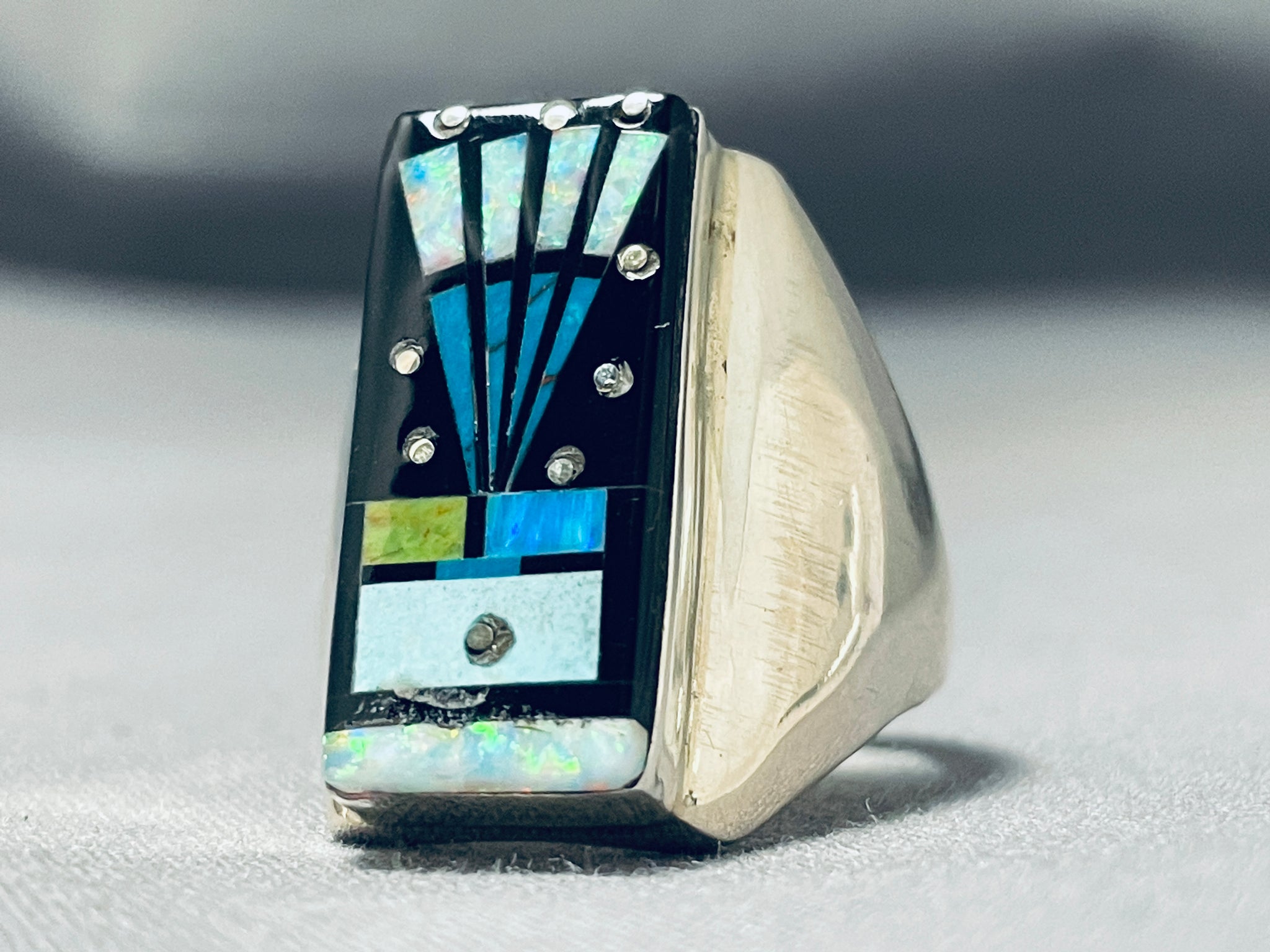 Heavy Men's Kachina Native American Navajo Turquoise Sterling Silver Ring