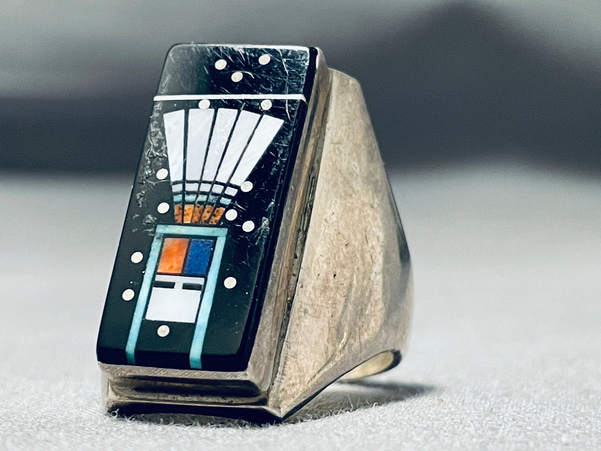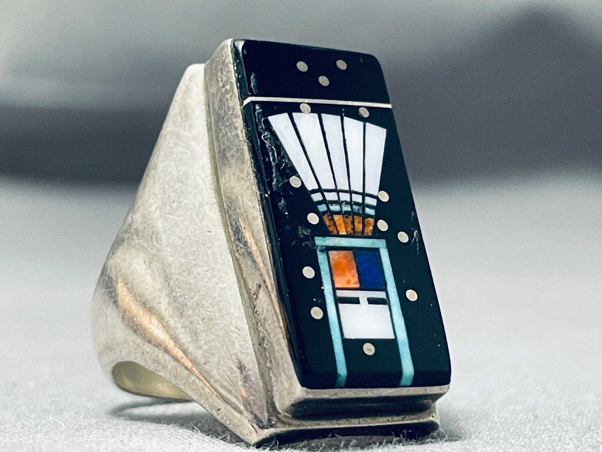 Heavy Men's Starsky Native American Navajo Kachian Turquoise Sterling Silver Ring