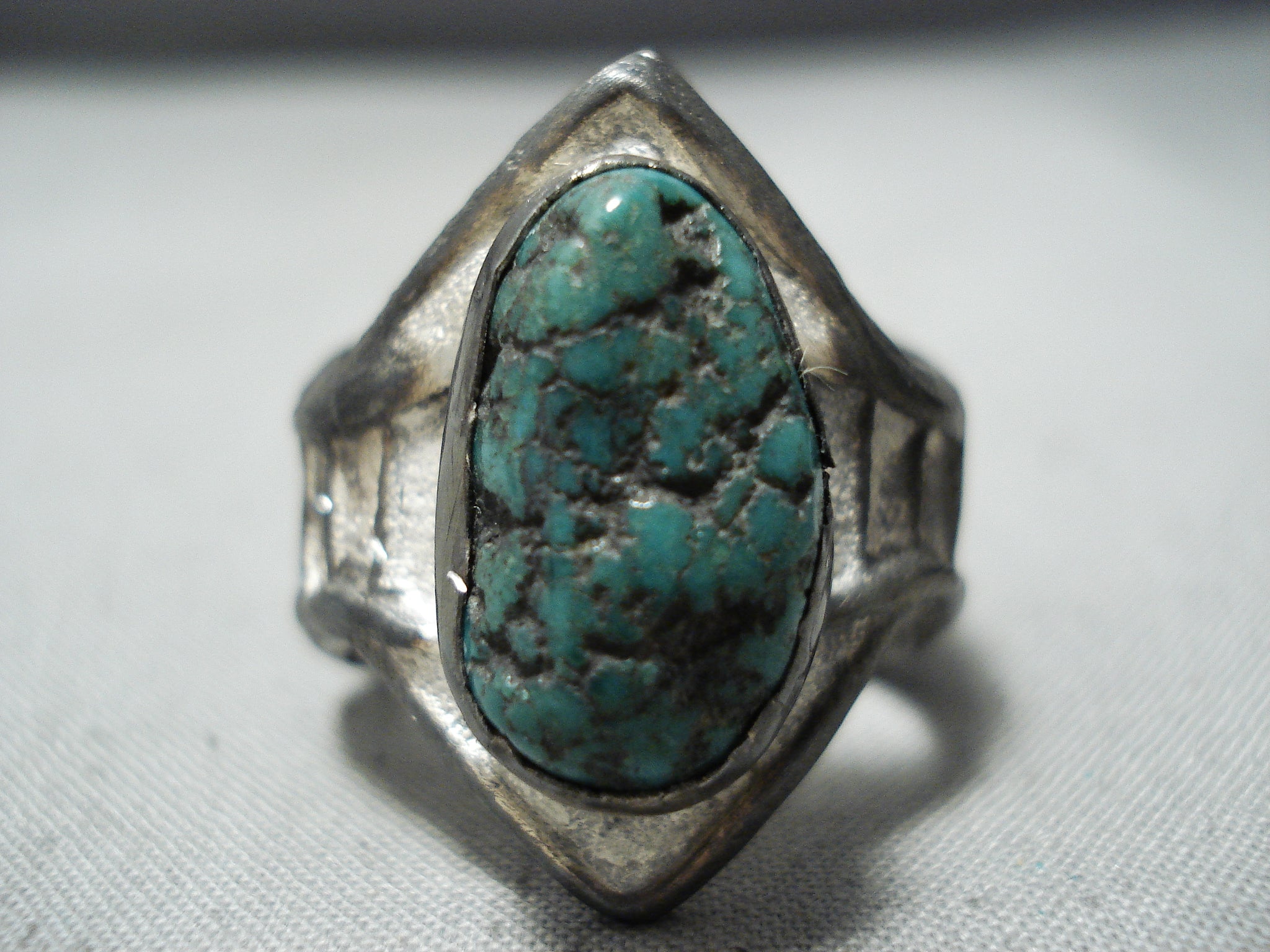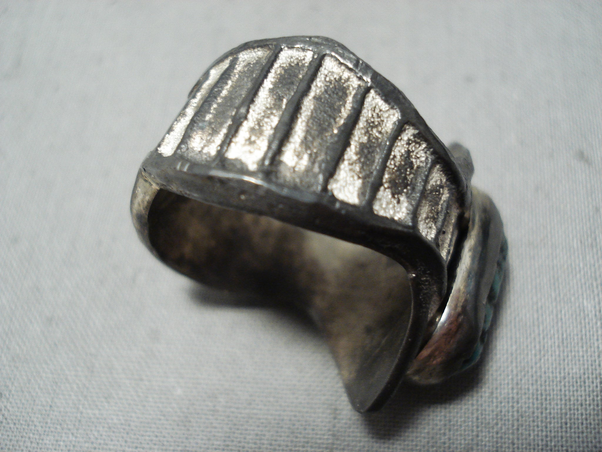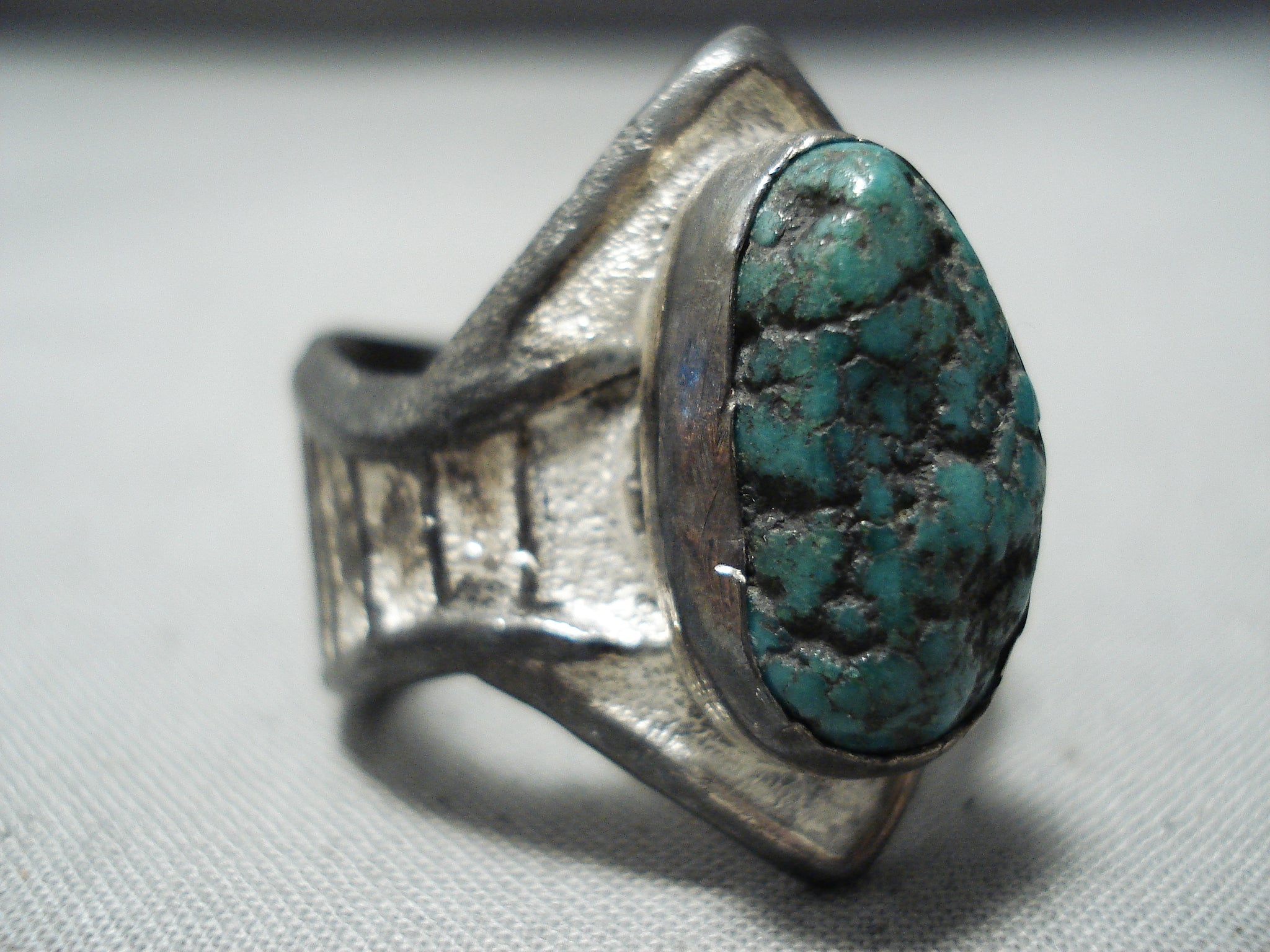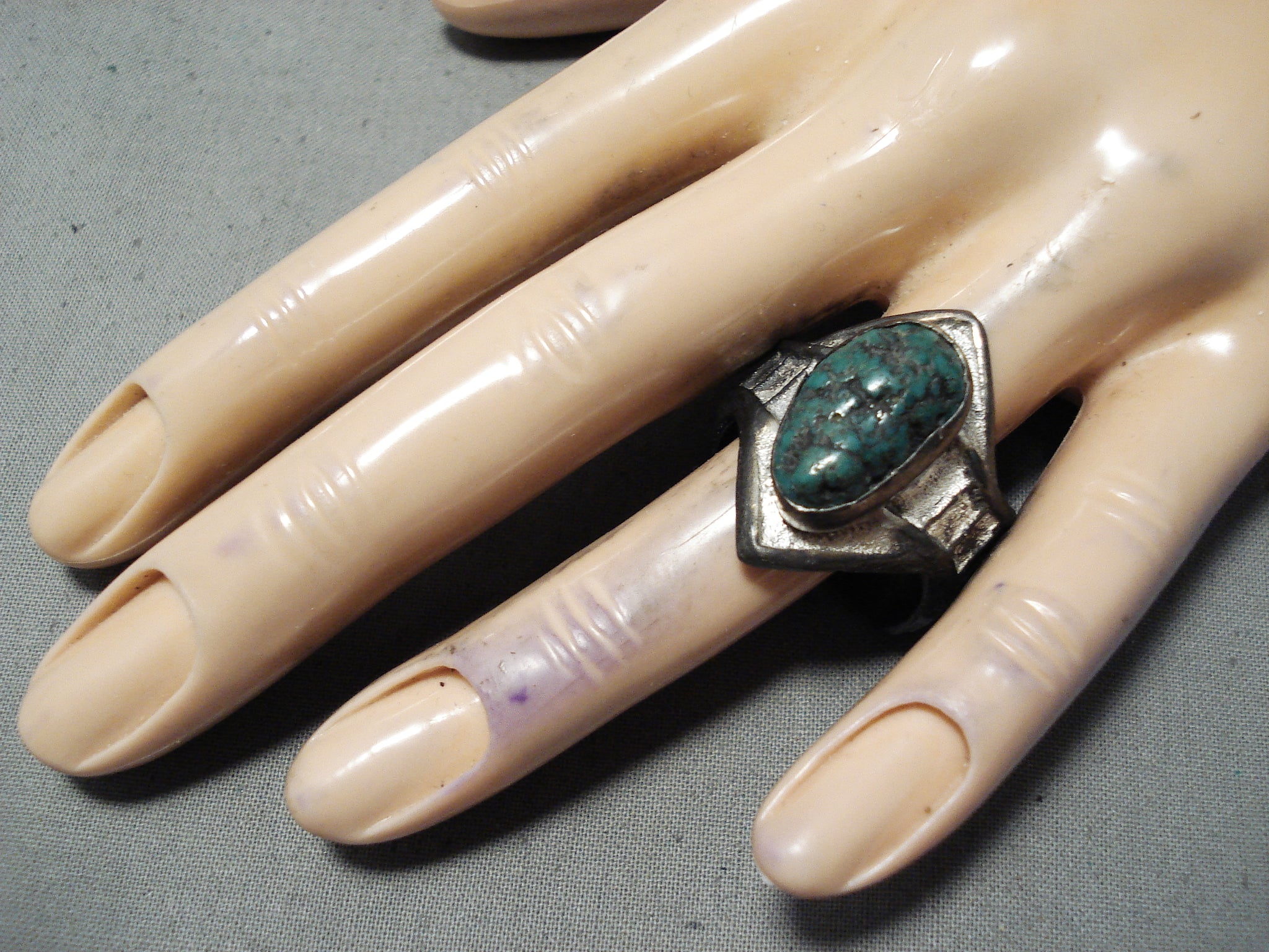 Heavy Modernistic Native American Navajo Green Turquoise Sterling Silver Ring