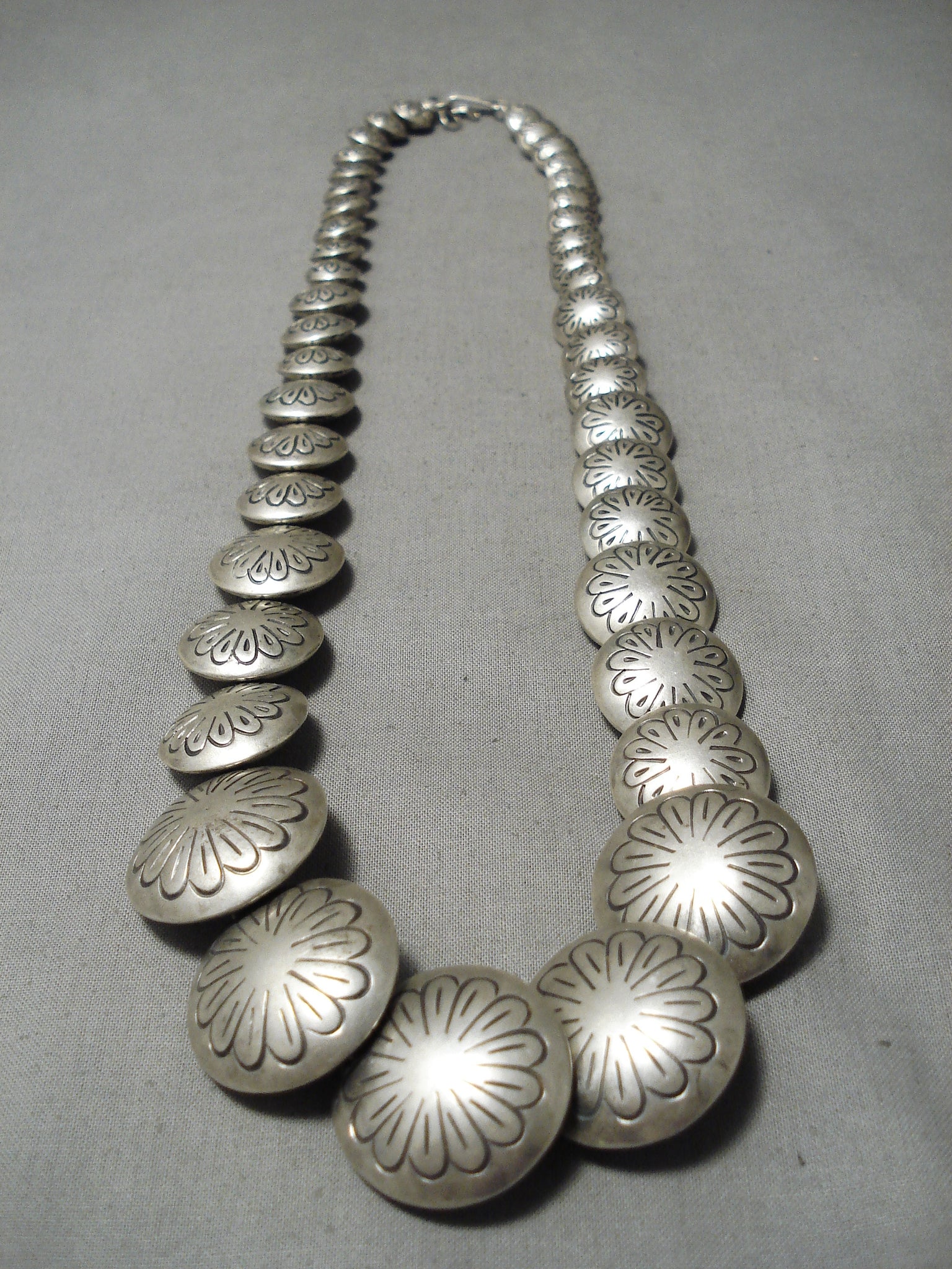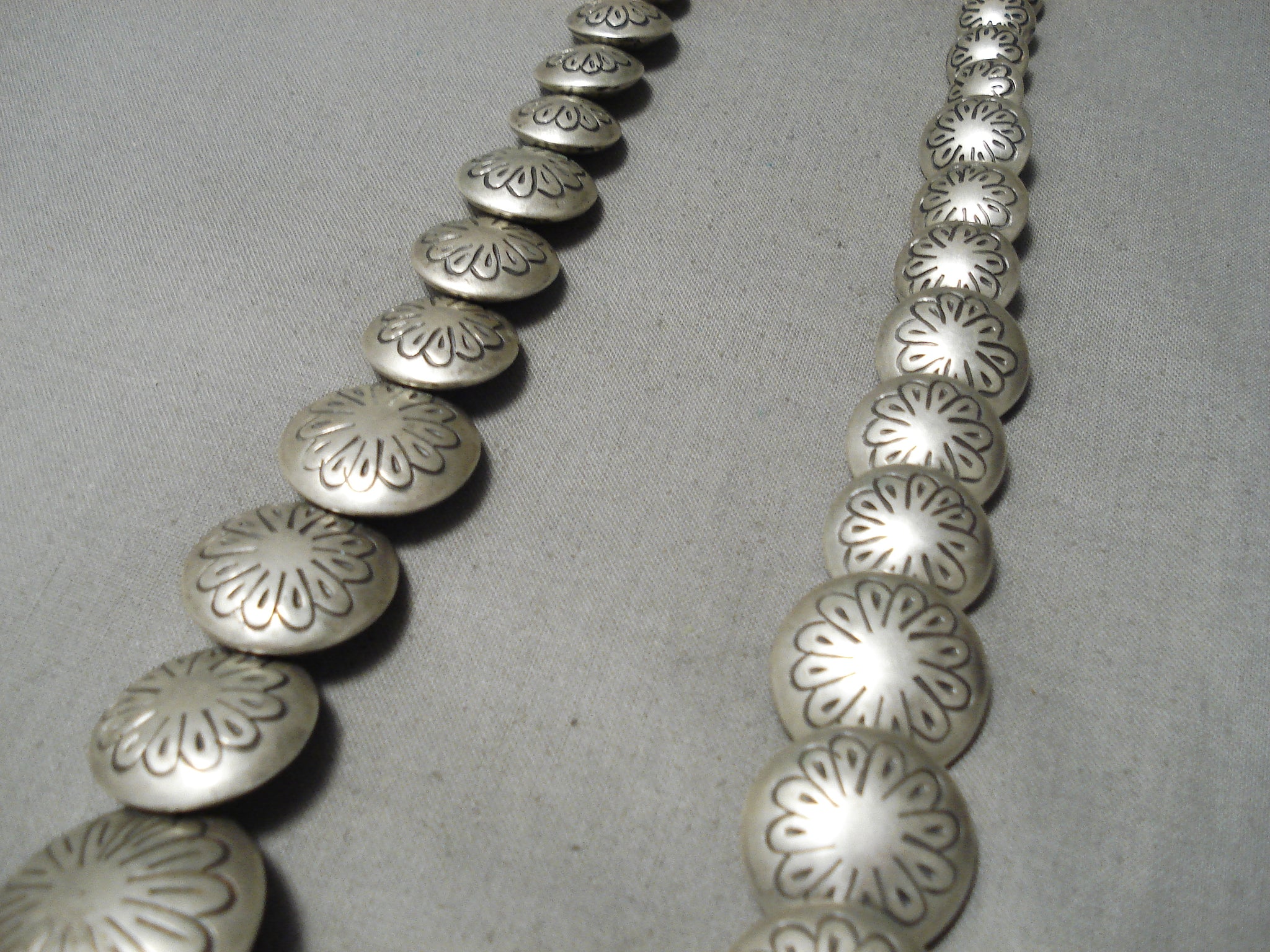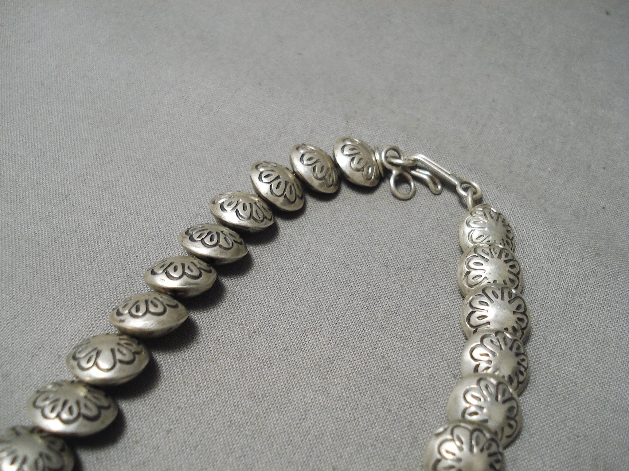 Heavy Museum Quality Vintage Native American Navajo Hand Tooled Sterling Silver Bead Necklace